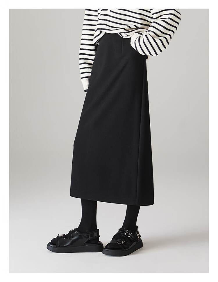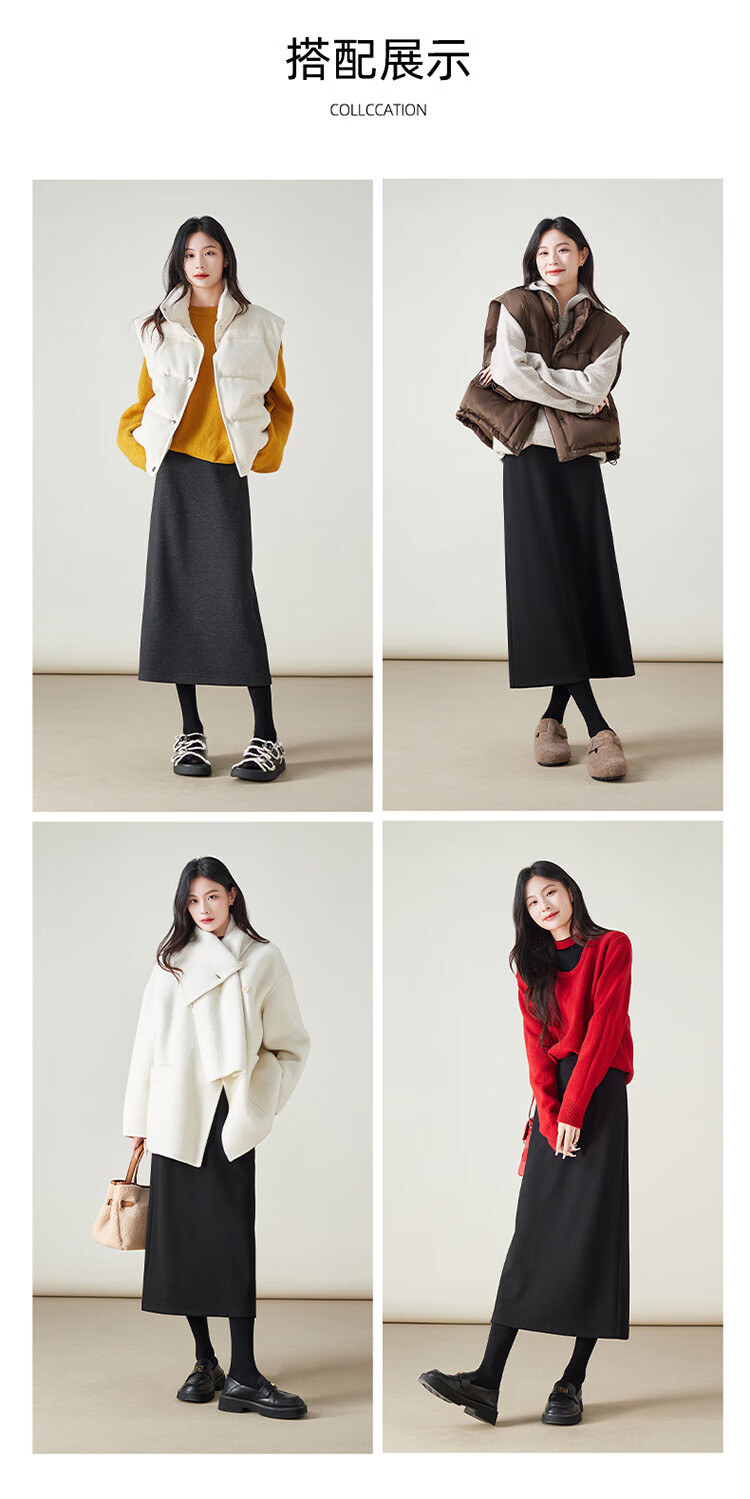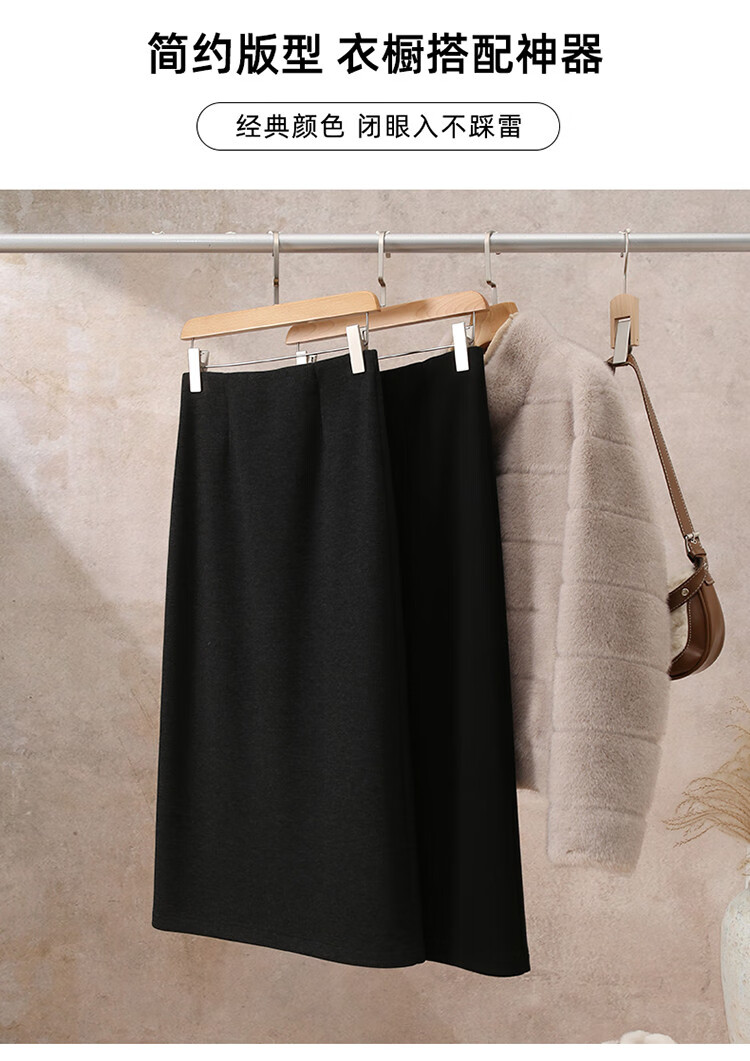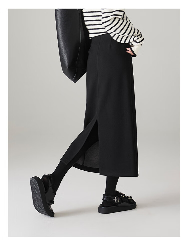 SOFSIL Acetate Wool Premium Slim Slit Skirt 2025 Winter Fashion Thickened Mid-Length Straight Skirt Black L (28)