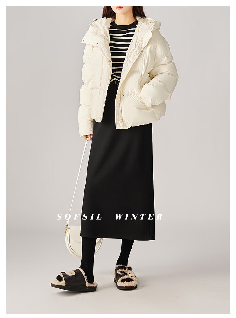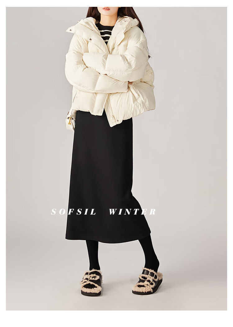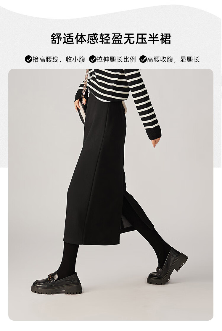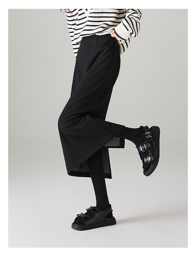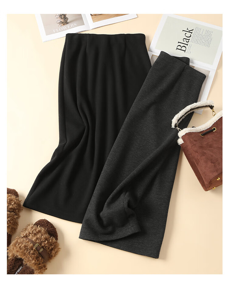 SOFSIL Acetate Wool Premium Slim Slit Skirt 2025 Winter Fashion Thickened Mid-Length Straight Skirt Black L (28)