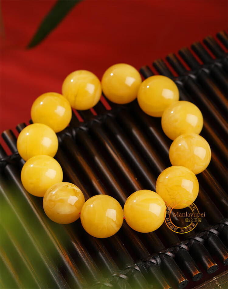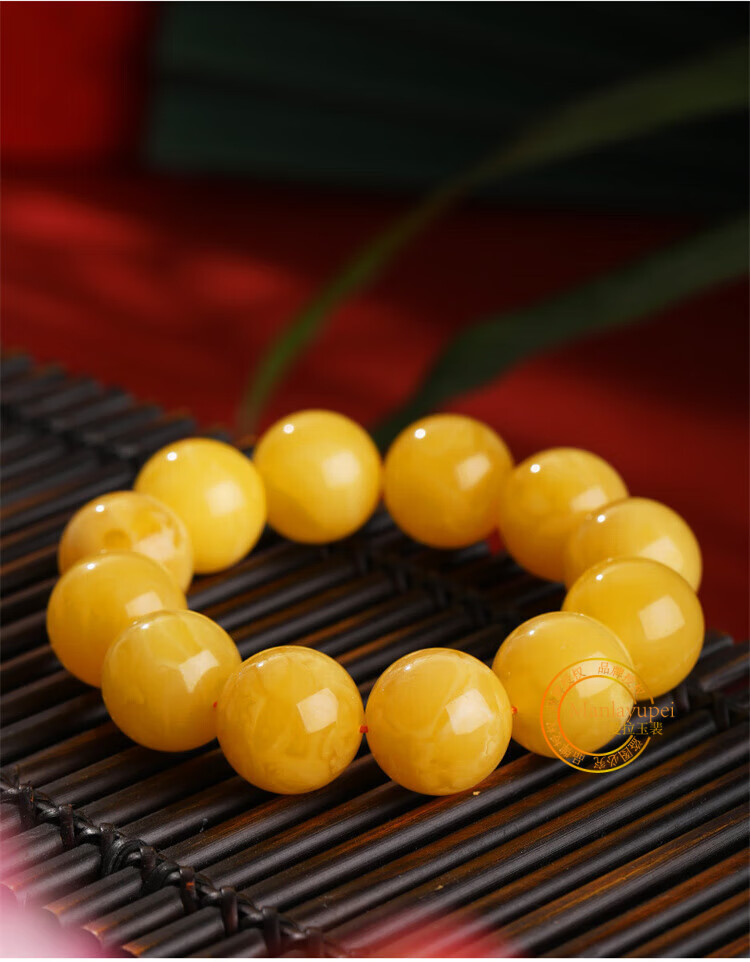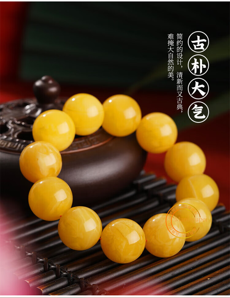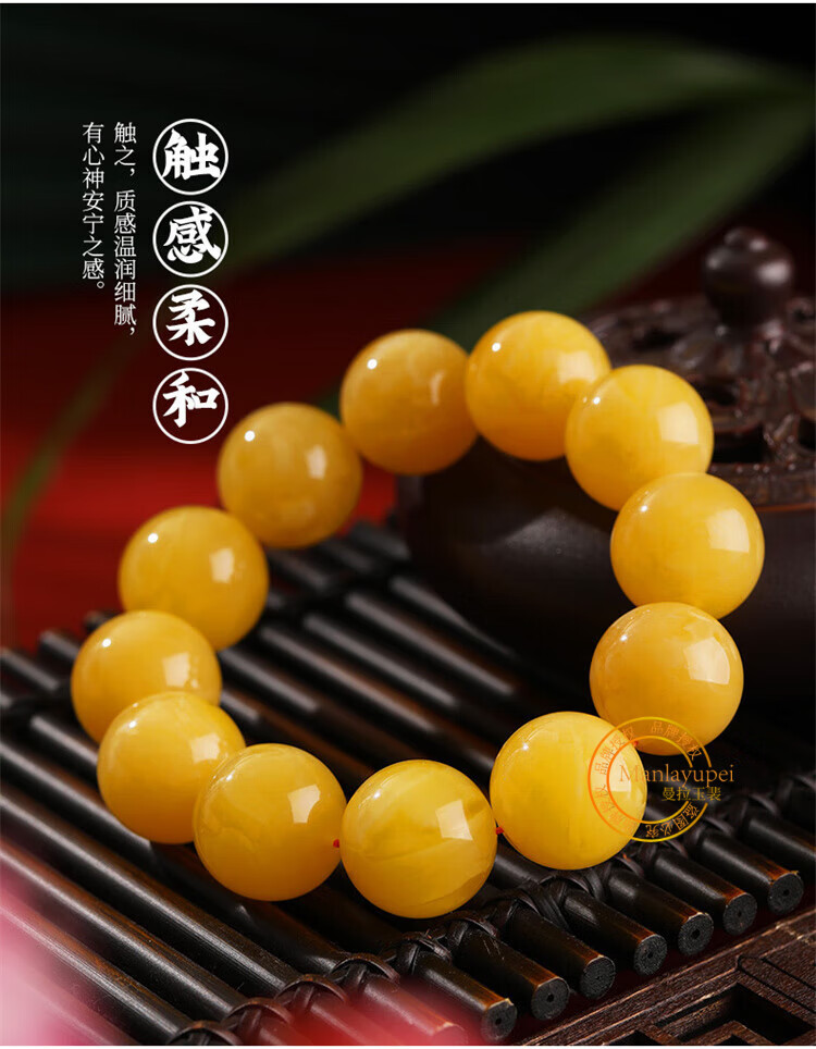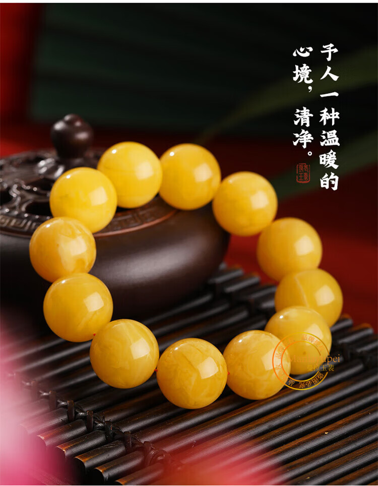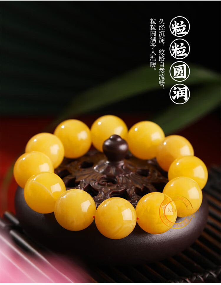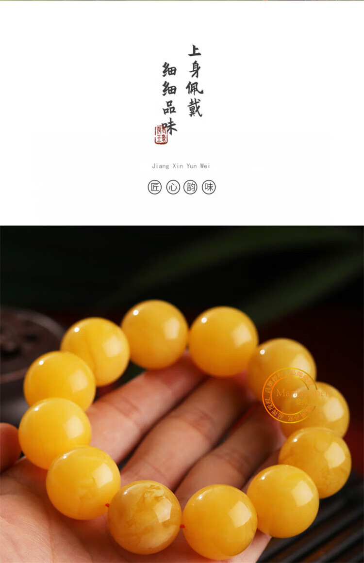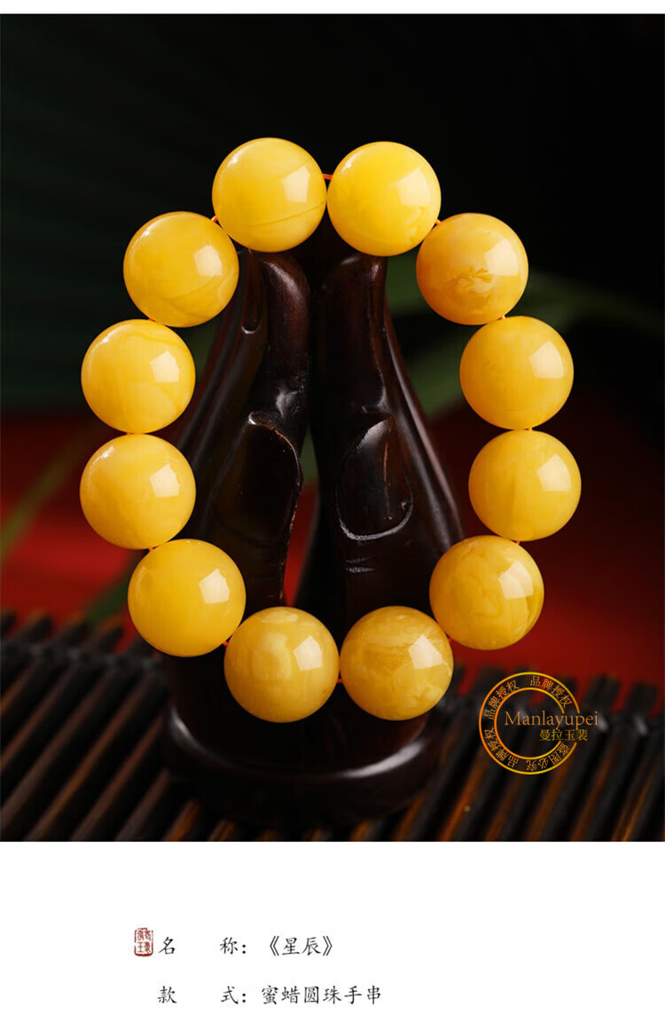 Manla Yupei Star Natural Beeswax Bracelet Women's Russian Material White Flower Honey Amber Ball Bracelet 21mm Solitary Product Style 1