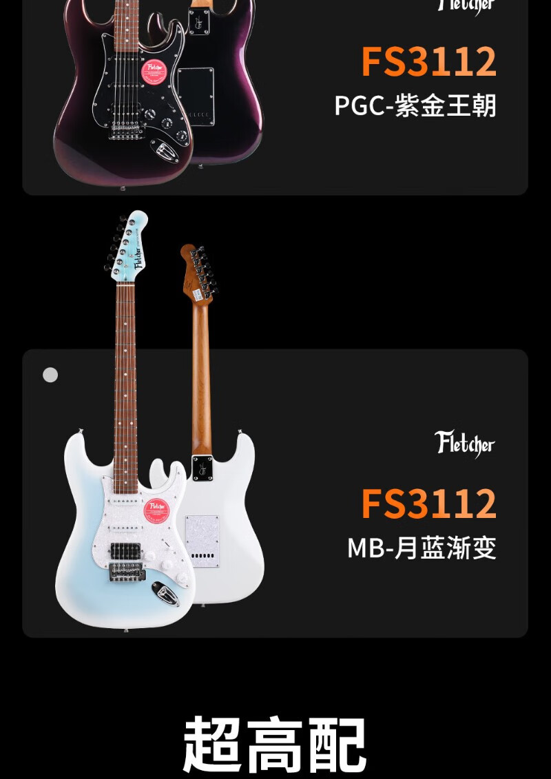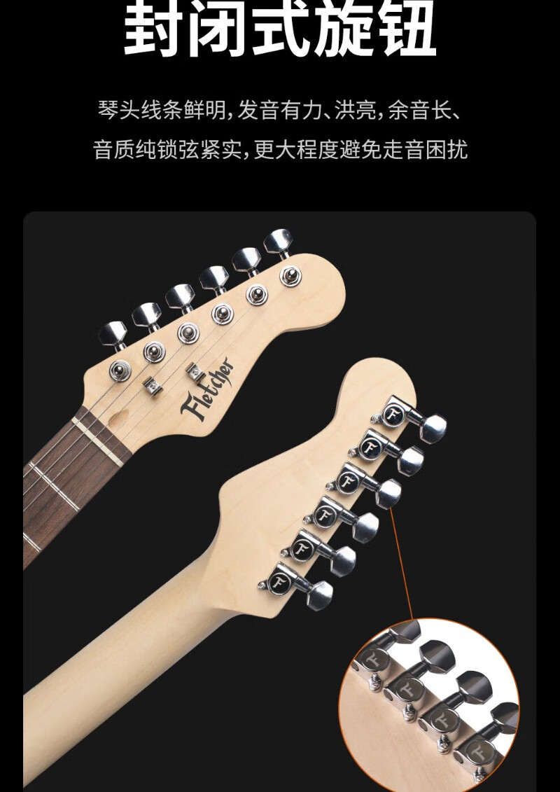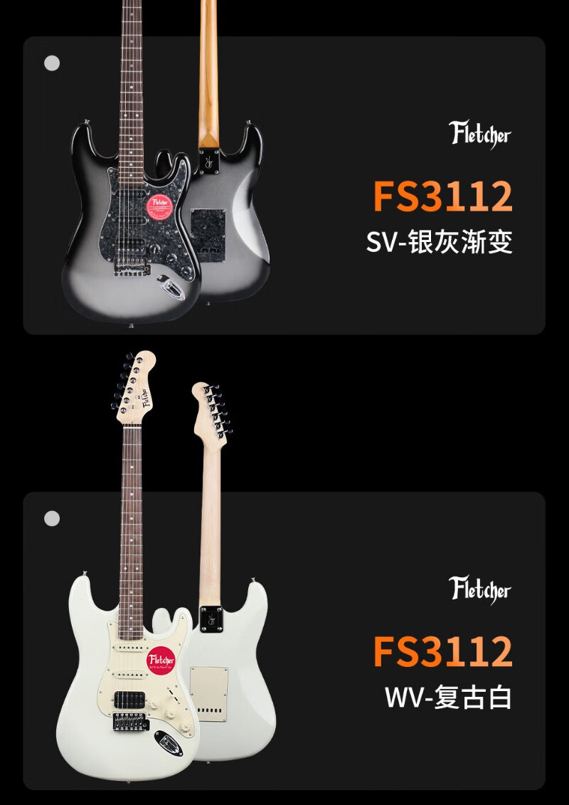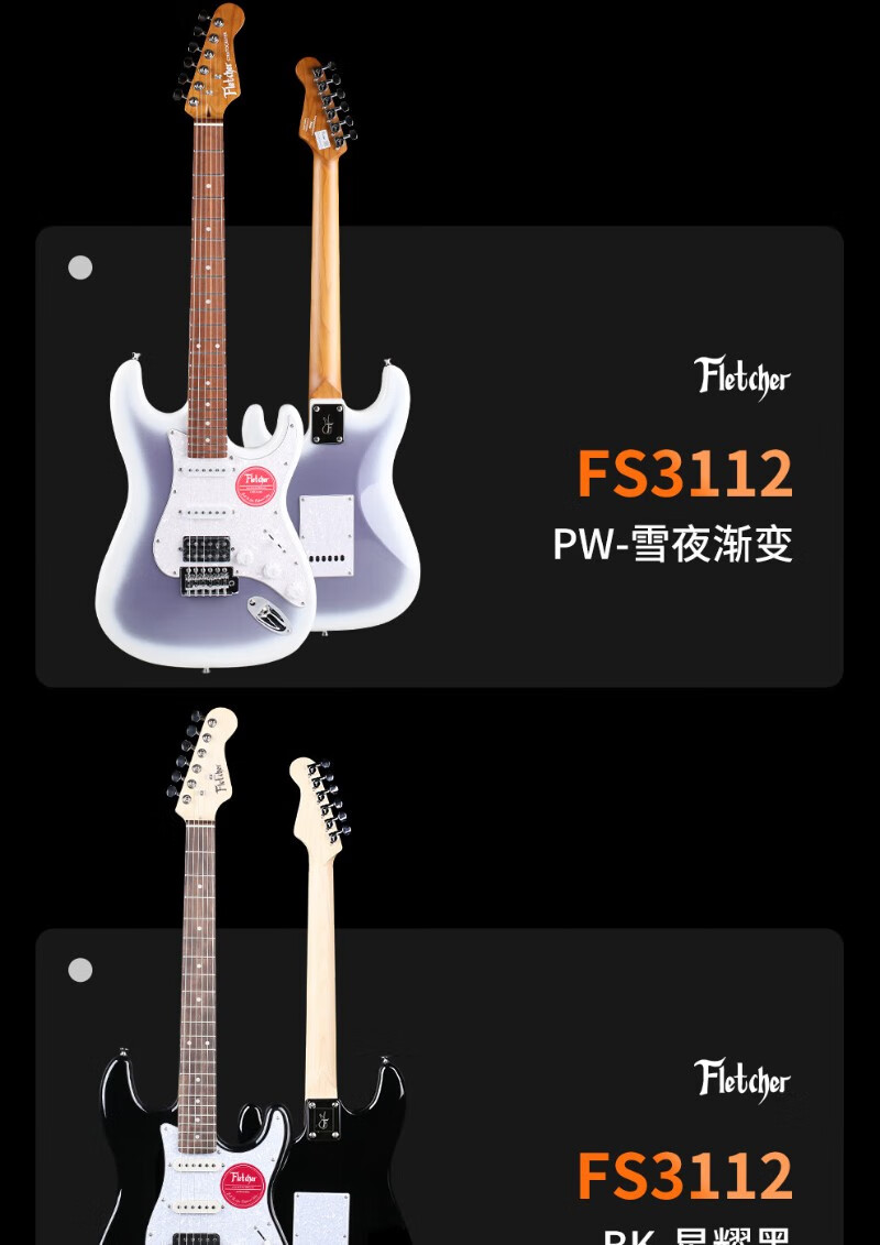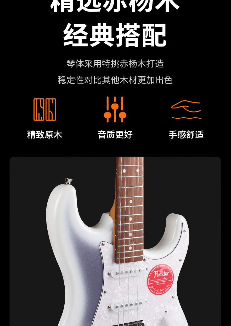 FLETCHER electric guitar for beginners, entry-level single and double pickup ST guitar for professional boys and girls playing and singing, FLETCHER speaker + FS3112 - regular 3 colors available