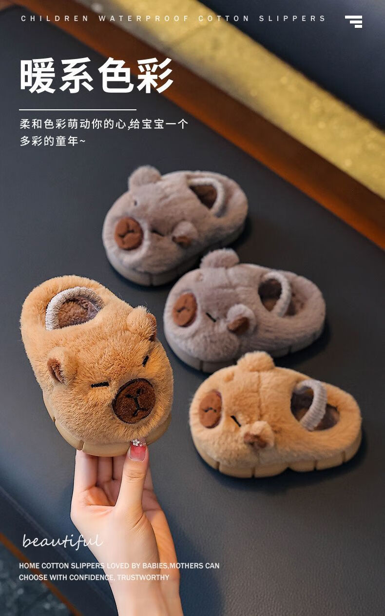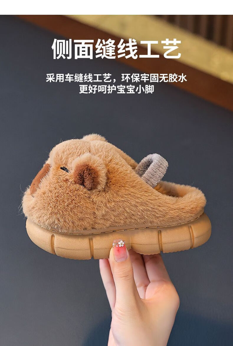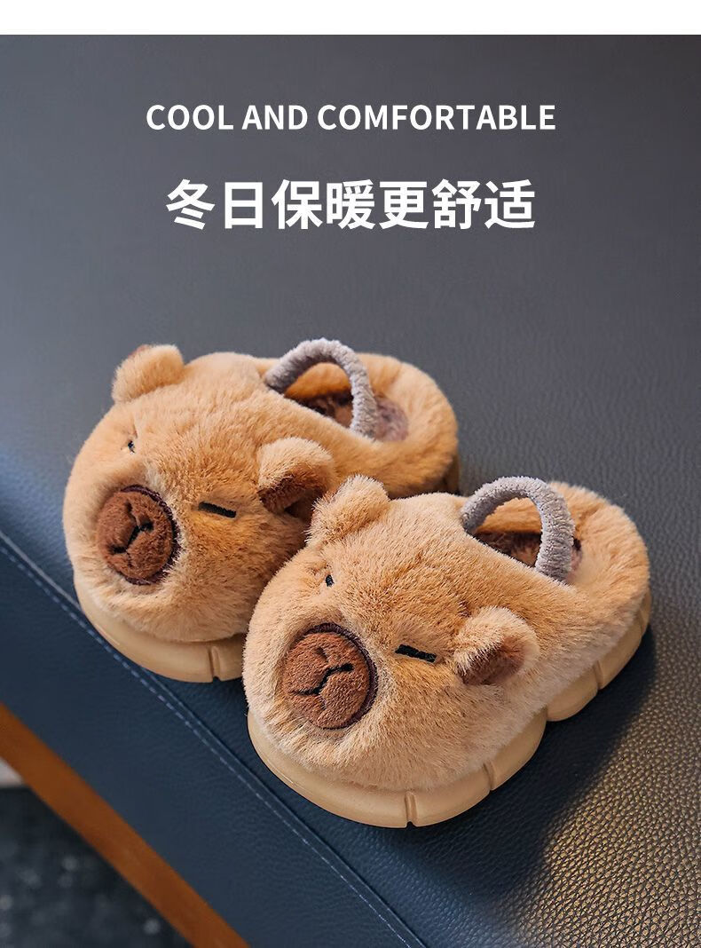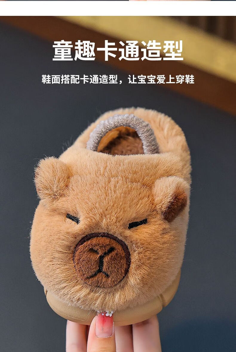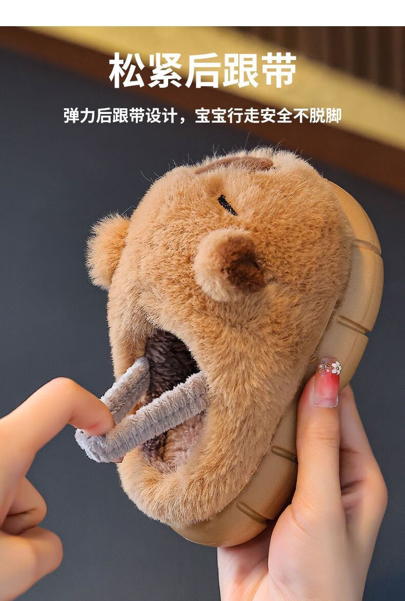 G.duck little yellow duck baby capibala cotton slippers 1-3 years old 2 non-slip indoor soft bottom boys infants and toddlers autumn and winter children brown (upgraded version of capibala has back strap) 22-23 size inner length 13.5cm suitable for 1-2 years old