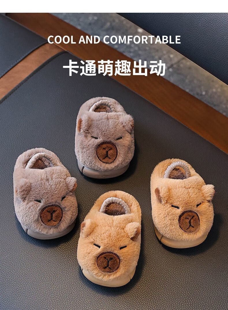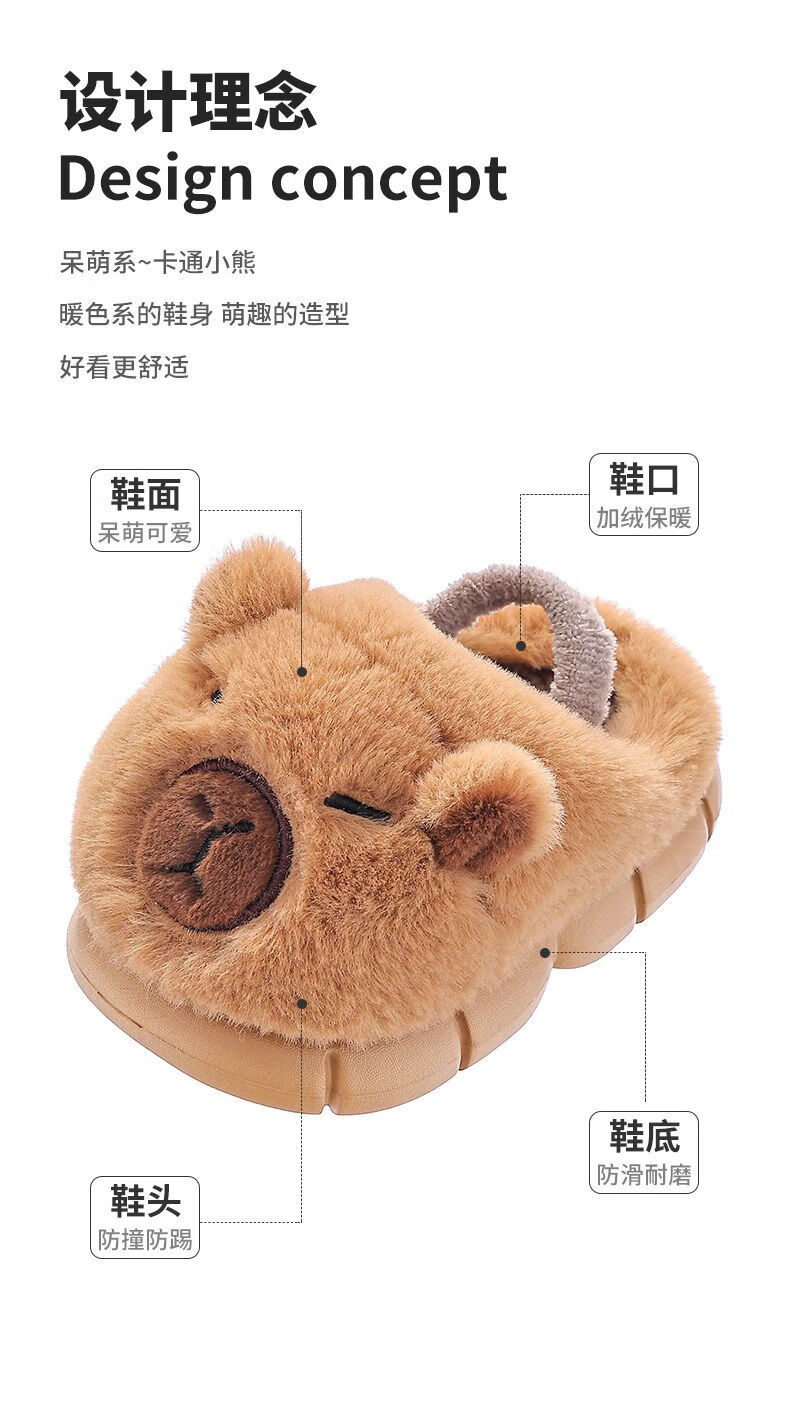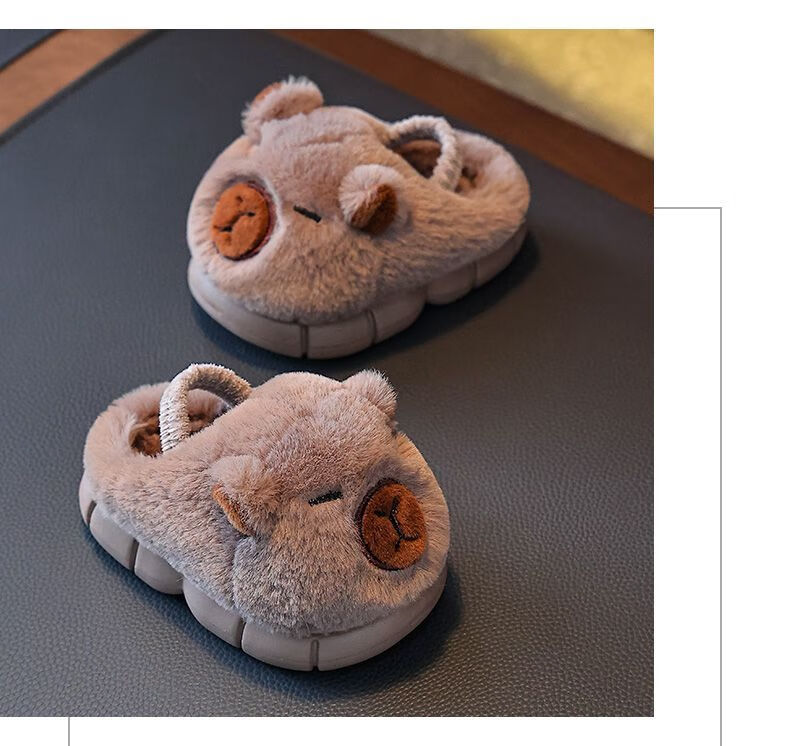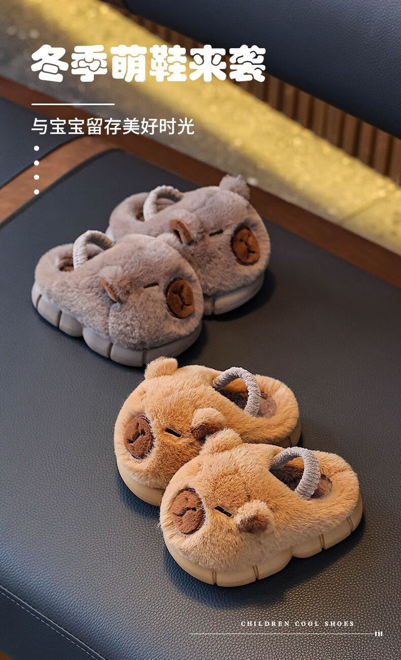 G.duck little yellow duck baby capibala cotton slippers 1-3 years old 2 non-slip indoor soft bottom boys infants and toddlers autumn and winter children brown (upgraded version of capibala has back strap) 22-23 size inner length 13.5cm suitable for 1-2 years old