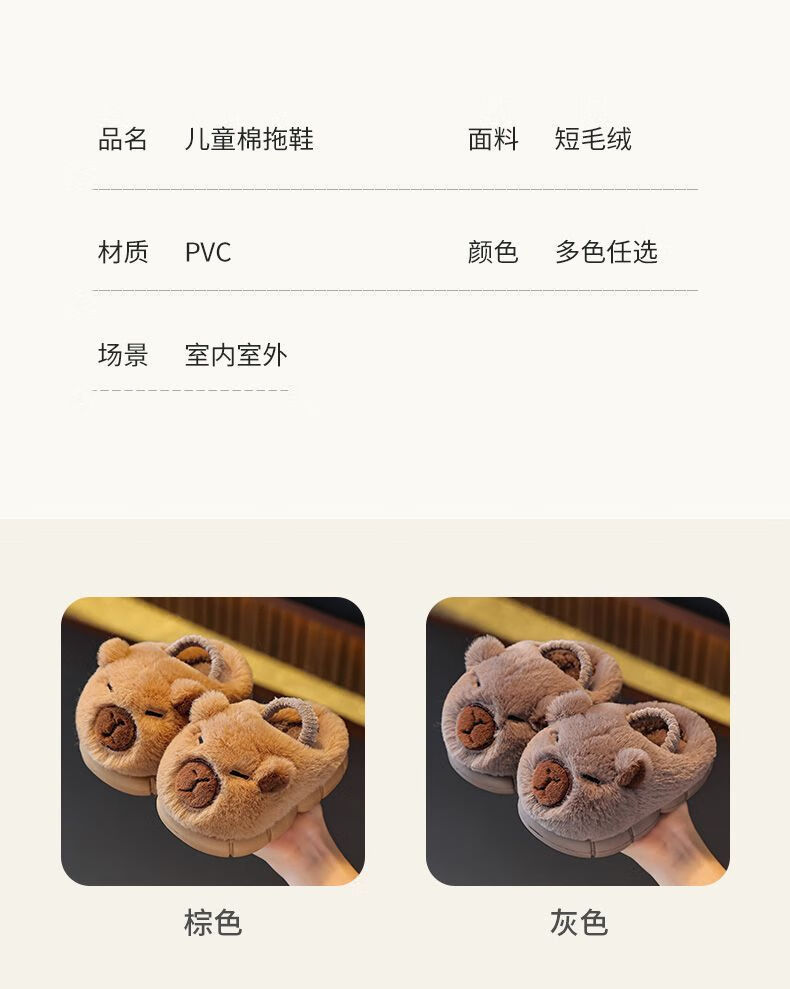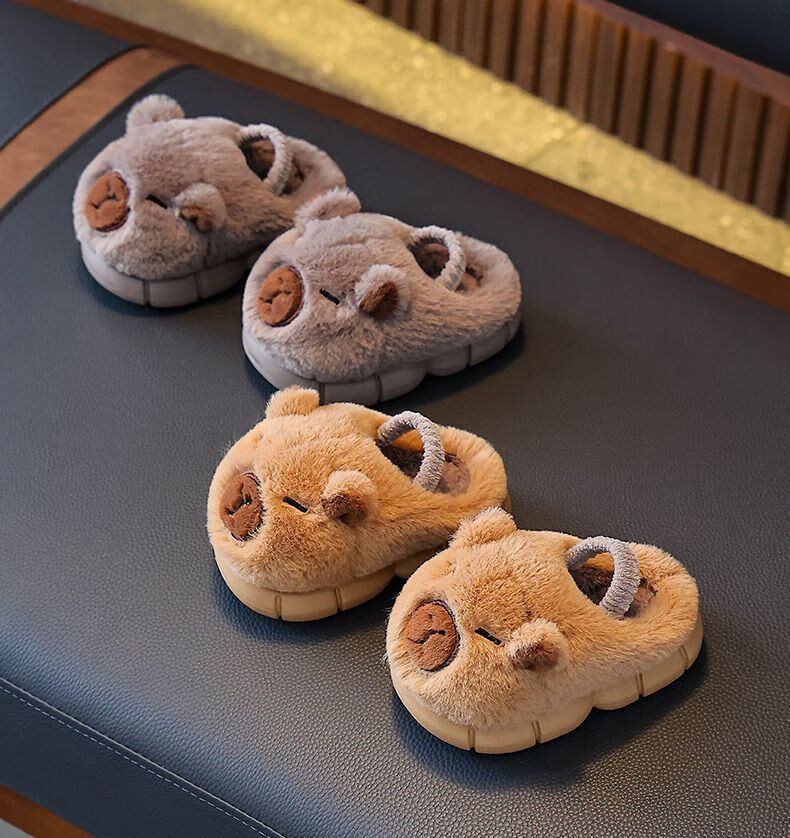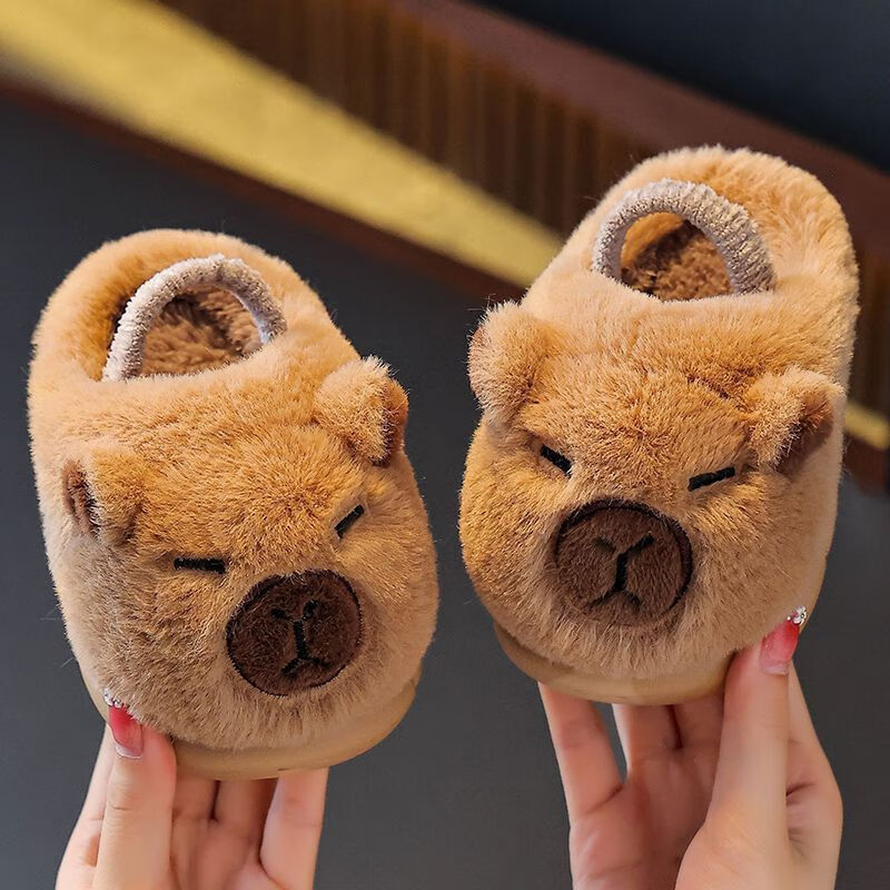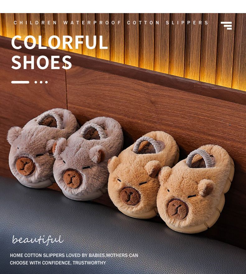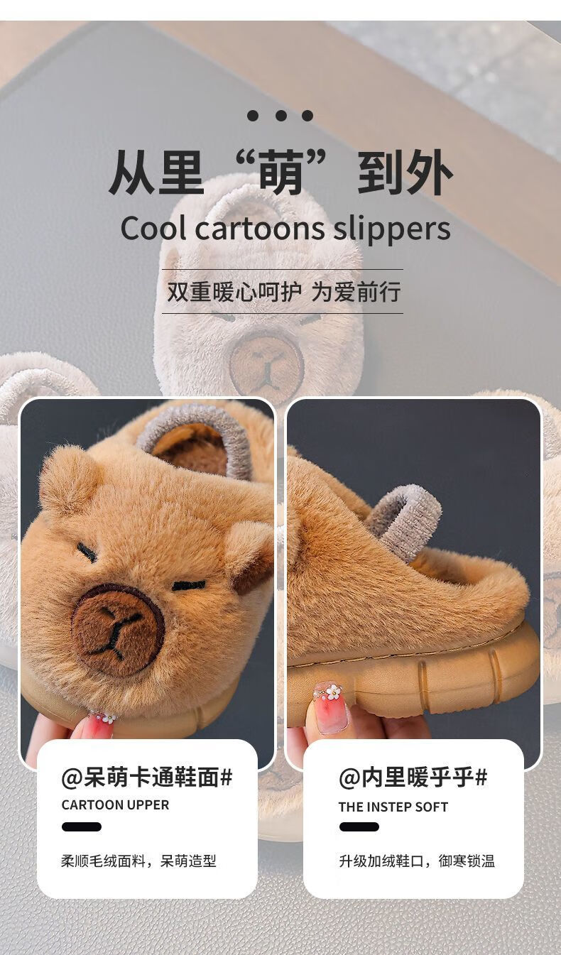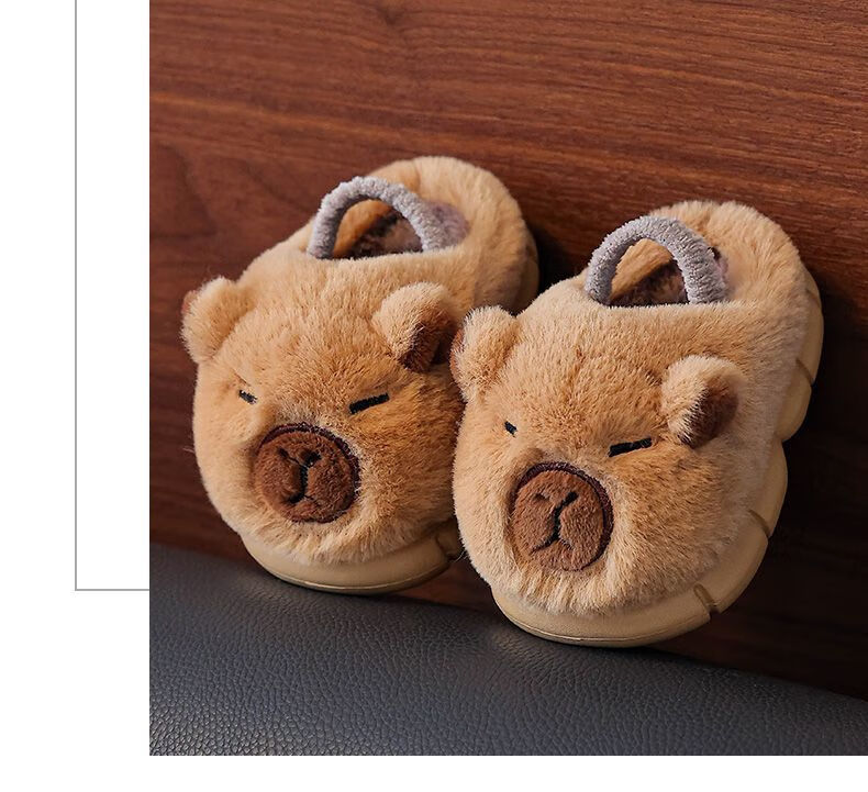 G.duck little yellow duck baby capibala cotton slippers 1-3 years old 2 non-slip indoor soft bottom boys infants and toddlers autumn and winter children brown (upgraded version of capibala has back strap) 22-23 size inner length 13.5cm suitable for 1-2 years old