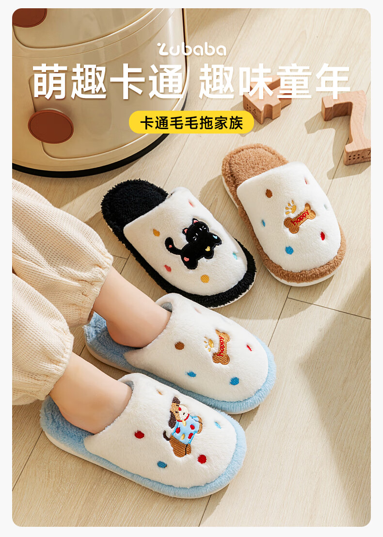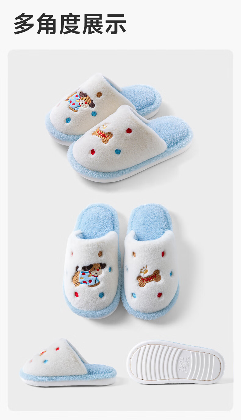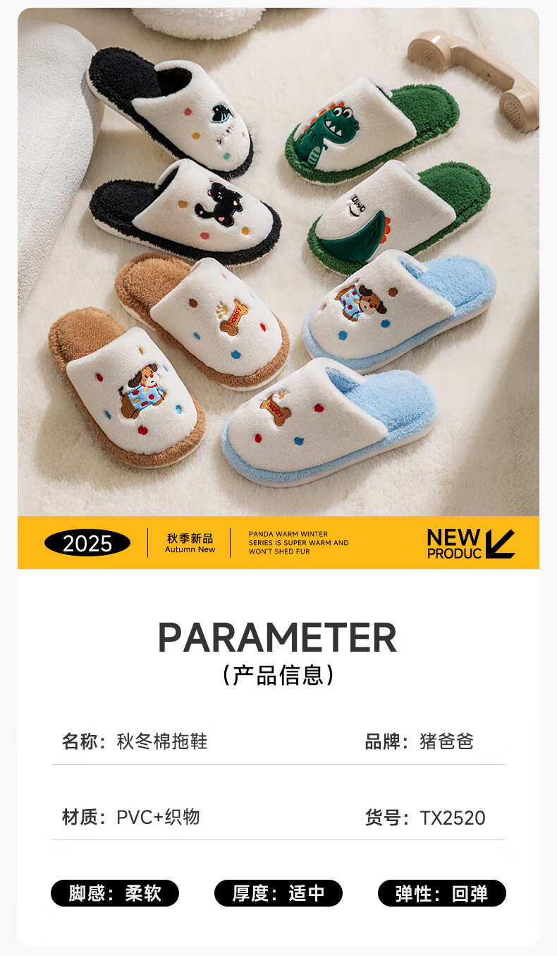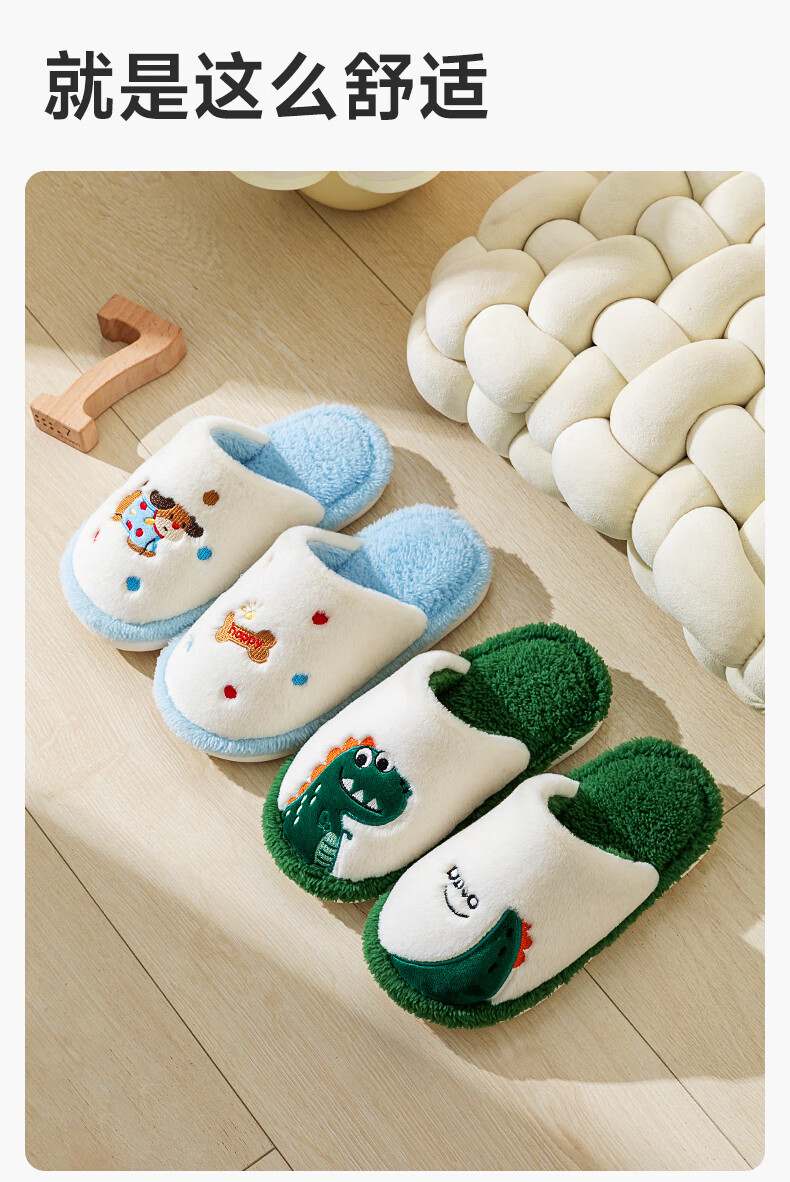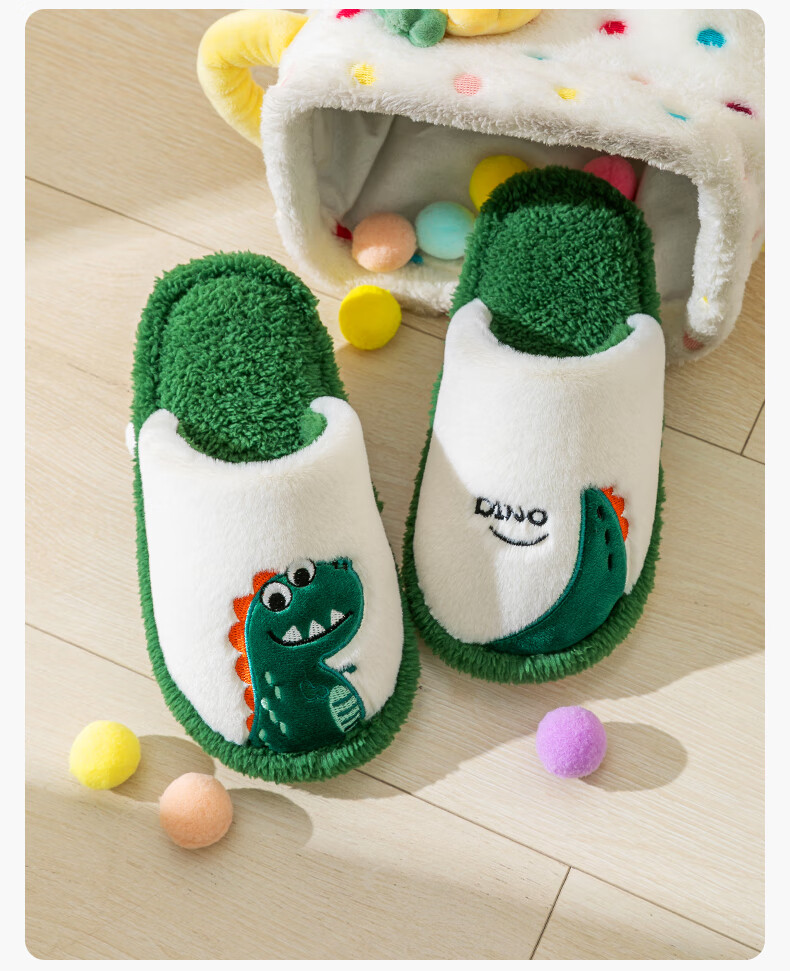 Pig Daddy's Family of Three Parent-child Cotton Slippers Children's Autumn and Winter Home Indoor Non-Slip Boys and Girls 2025 New Furry Slippers Green Dinosaur 21 Inner Length 19CM Suitable for Foot Length 18CM