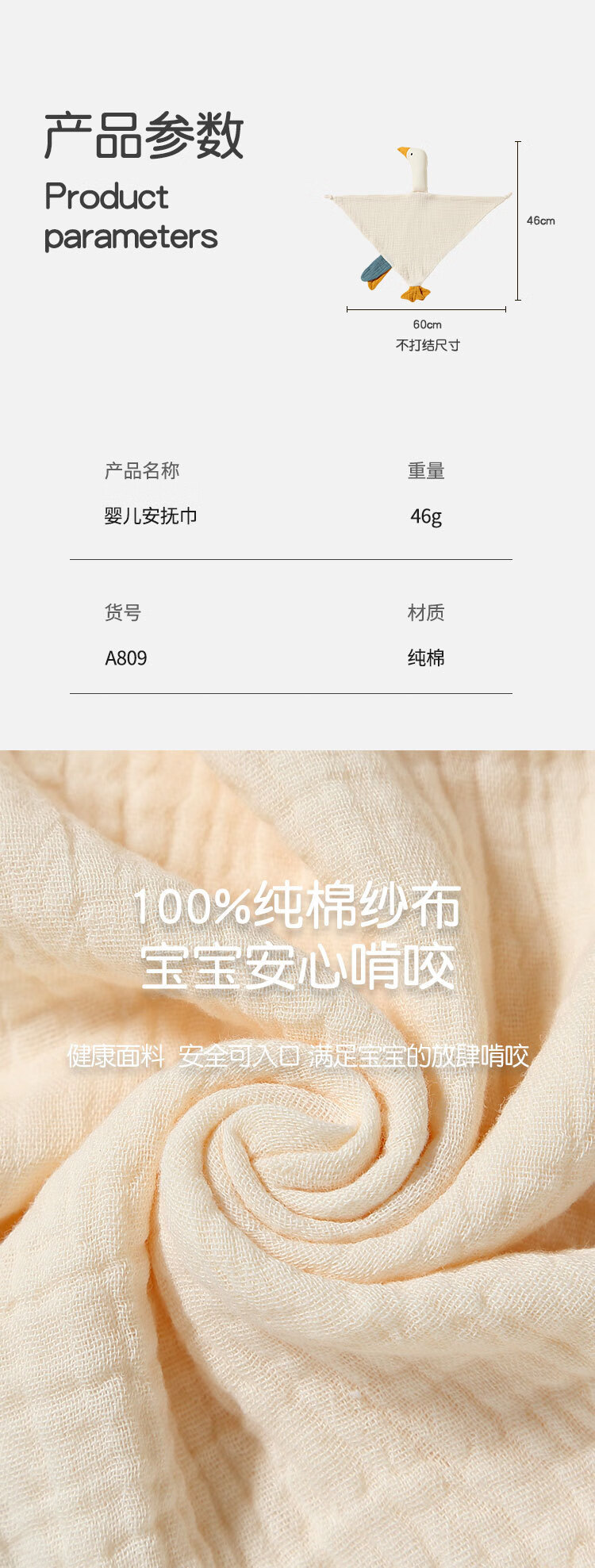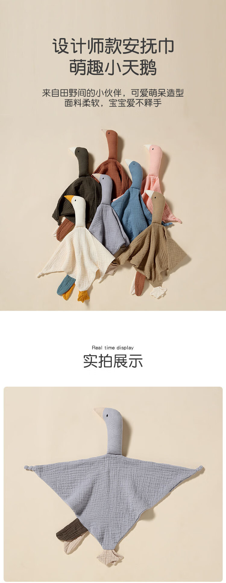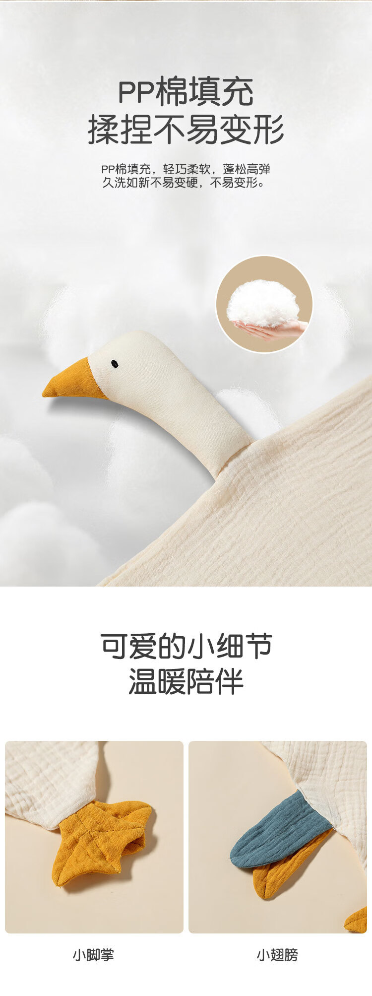 Jingmengyuan wrinkled cloth soothing napkin, baby can bite the doll, sleeping baby, soothing baby to sleep, pure cotton gauze little swan hand puppet, khaki umbrella (goose) 1 pack
