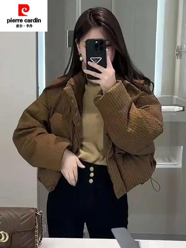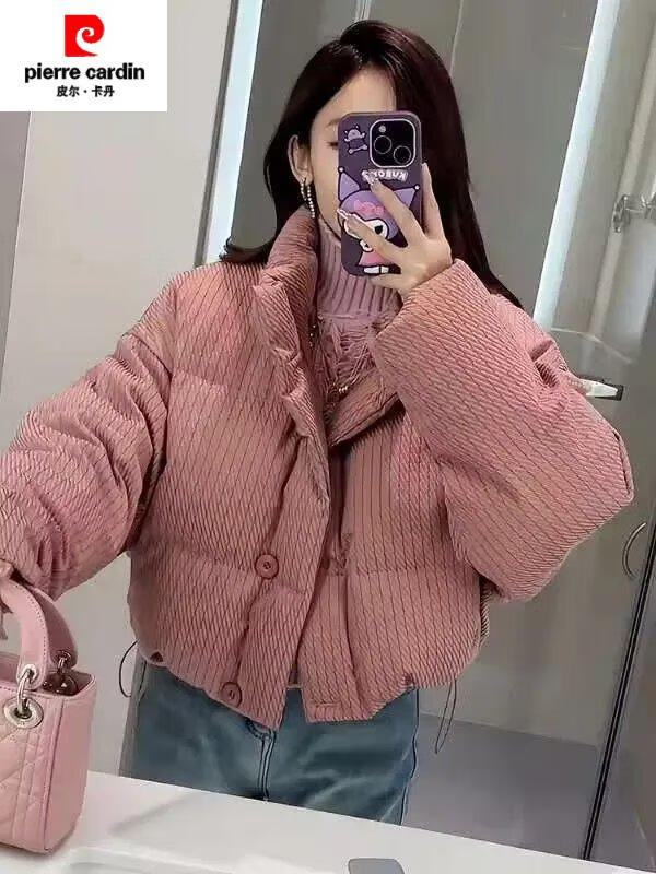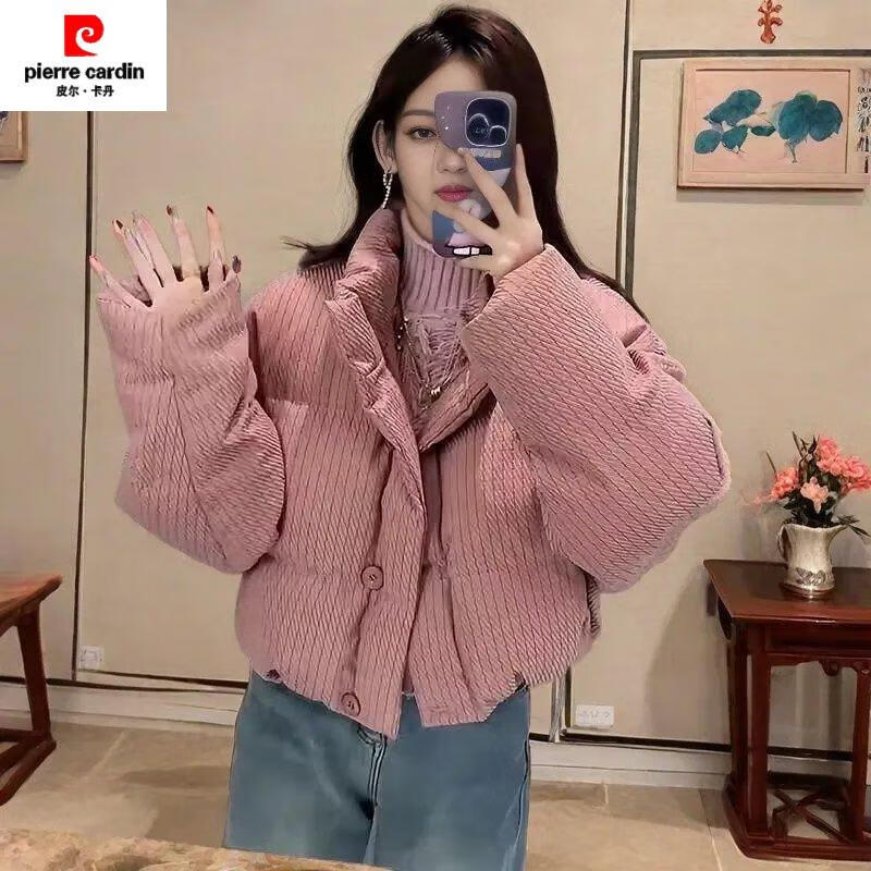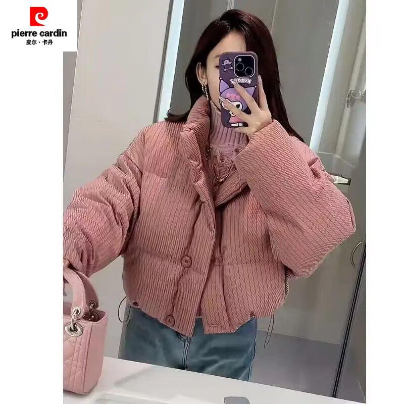 Pierre Cardin (pierre cardin) digital printed fabric cotton coat for small women winter 2025 new loose thickened digital cotton coat bread lotus color vertical pattern plaid cotton coat with cotton lining digital printed fabric L 110-125 will not become Tuo