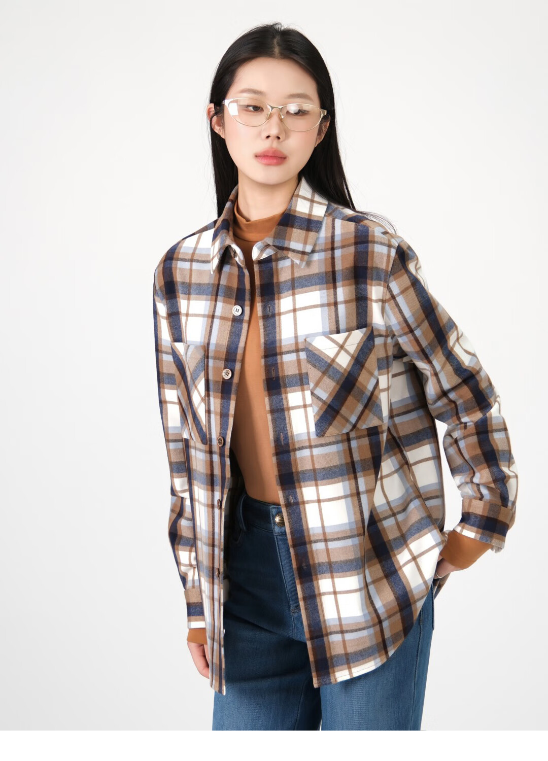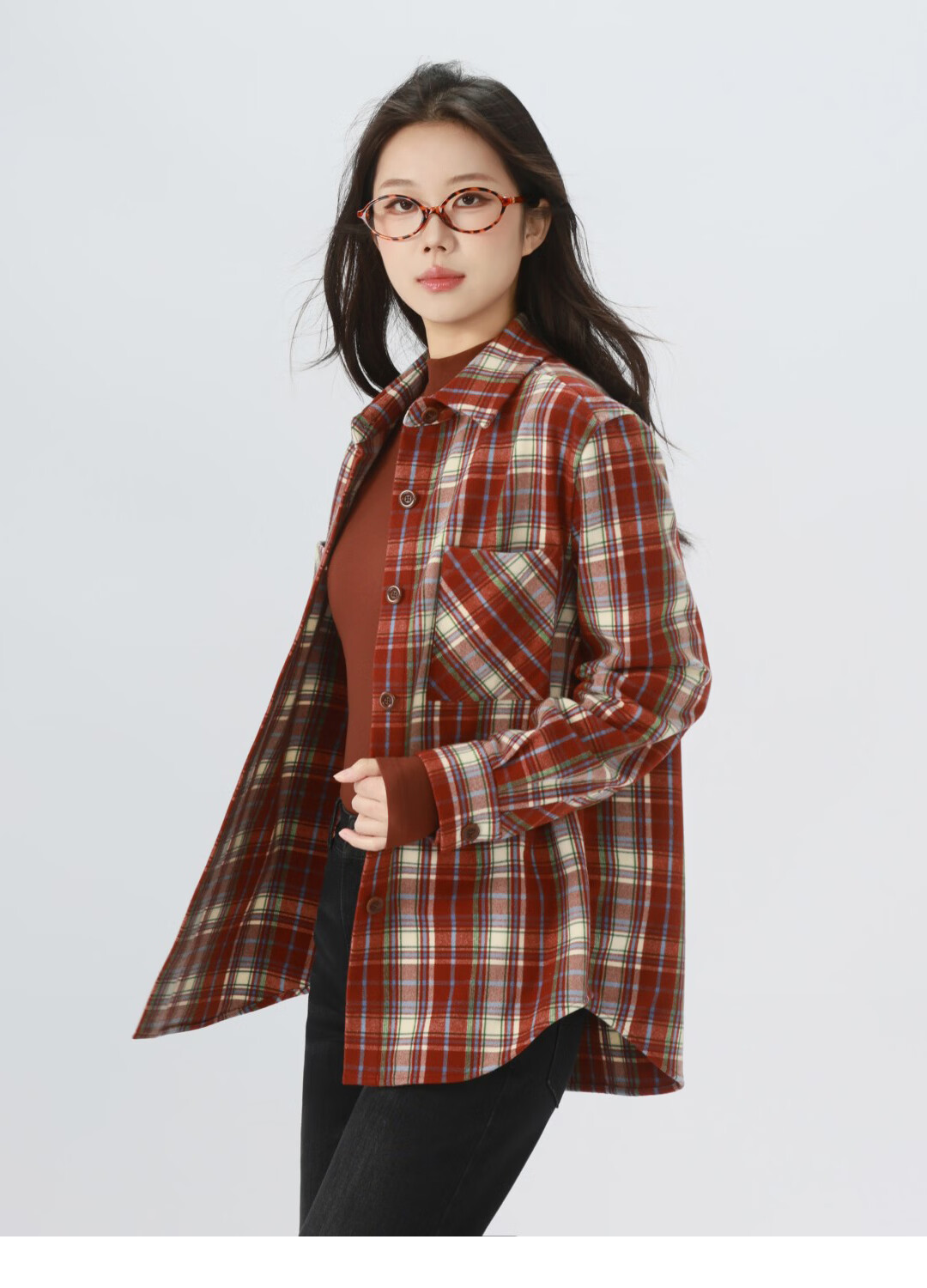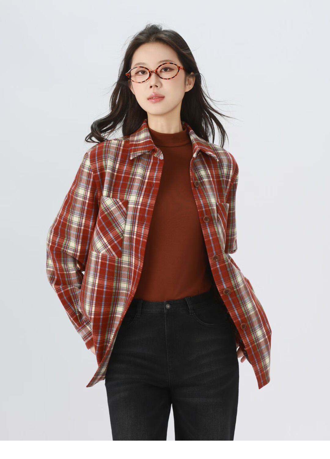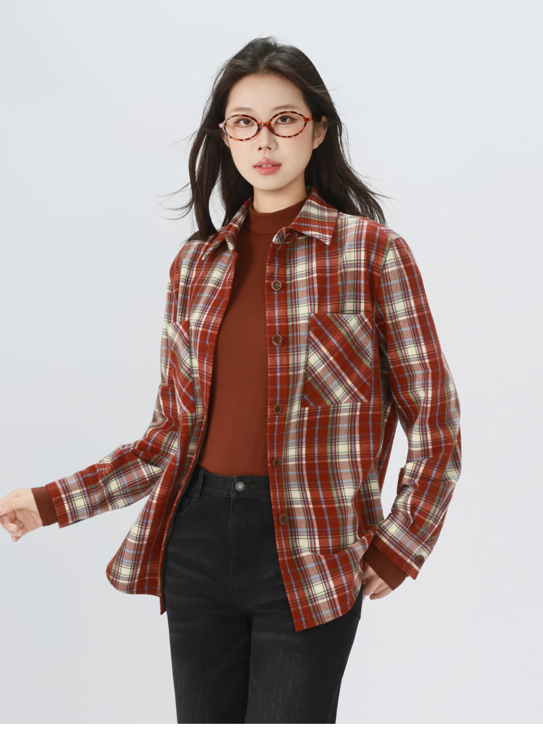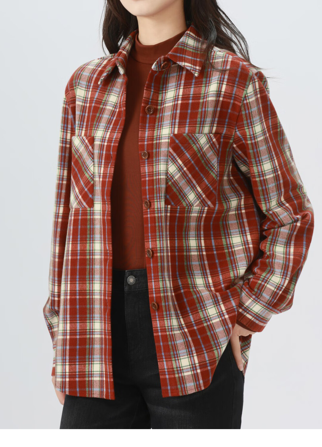 GIRDEAR Women's Top Fashion Classic Versatile Loose Casual Retro Plaid Long Sleeve Shirt Jacket 1400458 Red Brown Plaid Scottish Plaid S 2 Size