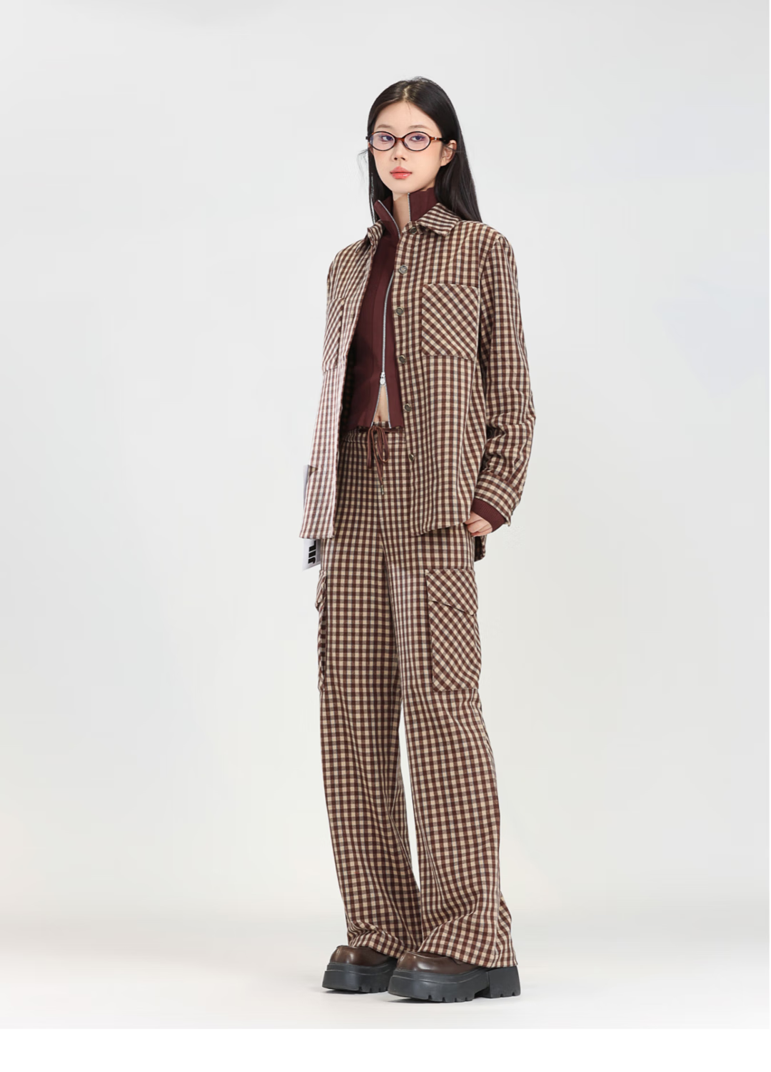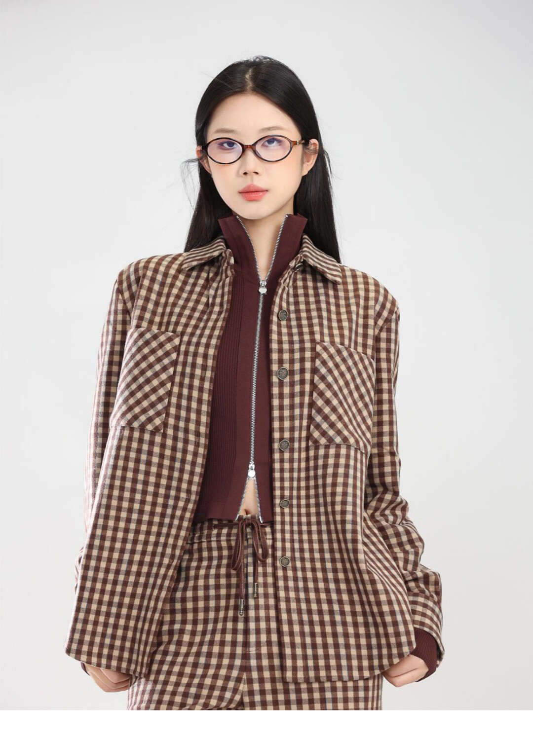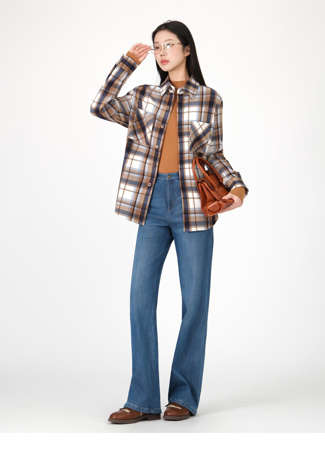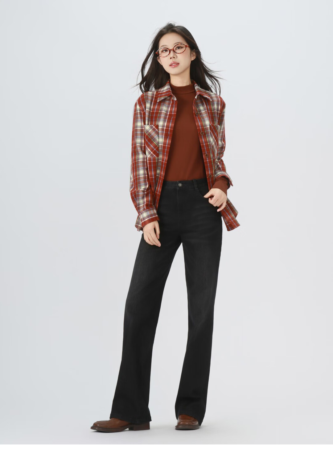 GIRDEAR Women's Top Fashion Classic Versatile Loose Casual Retro Plaid Long Sleeve Shirt Jacket 1400458 Red Brown Plaid Scottish Plaid S 2 Size