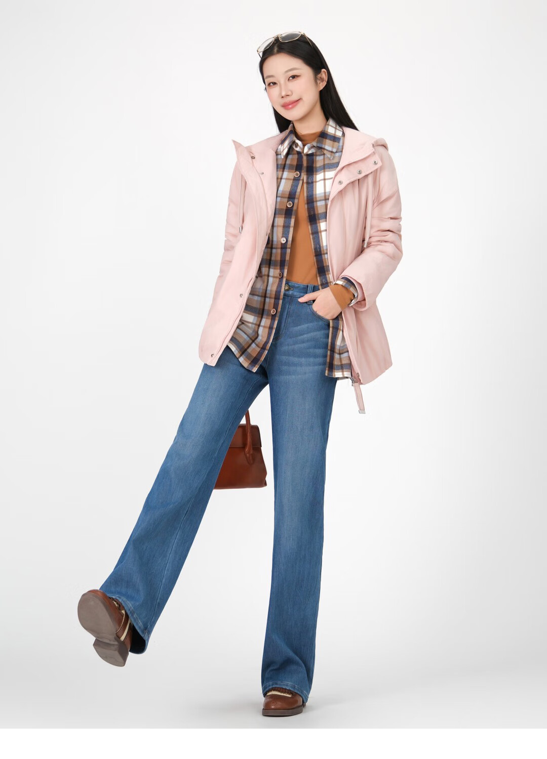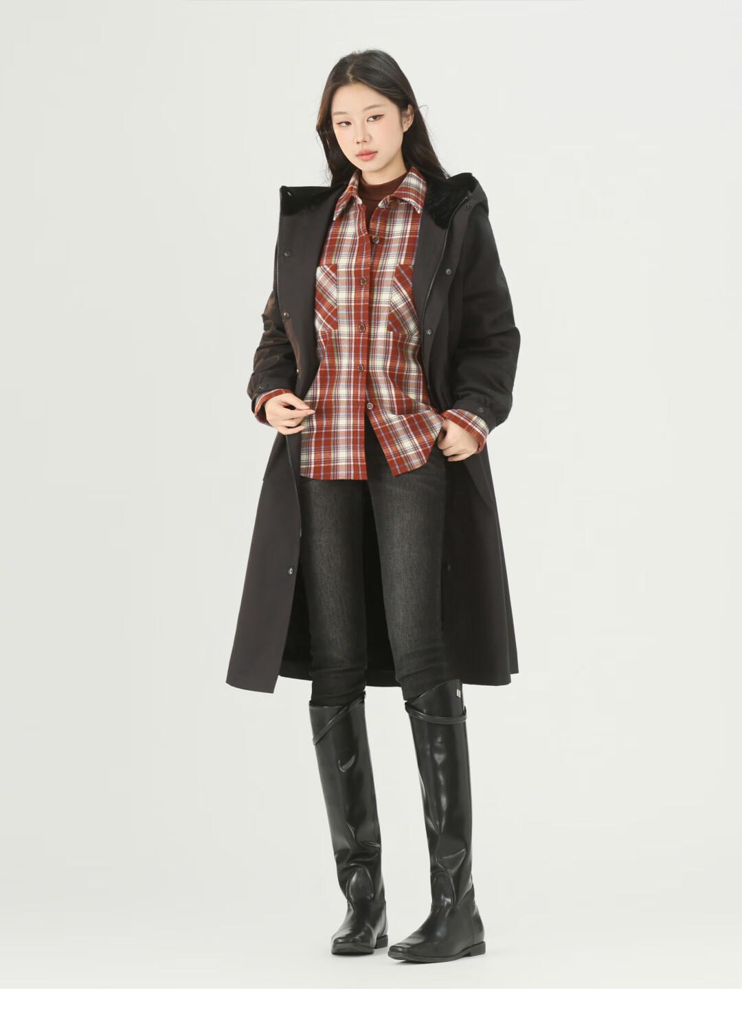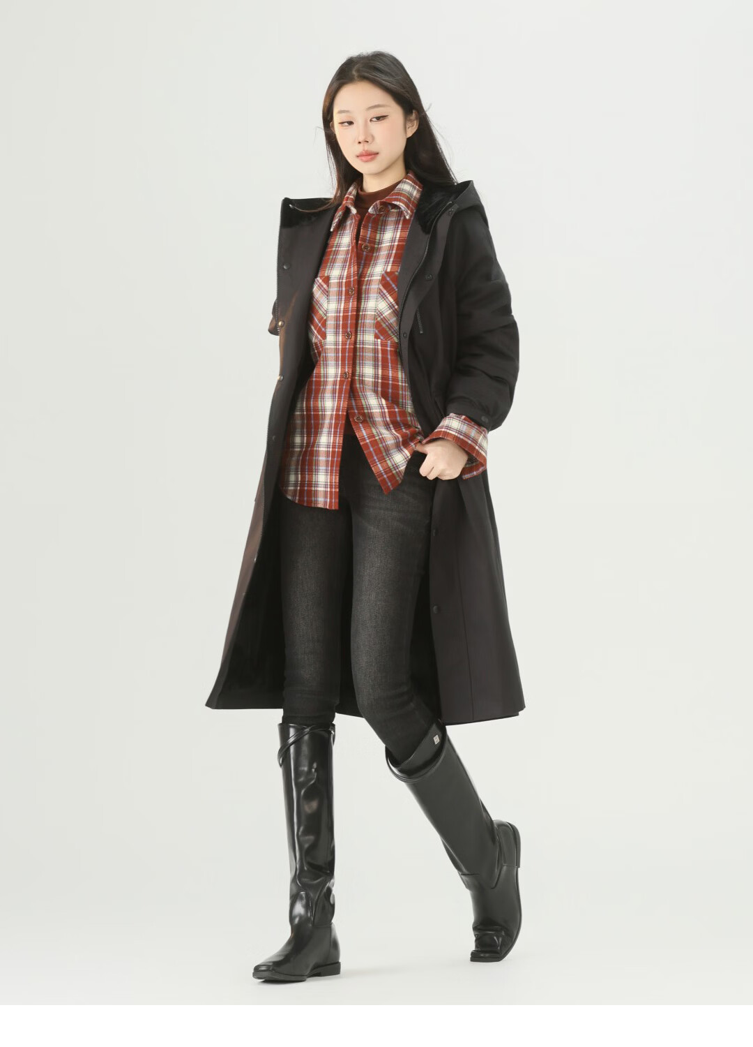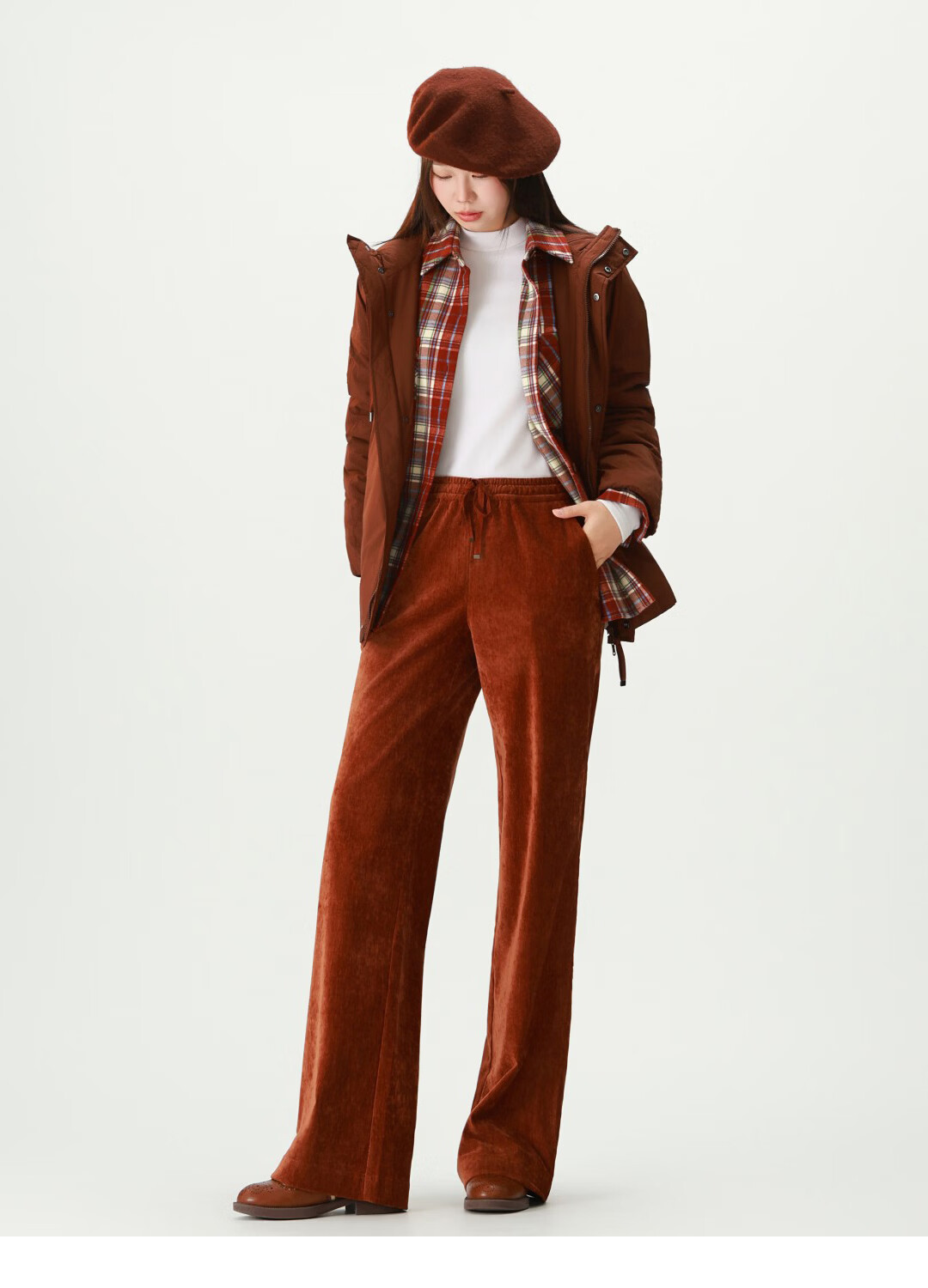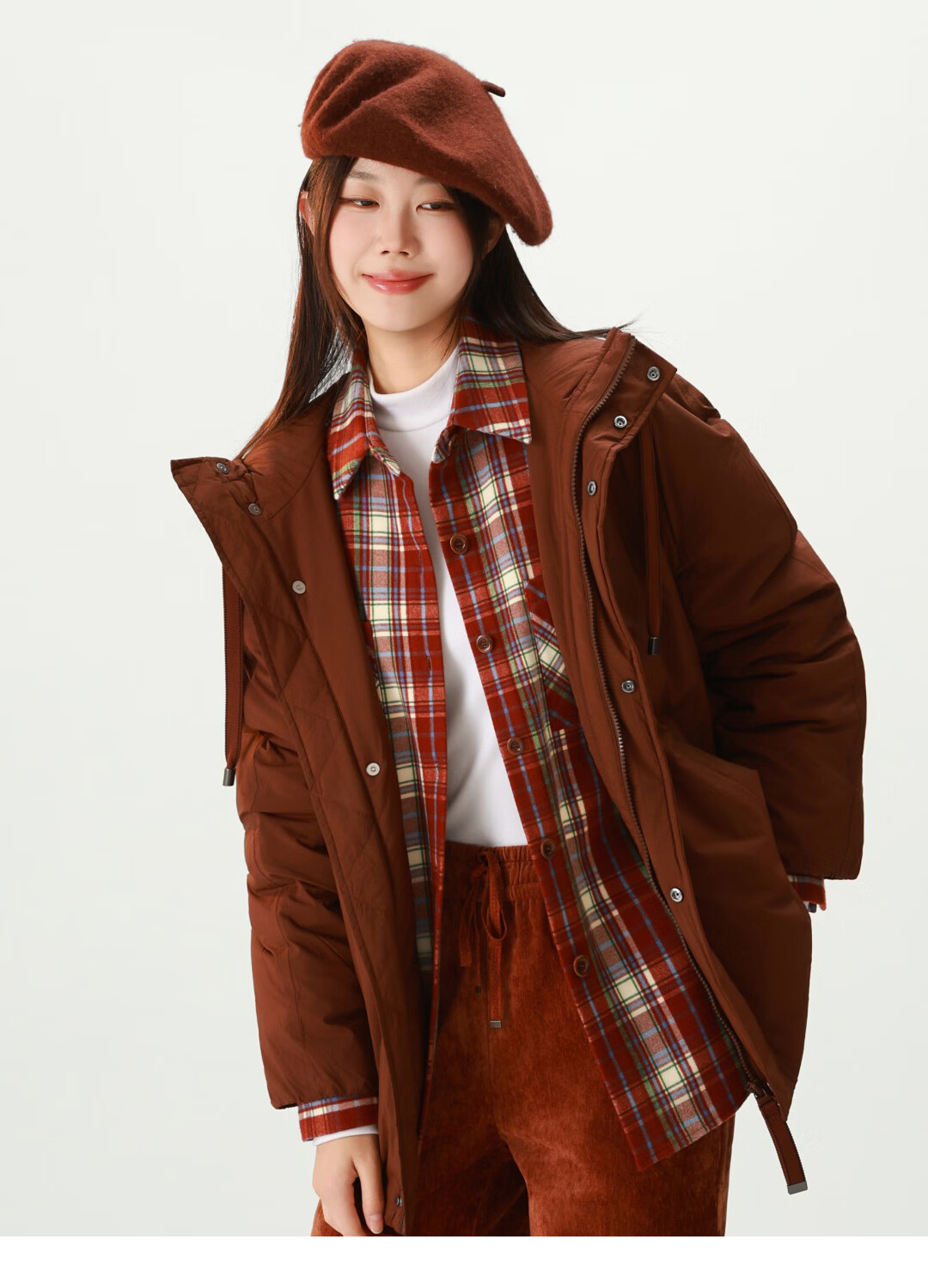 GIRDEAR Women's Top Fashion Classic Versatile Loose Casual Retro Plaid Long Sleeve Shirt Jacket 1400458 Red Brown Plaid Scottish Plaid S 2 Size