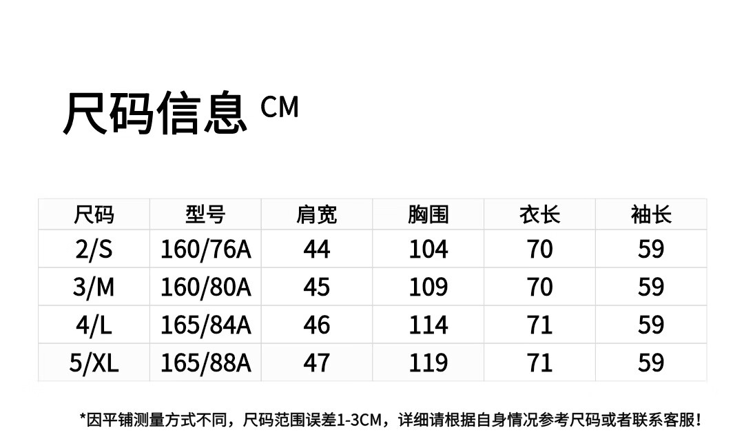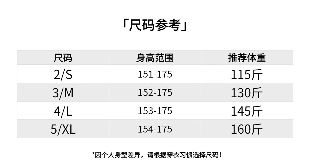 China (cm) 160-165/84-86 165-170 / 88-90 167-172 / 92-96 168-173 / 98-102 170-176 / 106-110