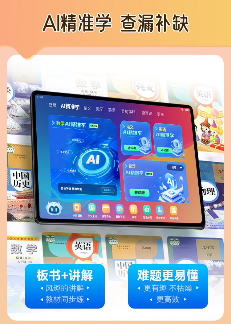 Xiaobawang 2025 new AI intelligent F6 learning machine for primary school, junior high school and high school universal AG eye protection tablet parent control student reading English children's early education machine reading machine Xiaobawang F6 learning machine 12+512G learning and practicing all-in-one primary school mathematics Olympiad textbook