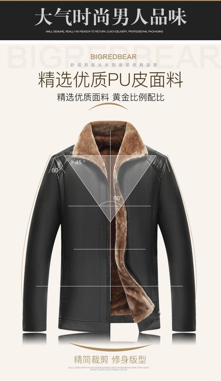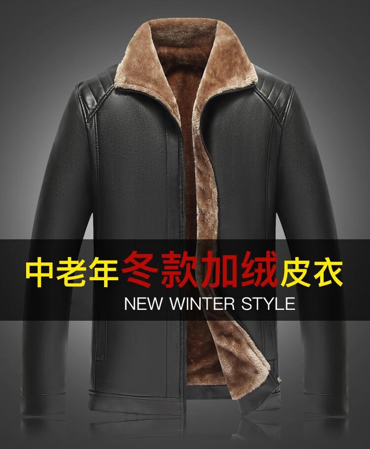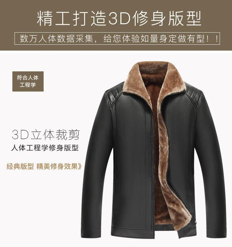 Counter genuine fur integrated velvet thickened leather jacket fashionable classic autumn and winter dad jacket black velvet thickened XL 56 recommended 140-160Jin Jin equals 0.5 kg