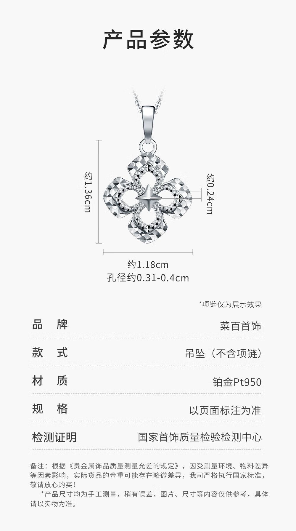 Caibai Jewelry Platinum Pendant Pt950 Platinum Fashion Car Flower Cross Star Flower Pendant Price BJ Platinum Pendant (excluding chain) About 1.54g