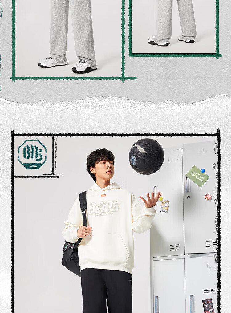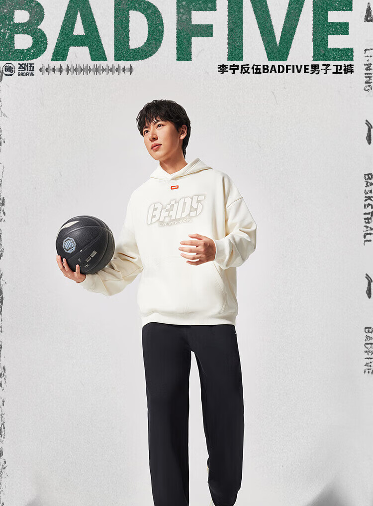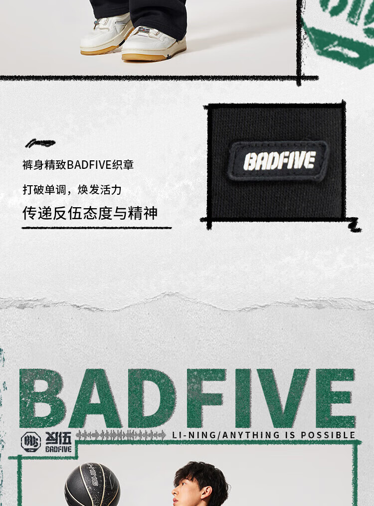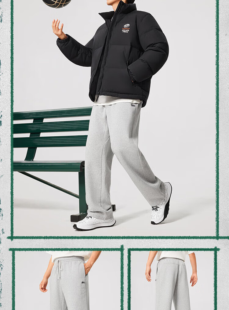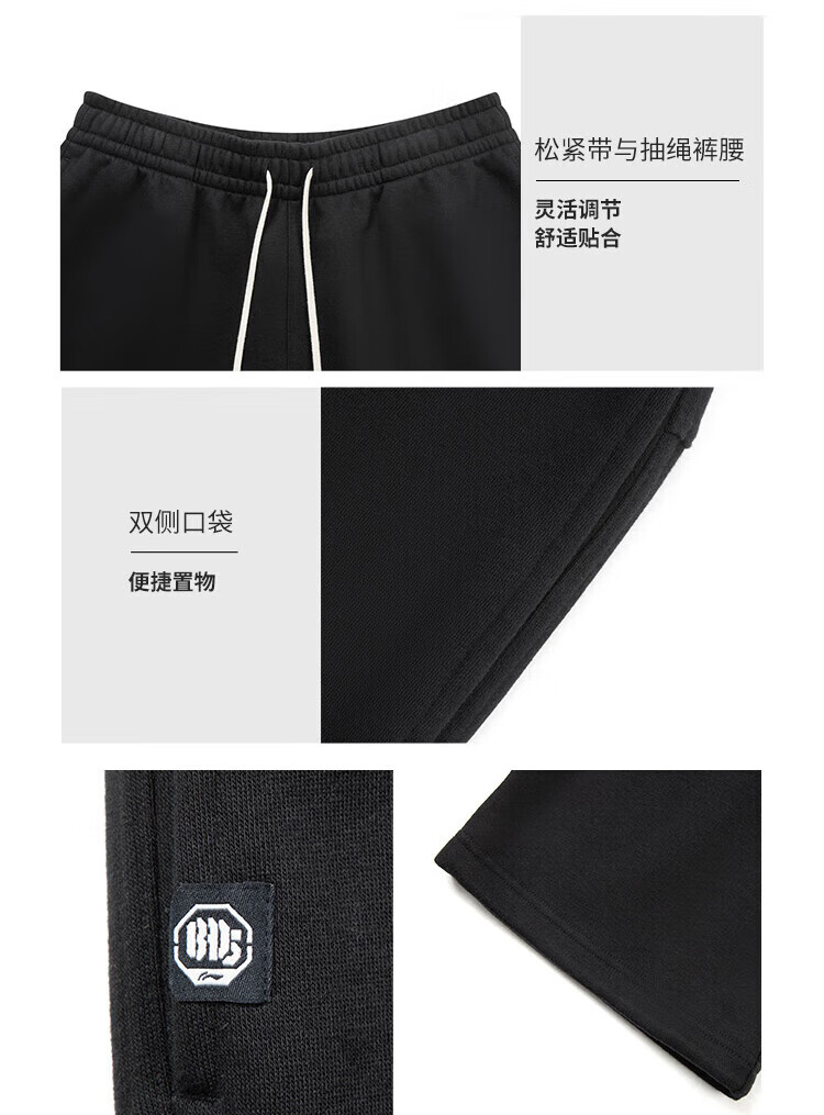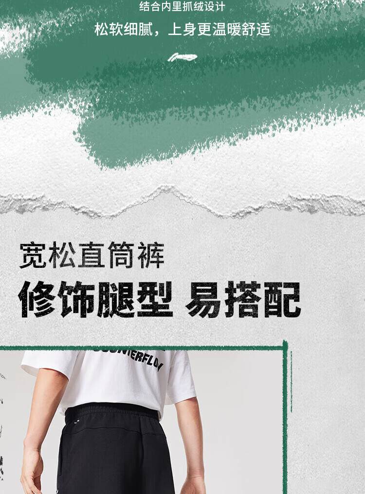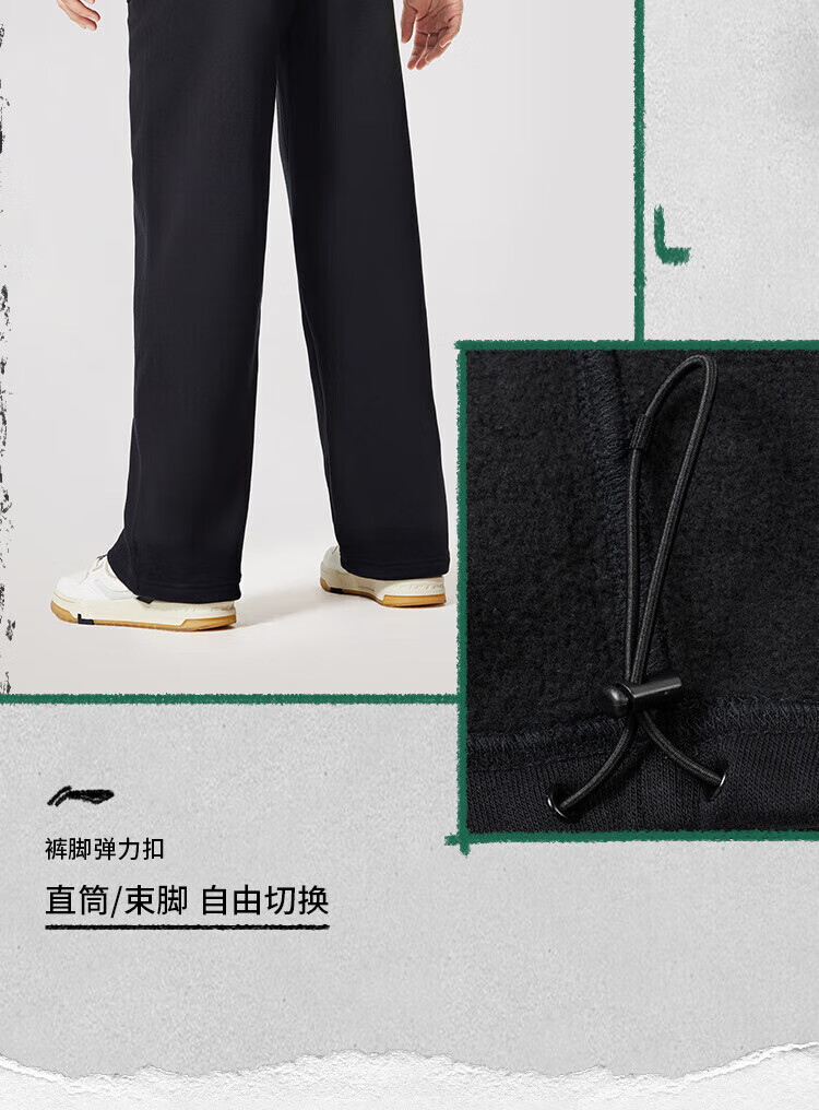 Li-Ning BADFIVE velvet warm sweatpants men's 2025 winter new straight-leg loose sweatpants floral gray moon watch mixed gray-2 M (170)