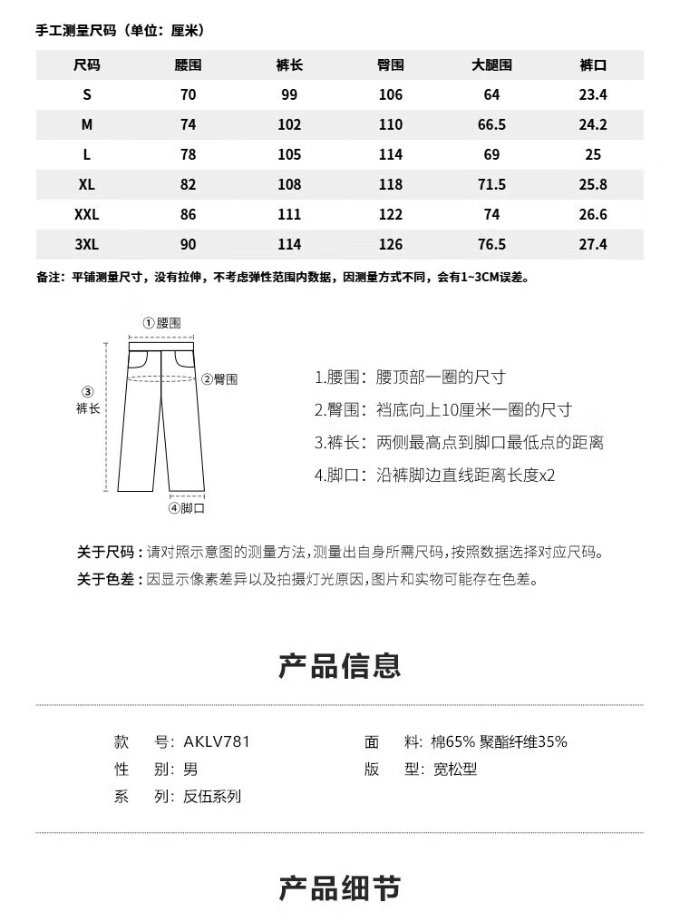 Outseam (cm) 99 cm 101.5 cm 104 cm 106.5 cm 109 cm