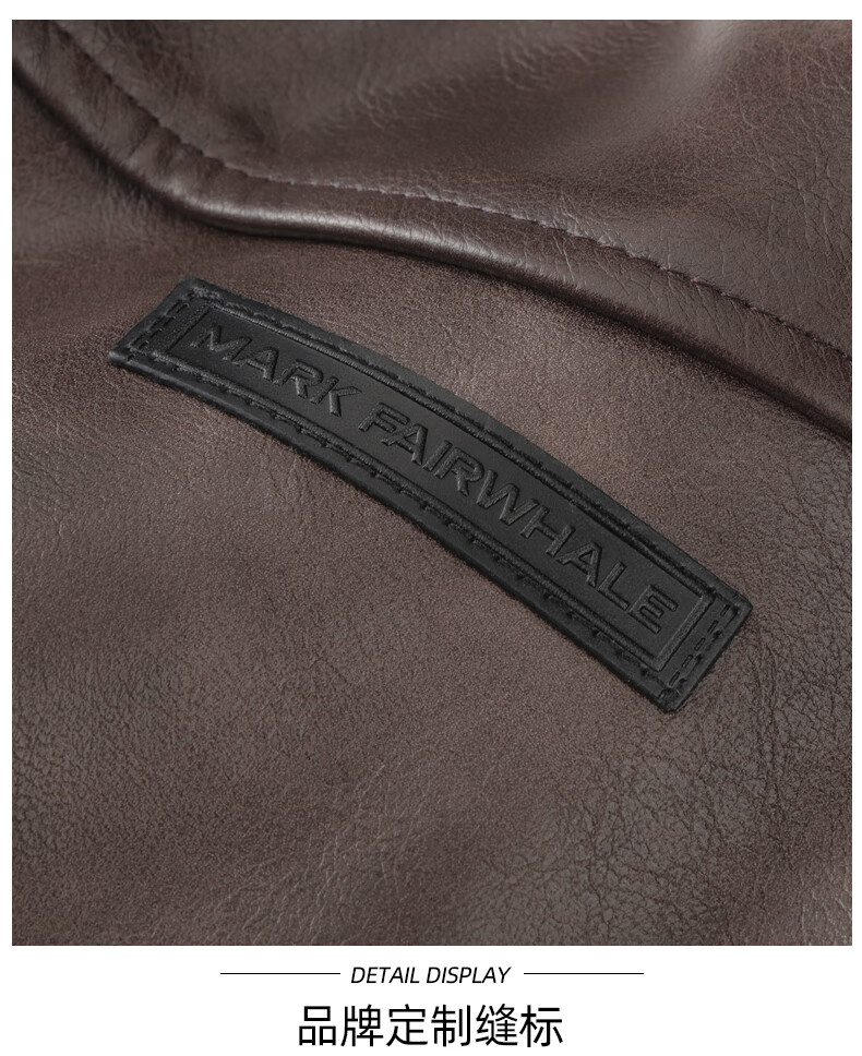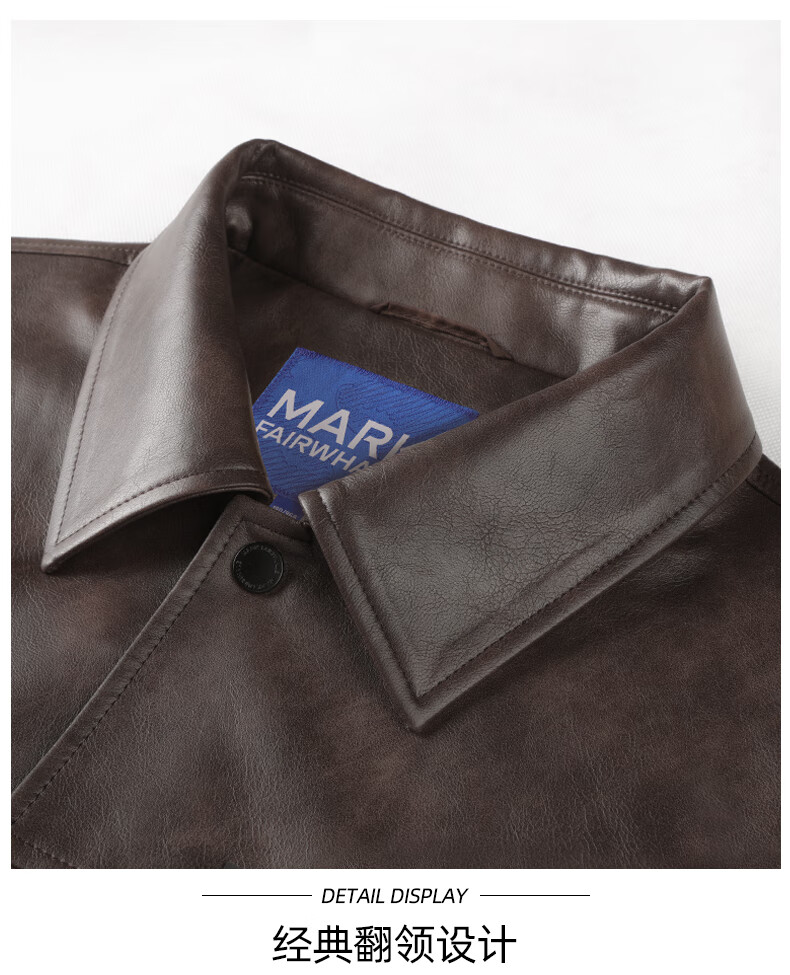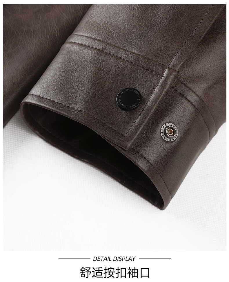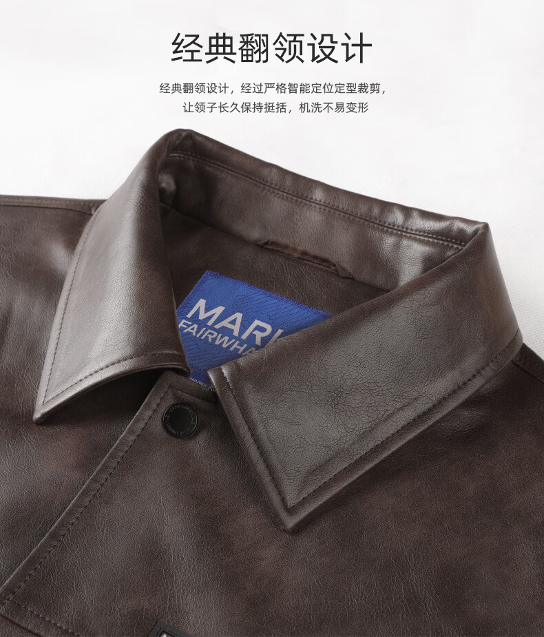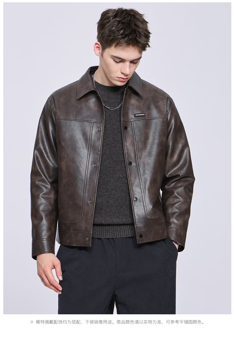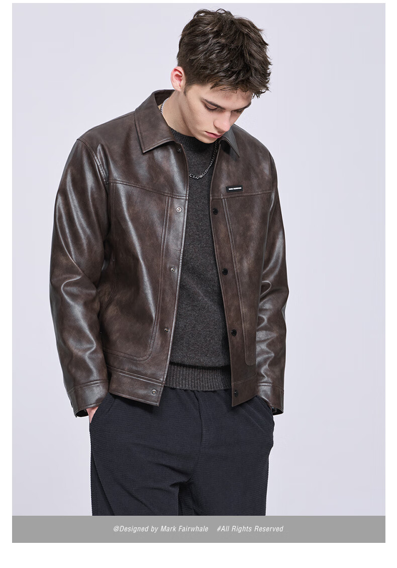 Mark Huafei American functional retro leather jacket men's 2025 autumn new windproof pu lapel jacket 1511 brown plus velvet M 170