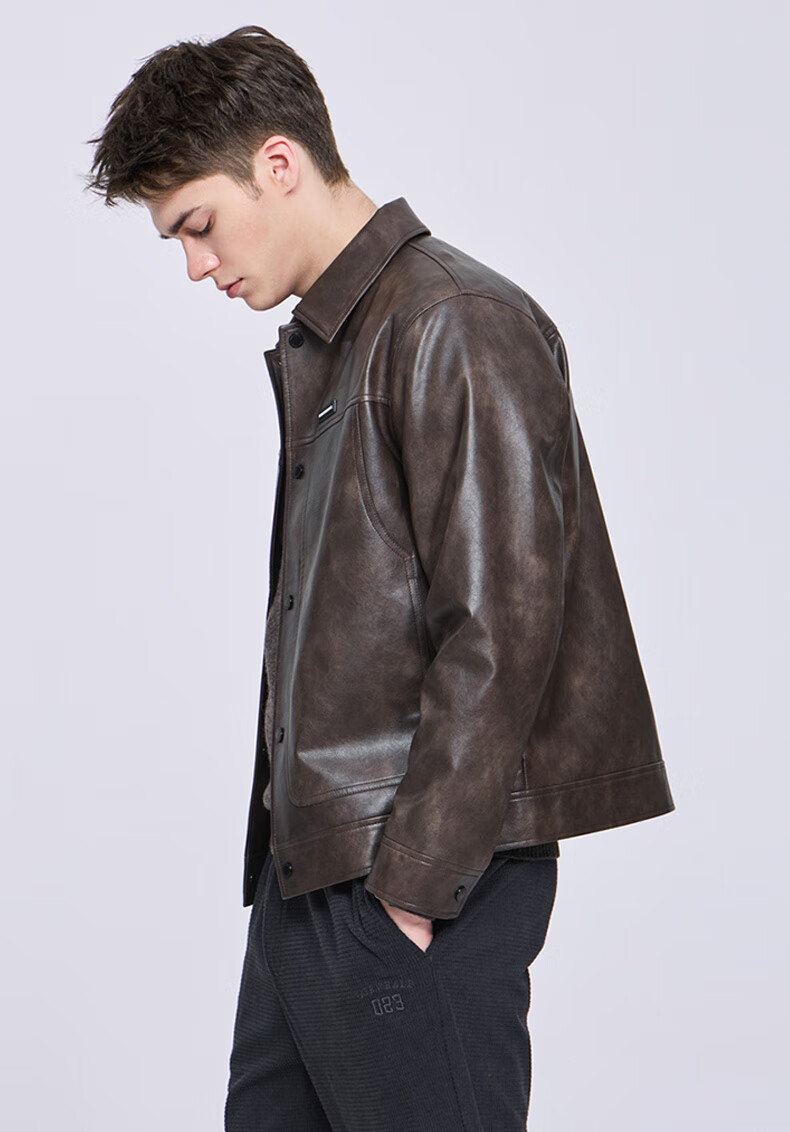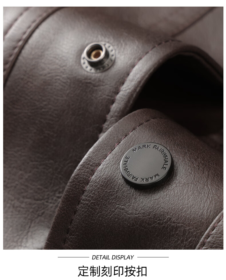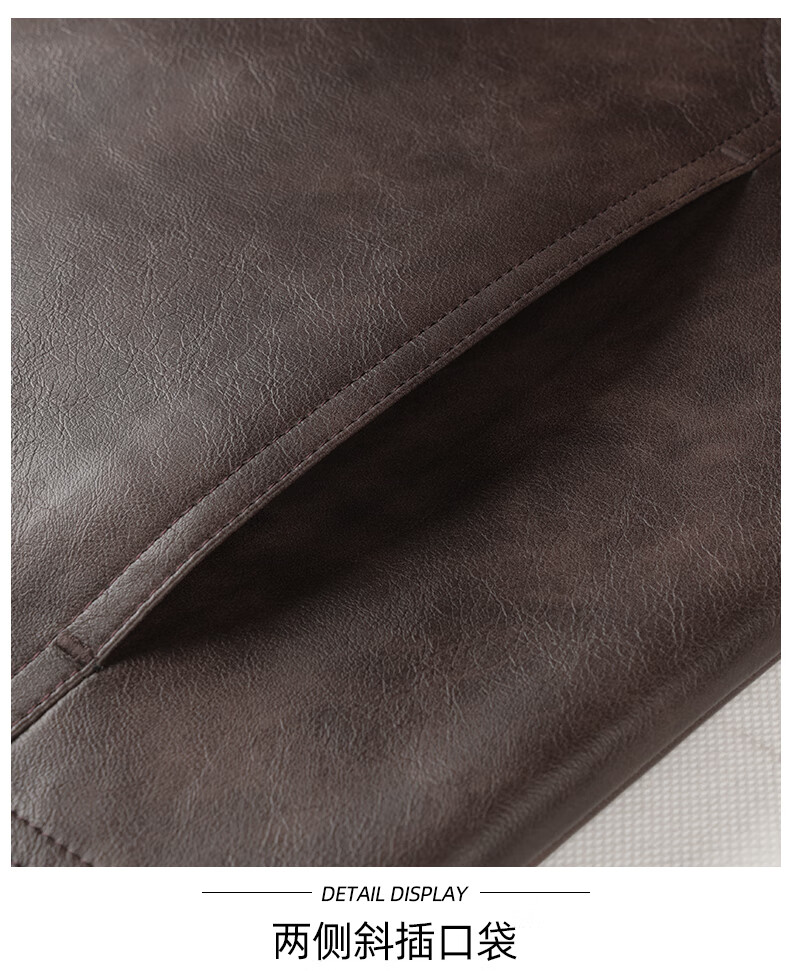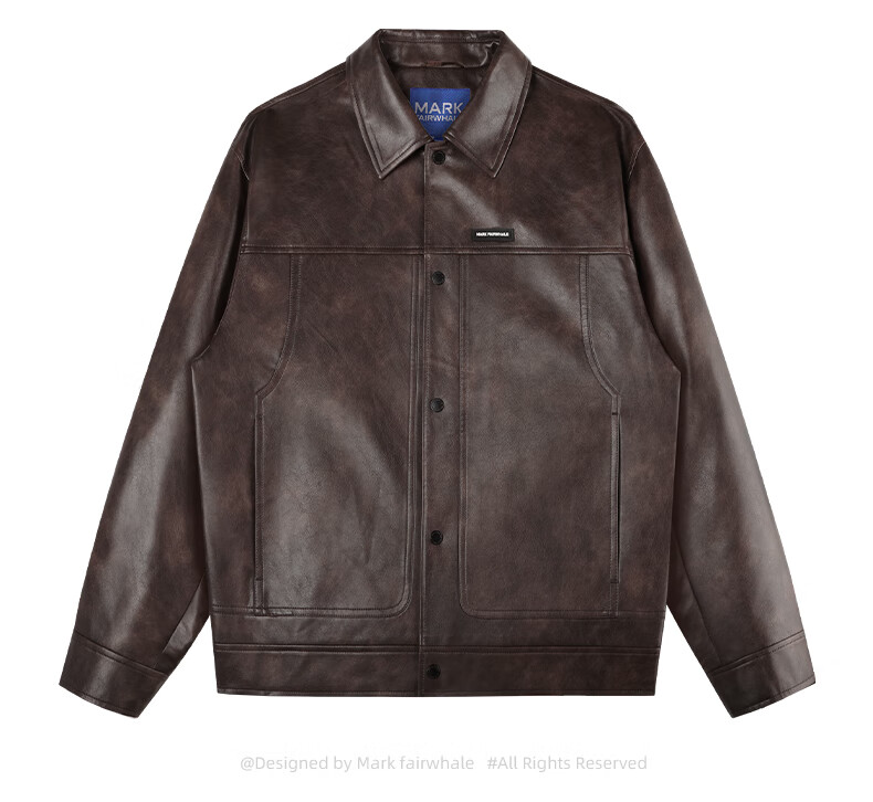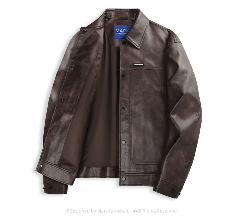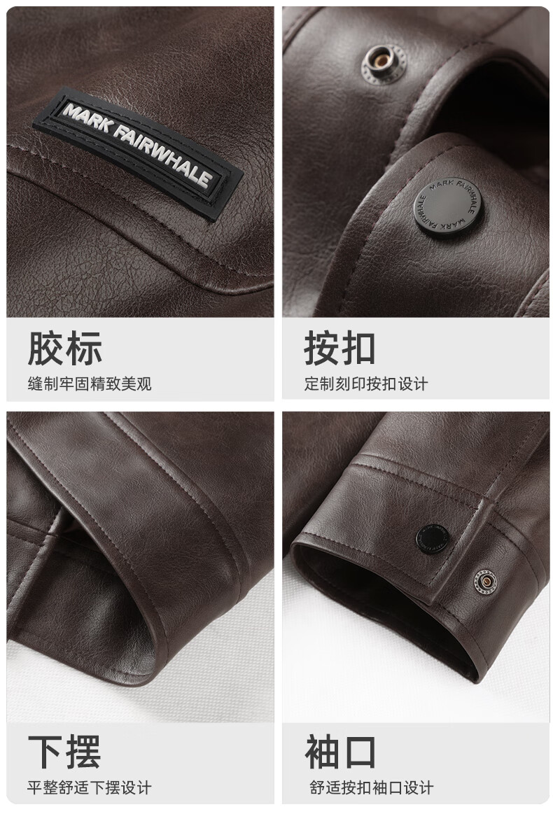 Mark Huafei American functional retro leather jacket men's 2025 autumn new windproof pu lapel jacket 1511 brown plus velvet M 170