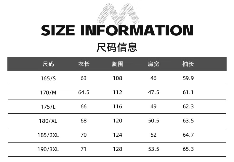 China (cm) 165 / 88-90 170 / 96-98 175 / 108-110 180 / 118-122 185 / 126-130