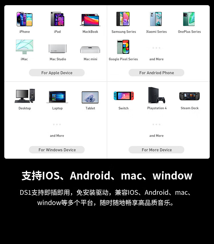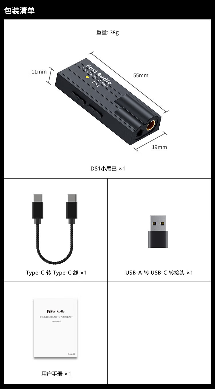 Tianyu Lianda Fosi Audio DS1 small tail decoding amp HIFI portable fever headphone mobile phone amplifier game DS1 black type-c version