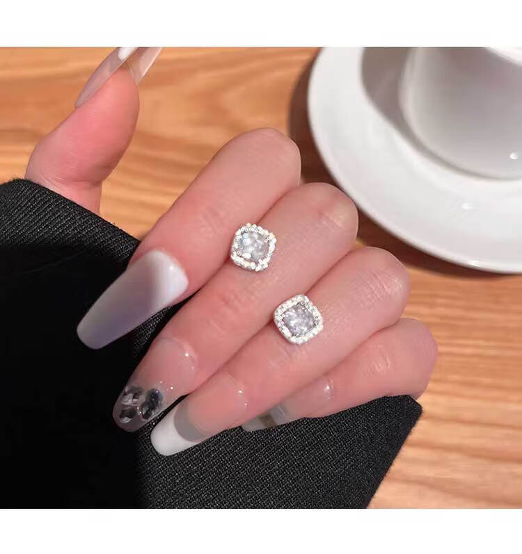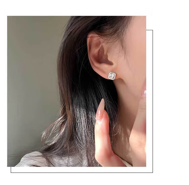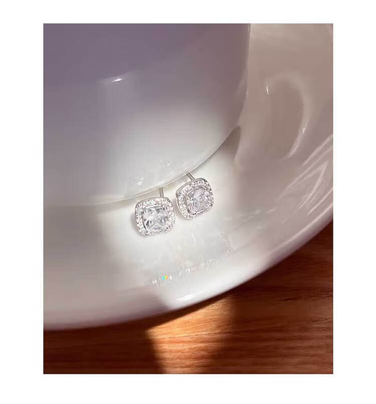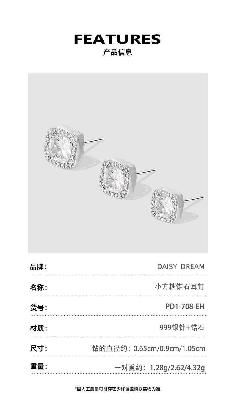 DAISY DREAMs999 Silver Needle Sugar Cube Earrings Exquisite and High-end Sensational Ear Hole Earrings Fashionable Earrings Niche Hot Style Simple Diameter About 0.9cm Small Sugar Cube 999 Silver Needle Earrings