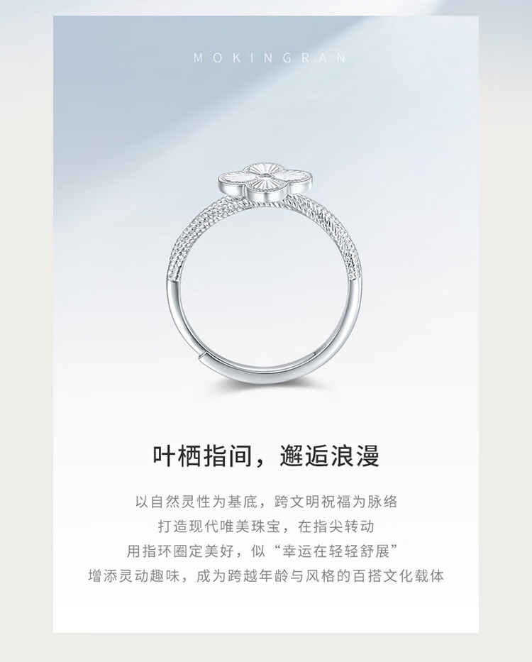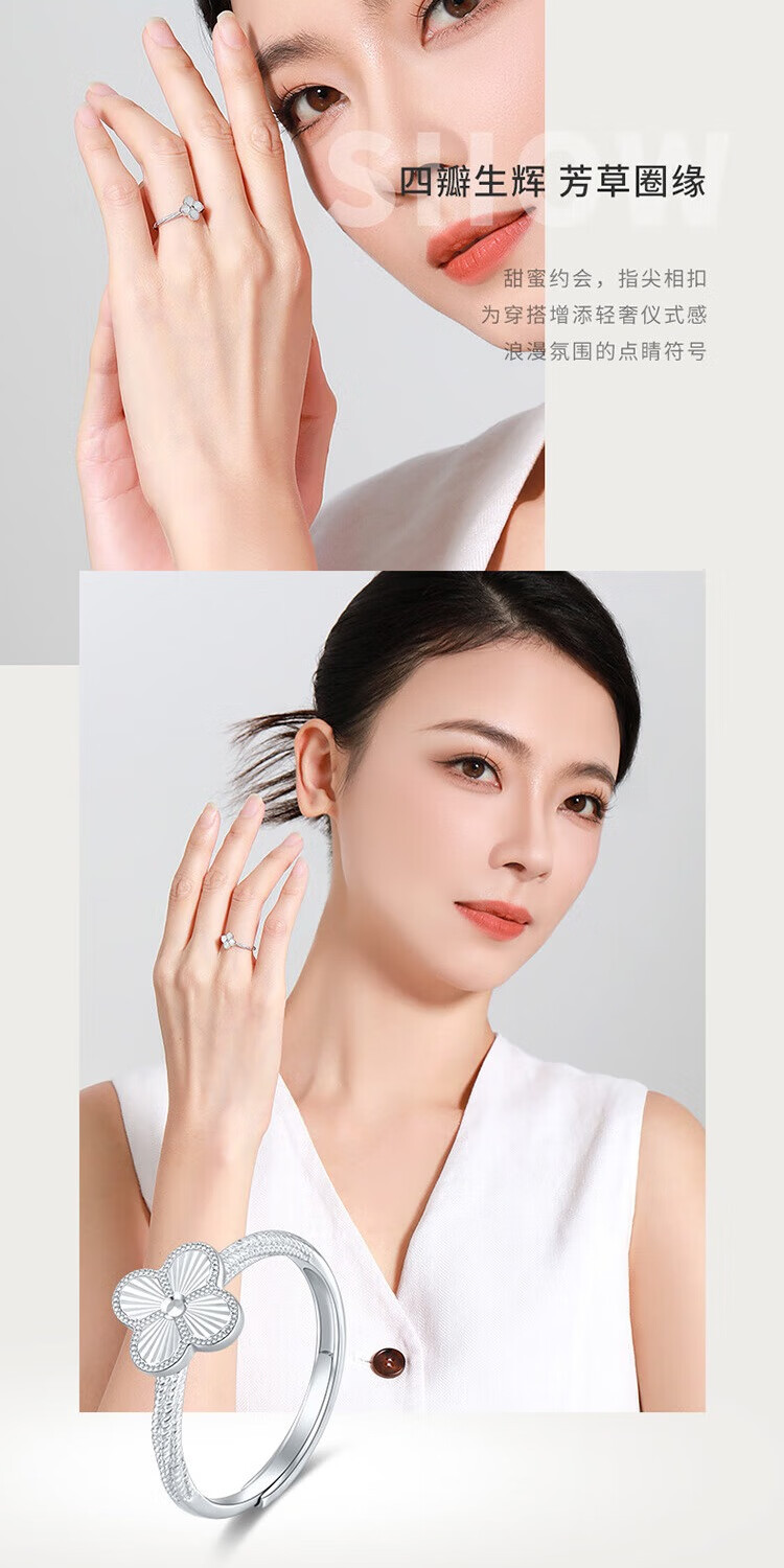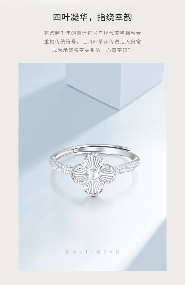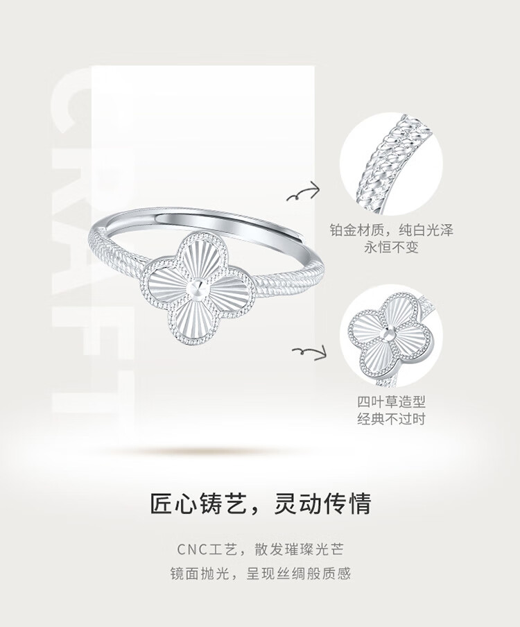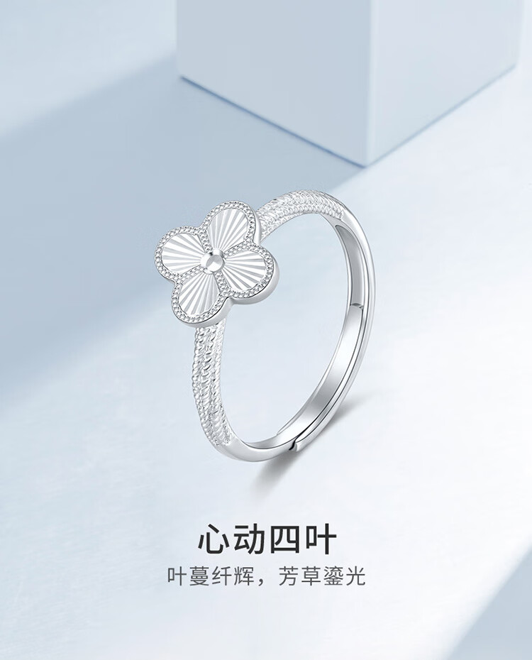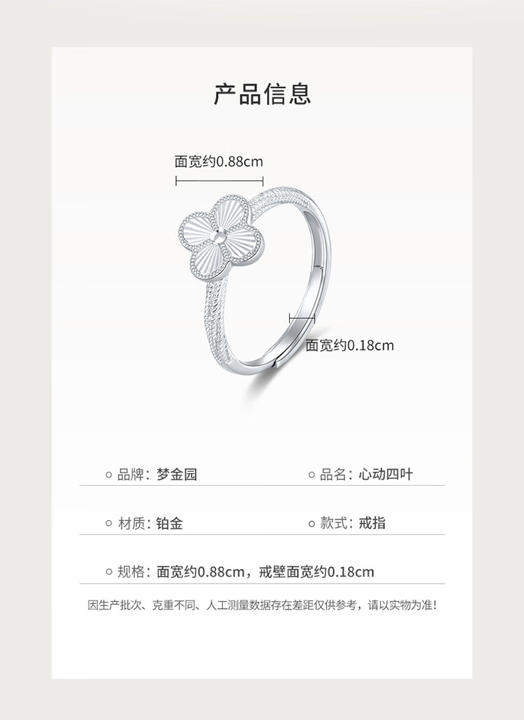 Mengjinyuan platinum ring four-leaf clover brushed sparkling live ring PT950 platinum birthday gift for girlfriend, weighing about 3.05g