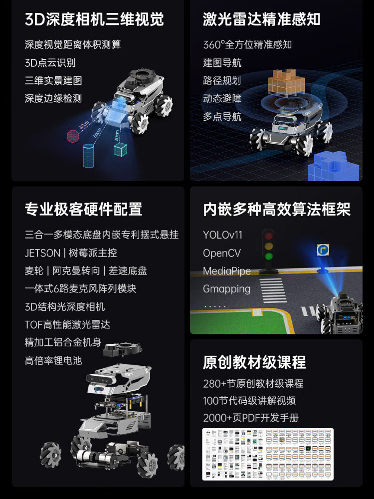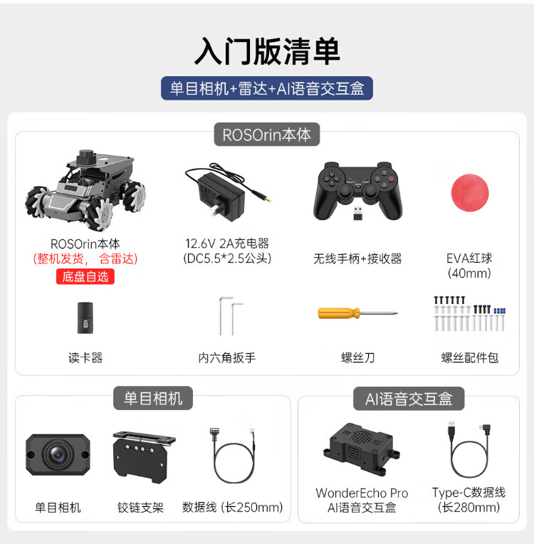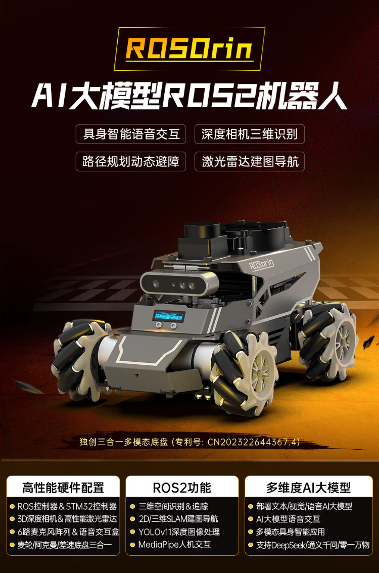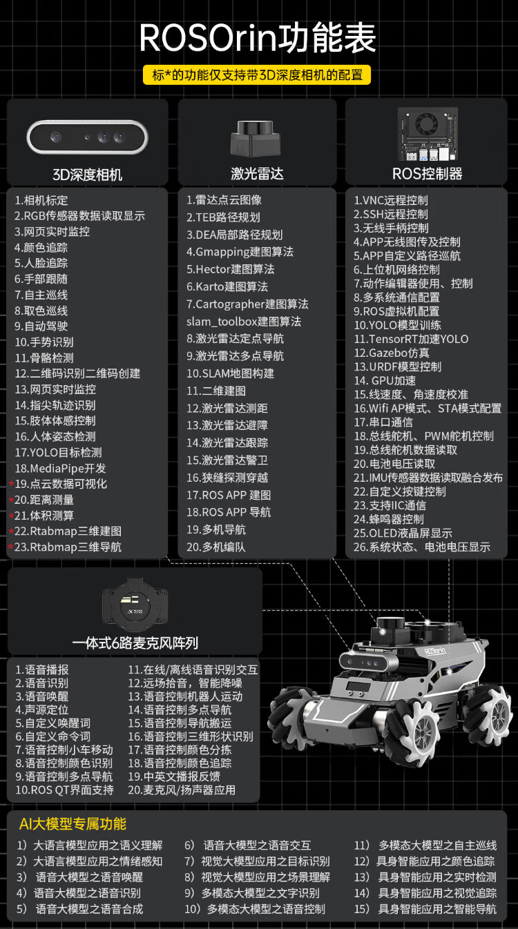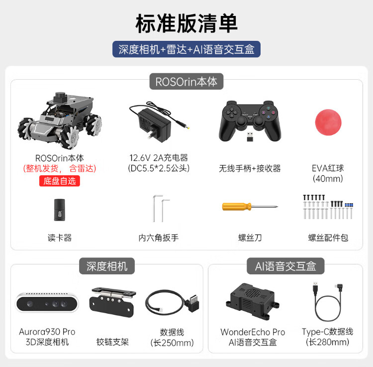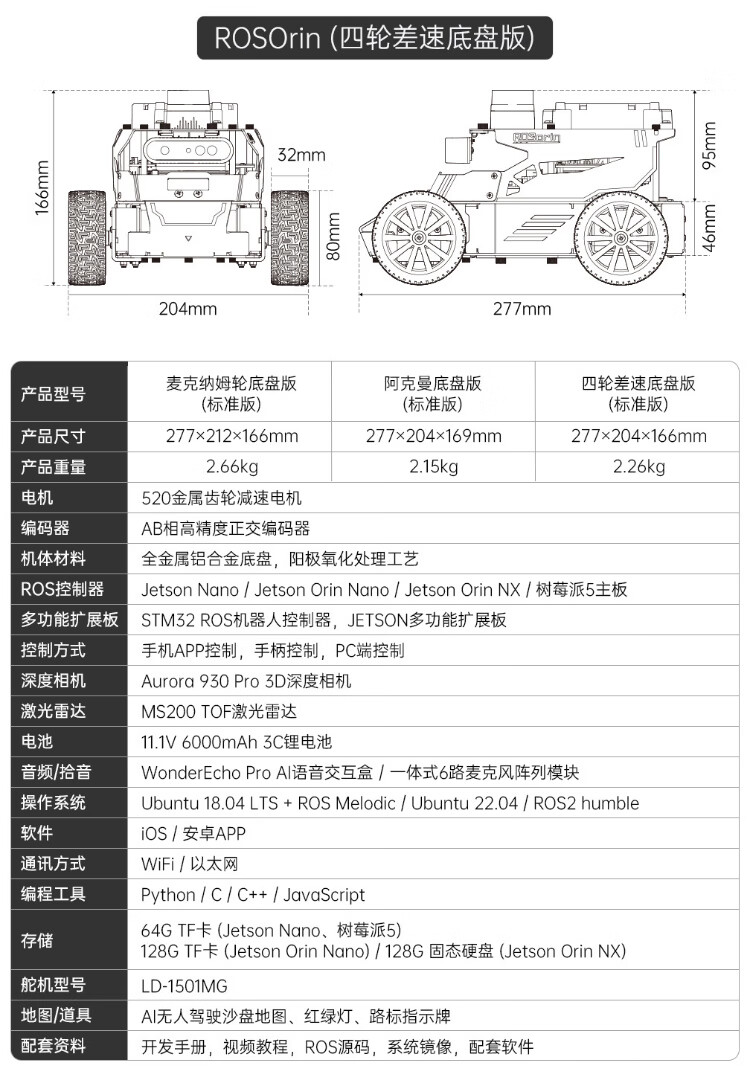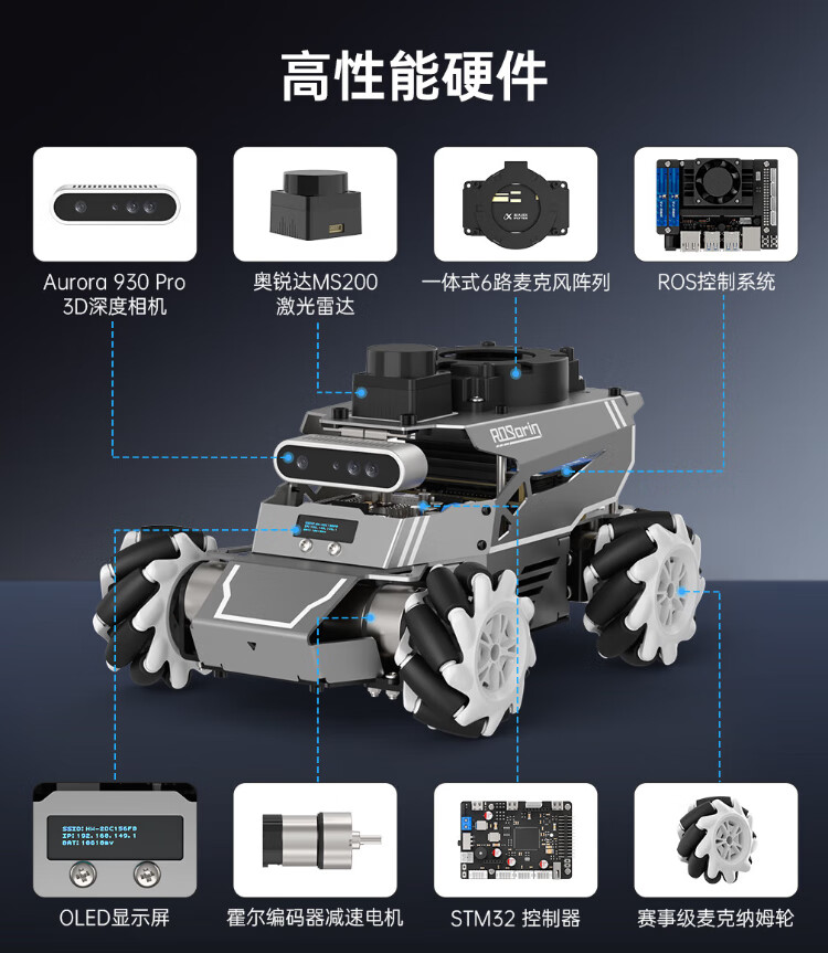 Huaner ROS2 robot ROSOrin multi-modal AI large model 3D depth vision SLAM mapping navigation voice interaction Jetson nano Raspberry Pi smart car three-in-one chassis standard version Jetson Nano (4G)