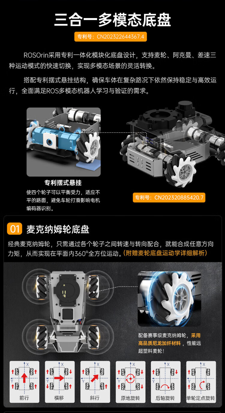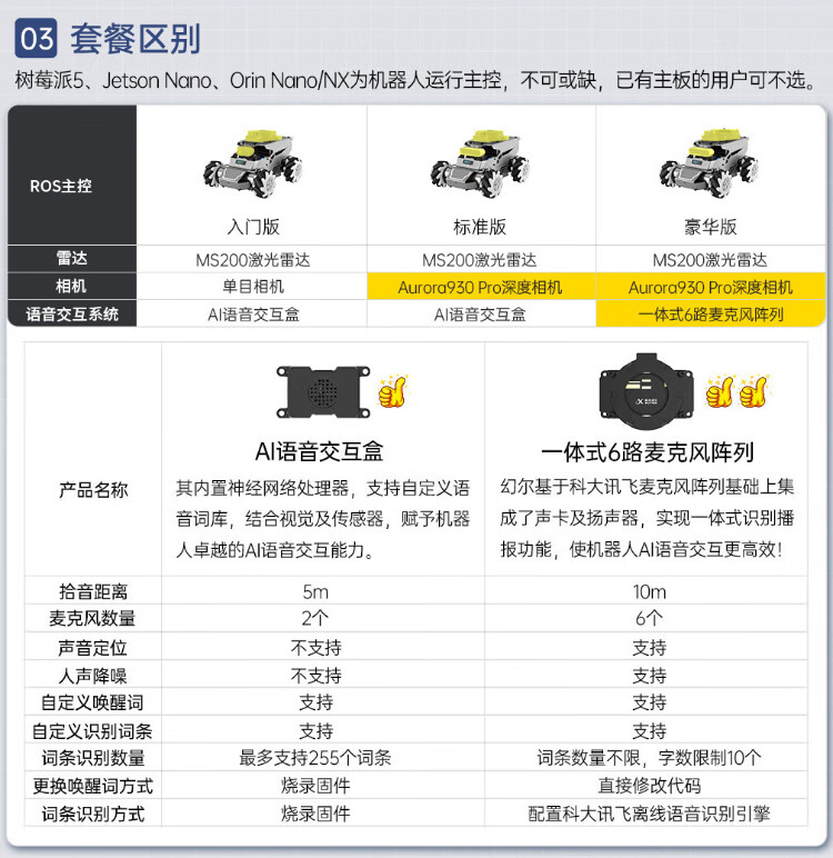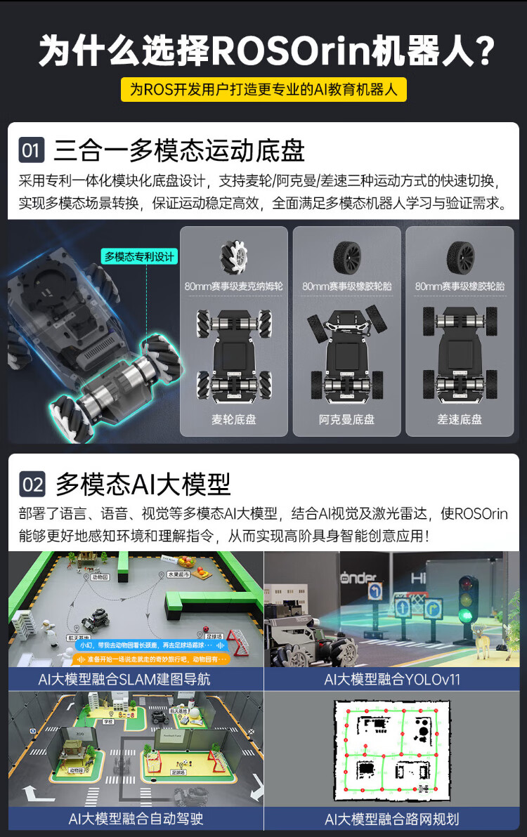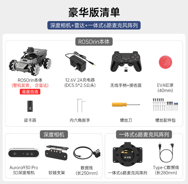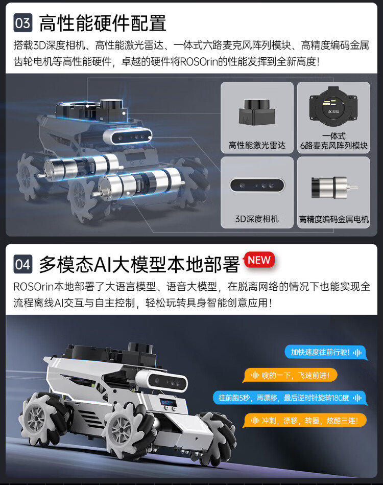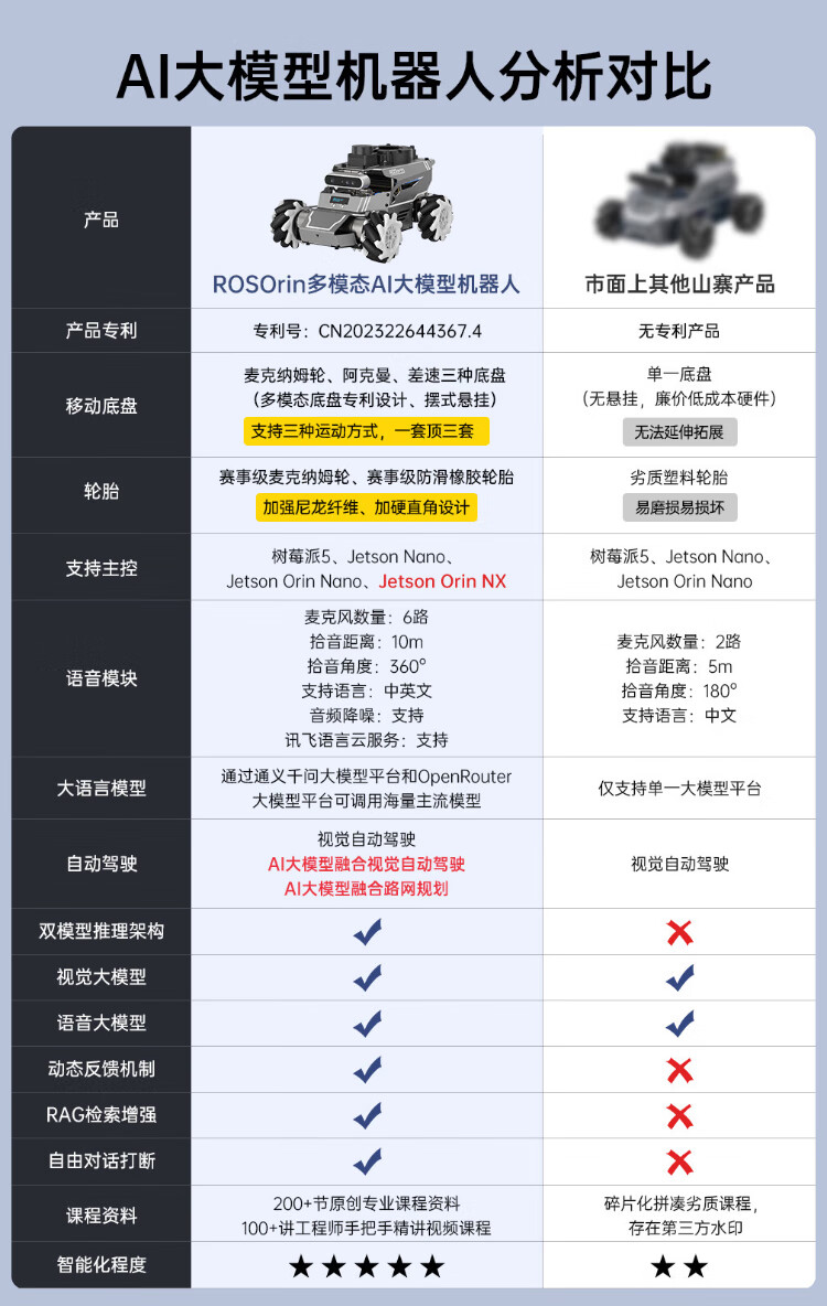 Huaner ROS2 robot ROSOrin multi-modal AI large model 3D depth vision SLAM mapping navigation voice interaction Jetson nano Raspberry Pi smart car three-in-one chassis standard version Jetson Nano (4G)