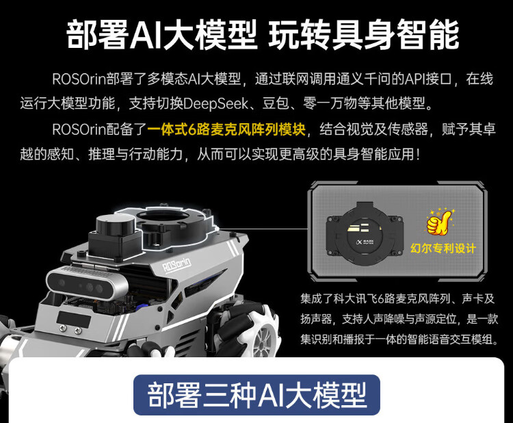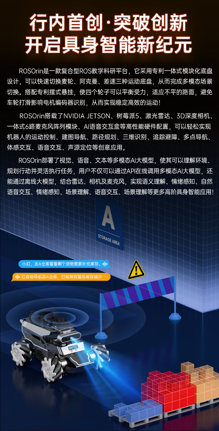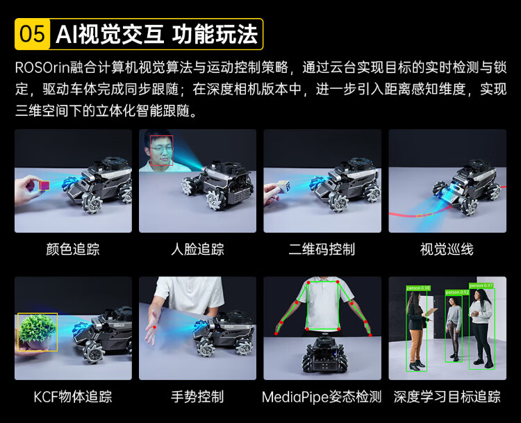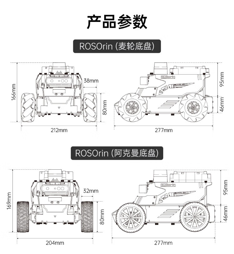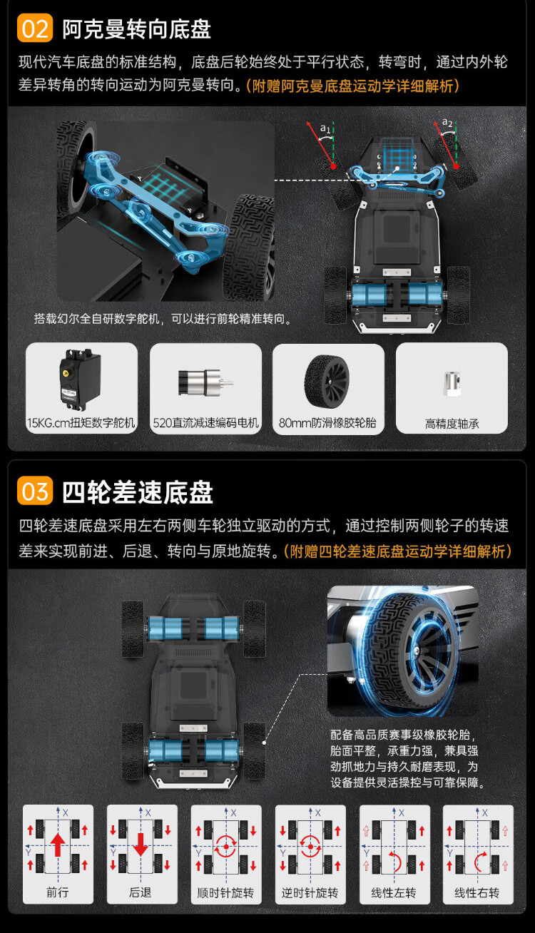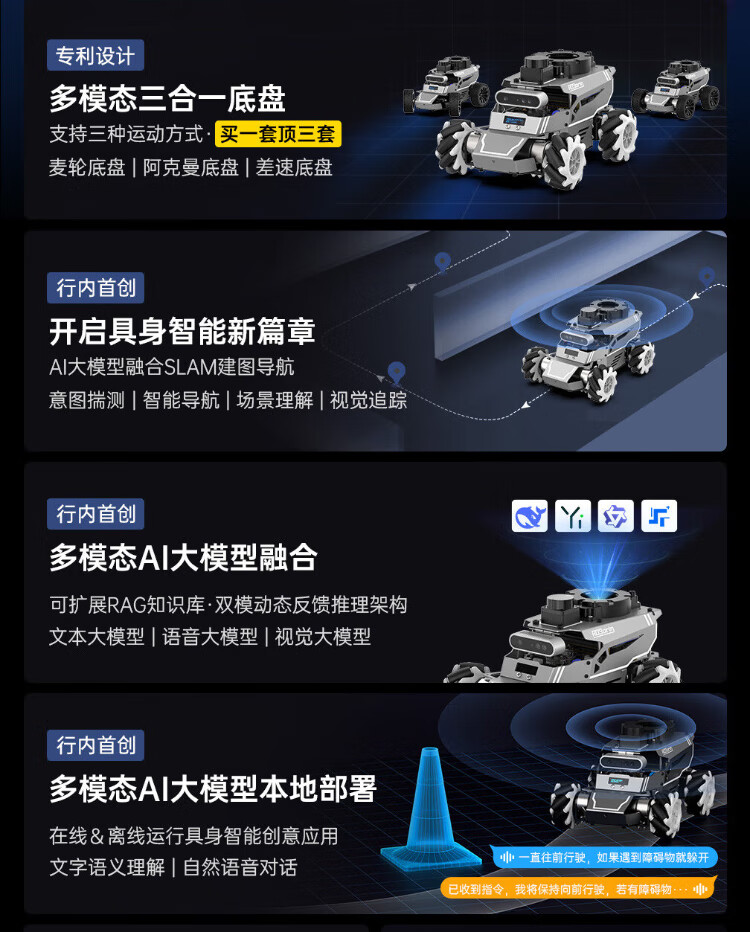 Huaner ROS2 robot ROSOrin multi-modal AI large model 3D depth vision SLAM mapping navigation voice interaction Jetson nano Raspberry Pi smart car three-in-one chassis standard version Jetson Nano (4G)