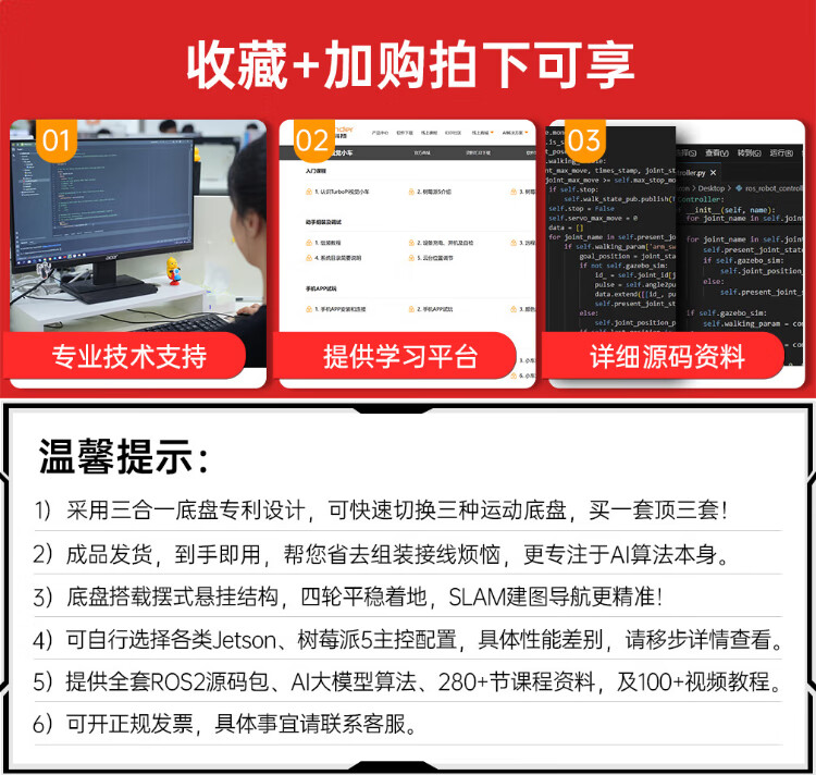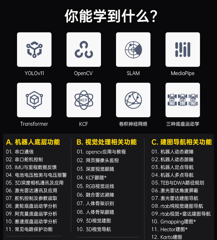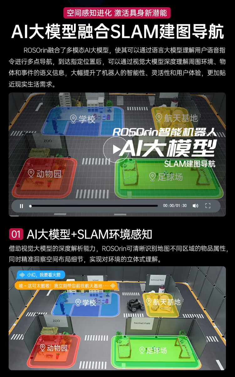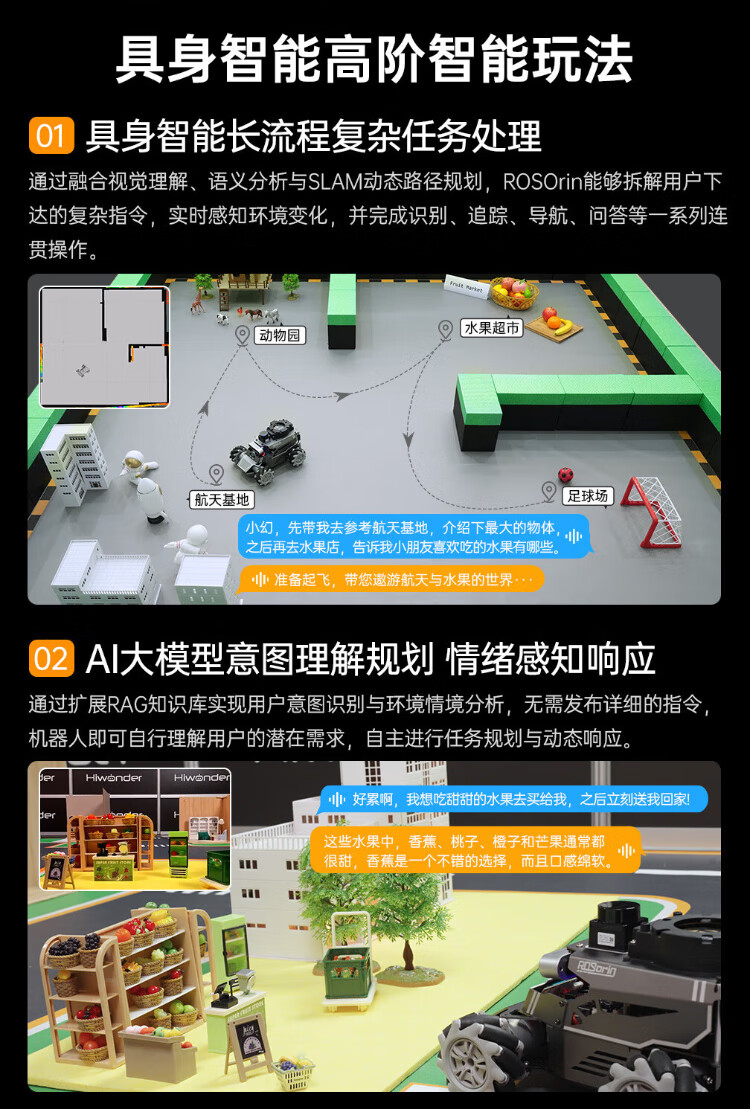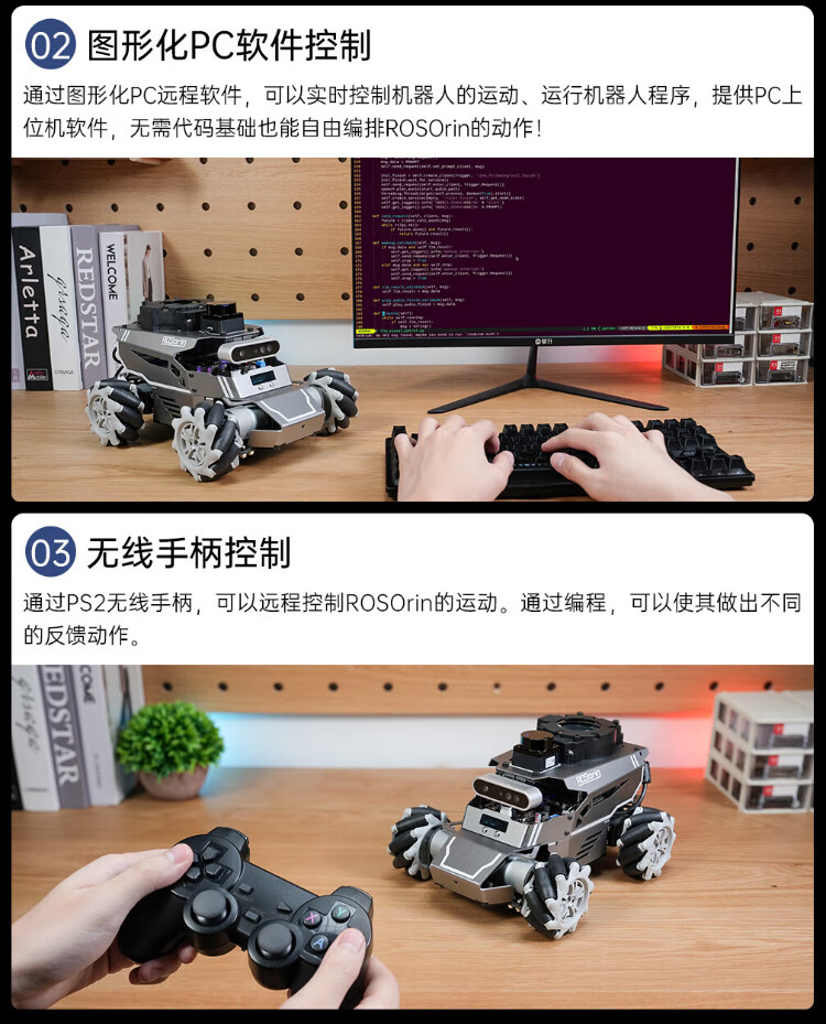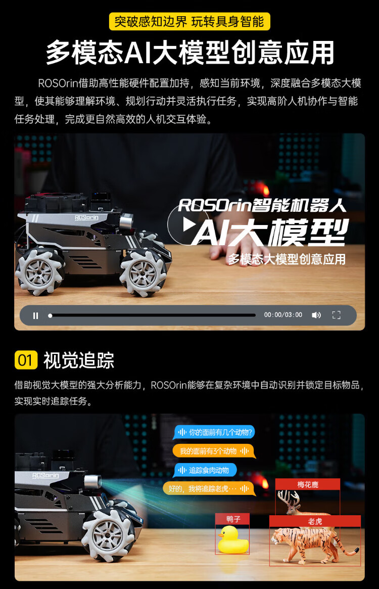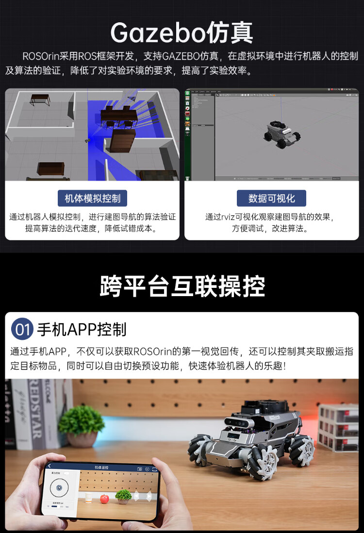 Huaner ROS2 robot ROSOrin multi-modal AI large model 3D depth vision SLAM mapping navigation voice interaction Jetson nano Raspberry Pi smart car three-in-one chassis standard version Jetson Nano (4G)