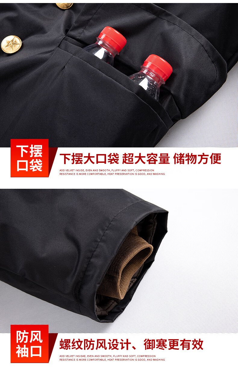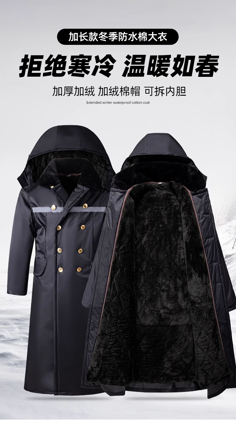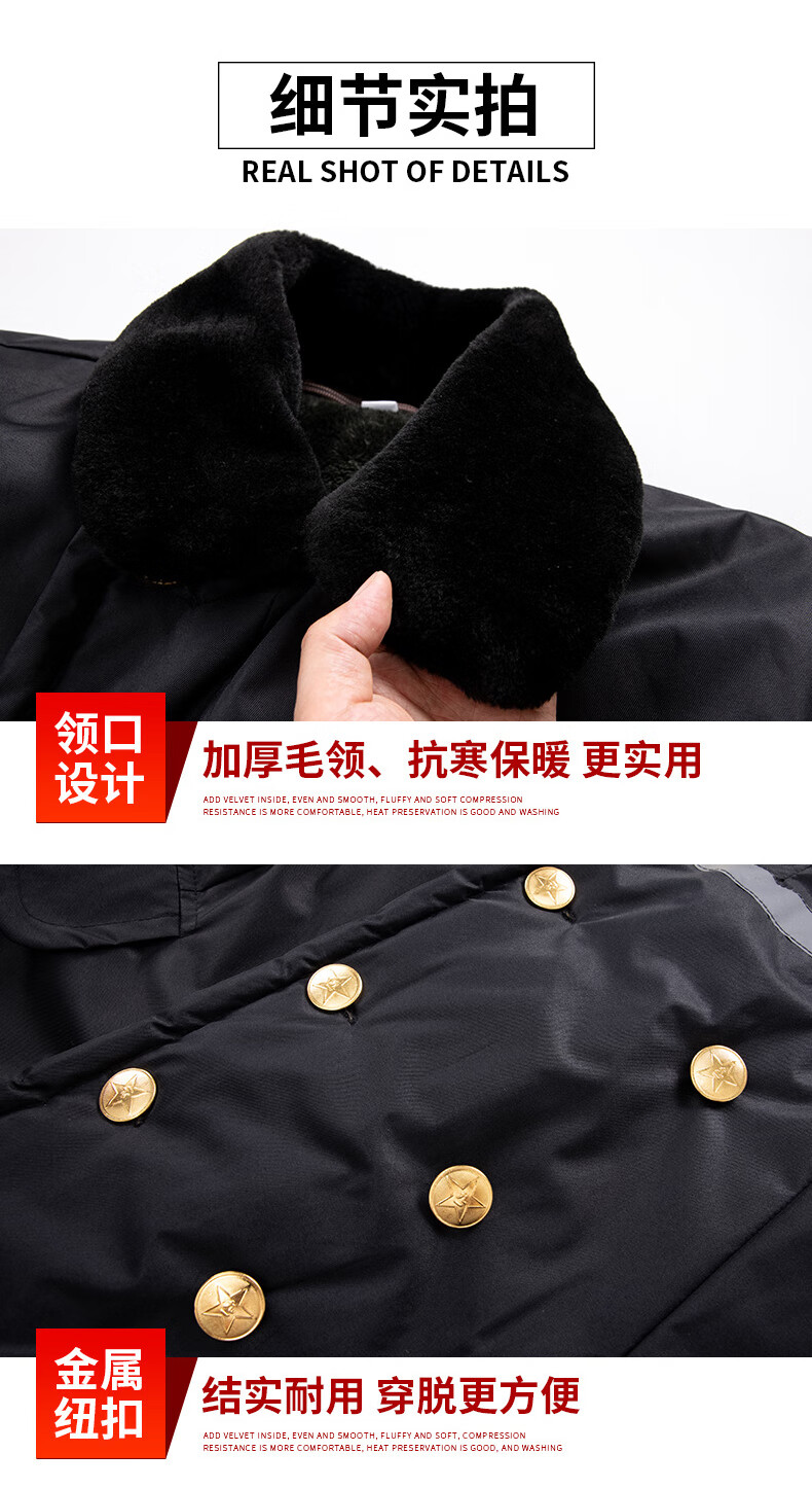 Military coat with velvet and thickening in winter Northeast minus 40 degree cold storage winter clothing cotton-padded coat for men and women Extra long extra long black liner detachable + hat + reflective strips Thickened XL small size can be worn 90-130 Jin Jin equals 0.5 kg