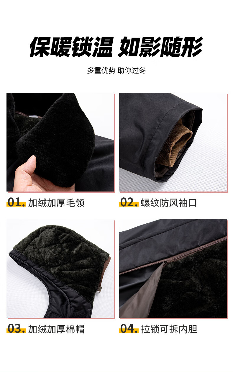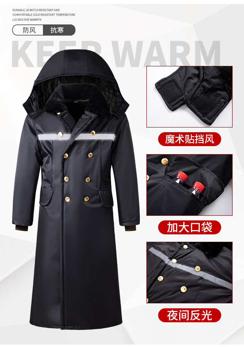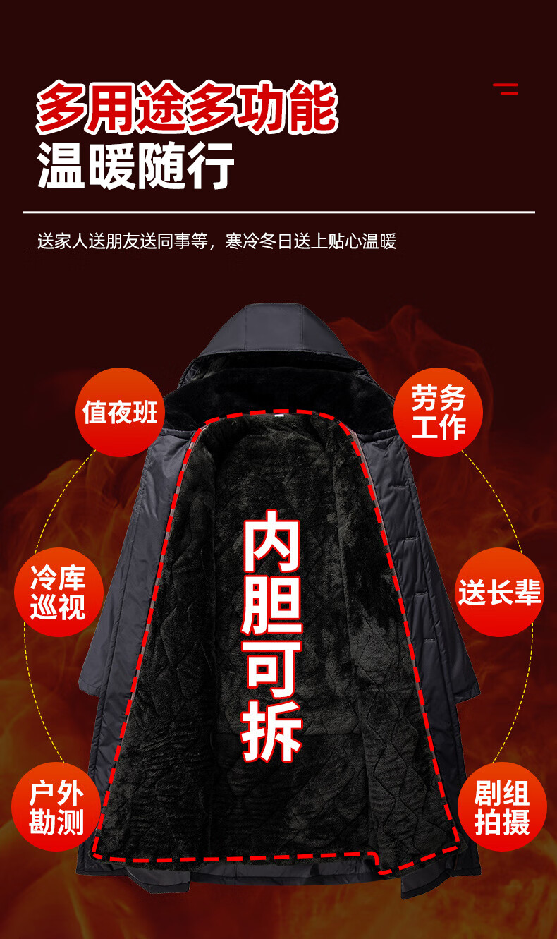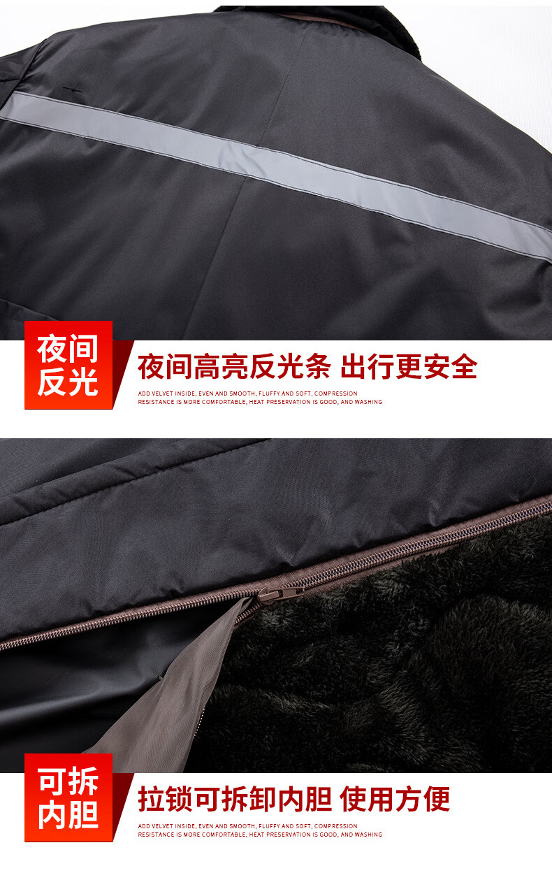Military coat with velvet and thickening in winter Northeast minus 40 degree cold storage winter clothing cotton-padded coat for men and women Extra long extra long black liner detachable + hat + reflective strips Thickened XL small size can be worn 90-130 Jin Jin equals 0.5 kg