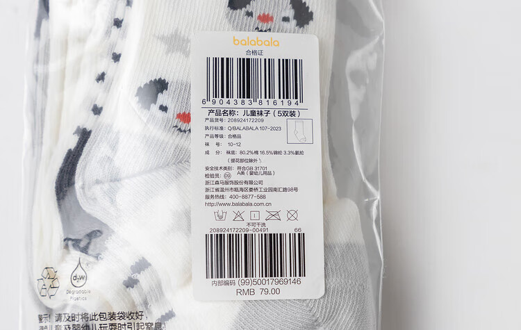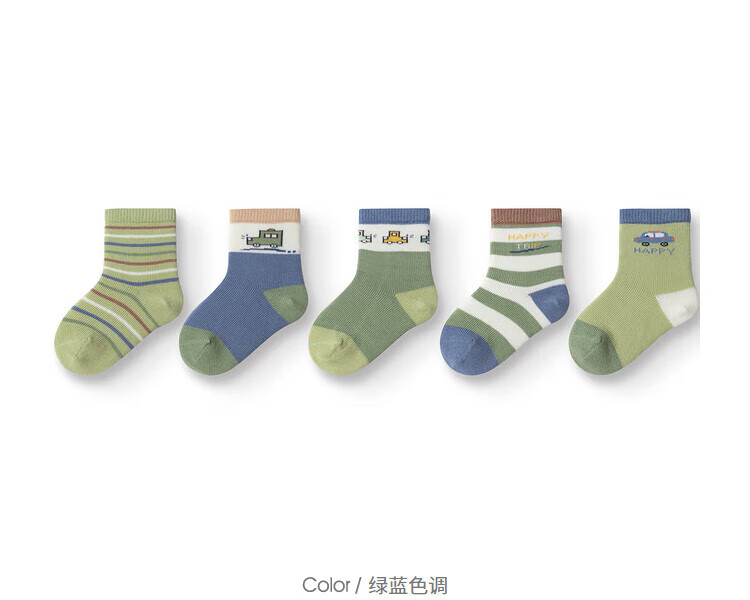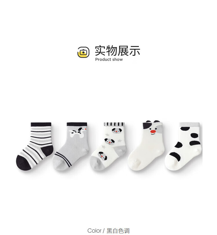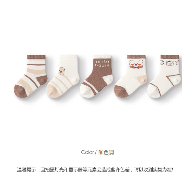Balabala baby socks cotton autumn new style boys and girls children's newborn children's socks cute short socks five pairs of coffee white tone 00351_209925172214 1-3 years old
