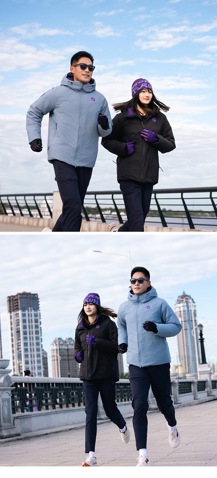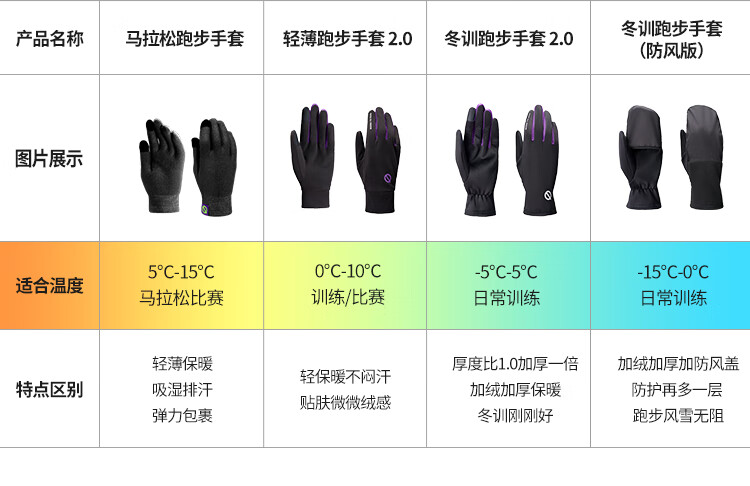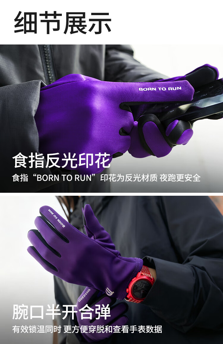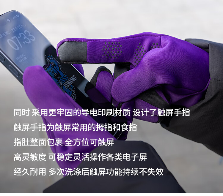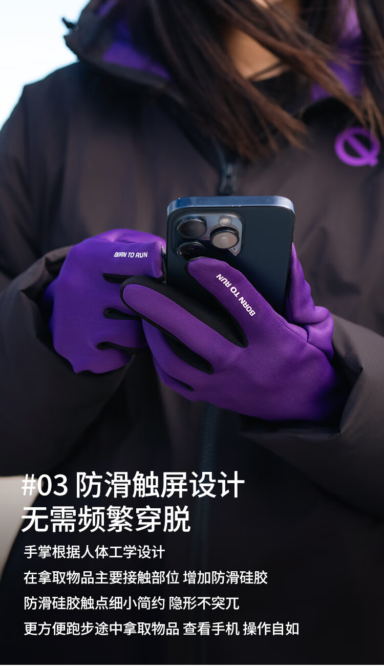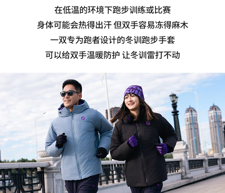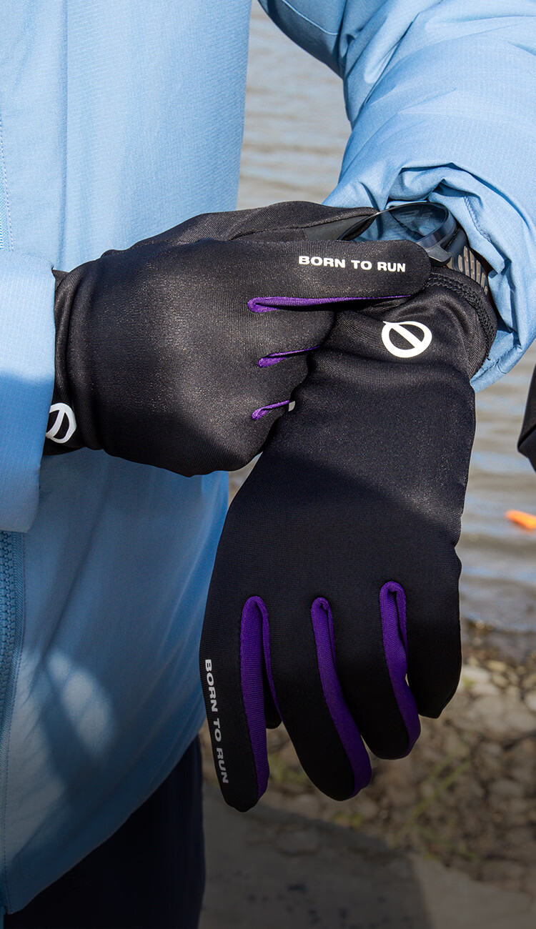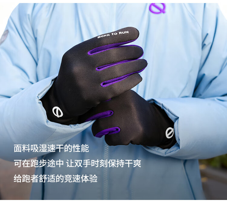 Qinggong (QINKUNG) New Product Winter Training Running Gloves 2.0 Marathon Professional Autumn and Winter Outdoor Running Gloves Black and Purple M