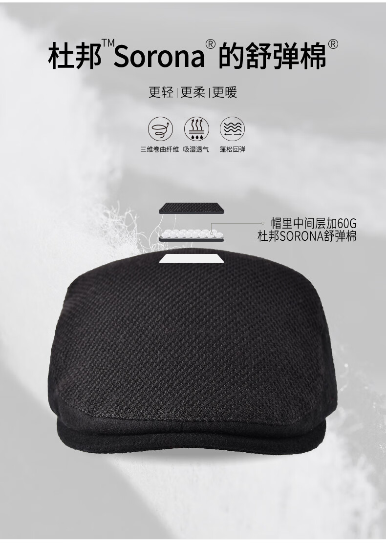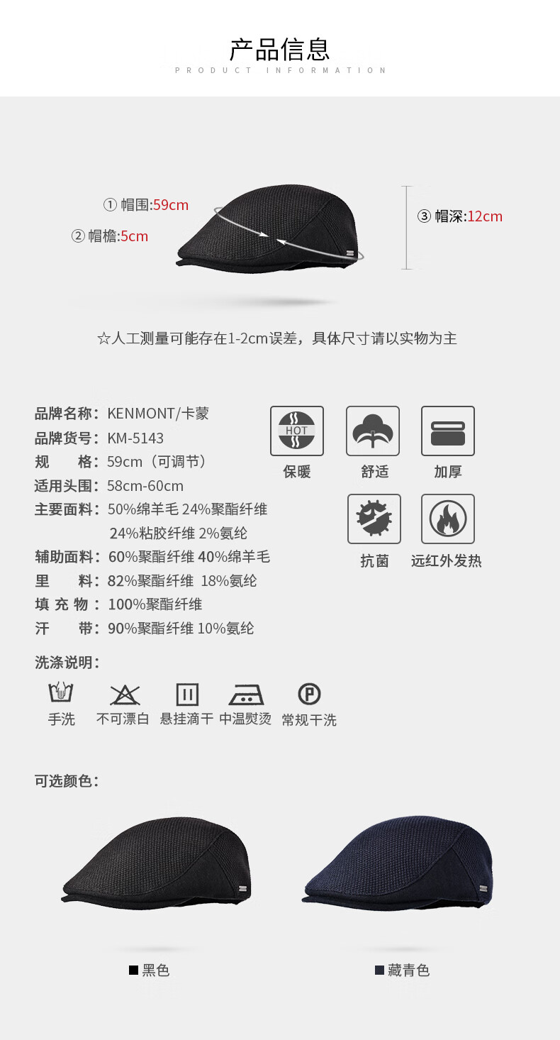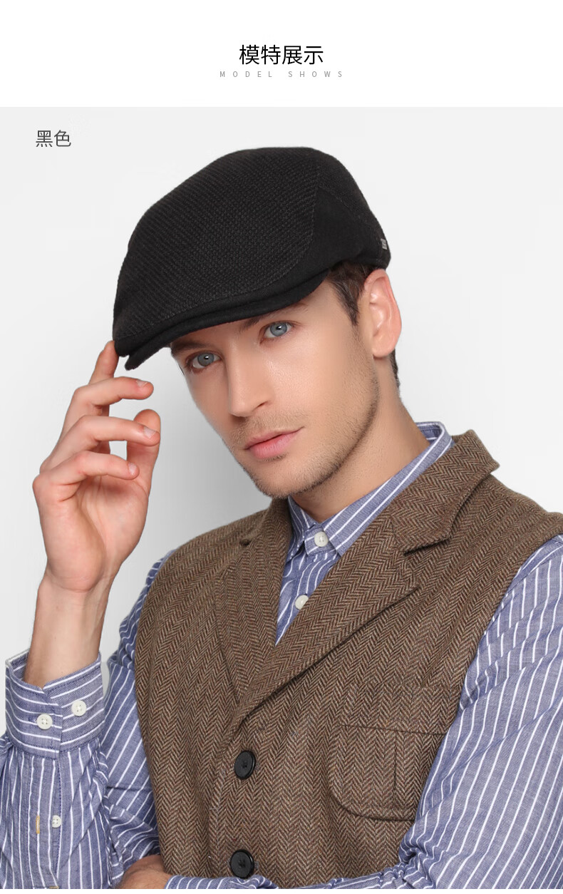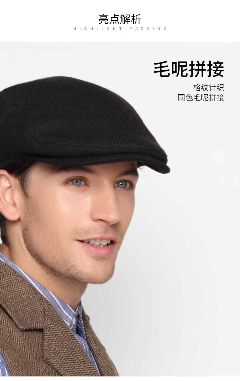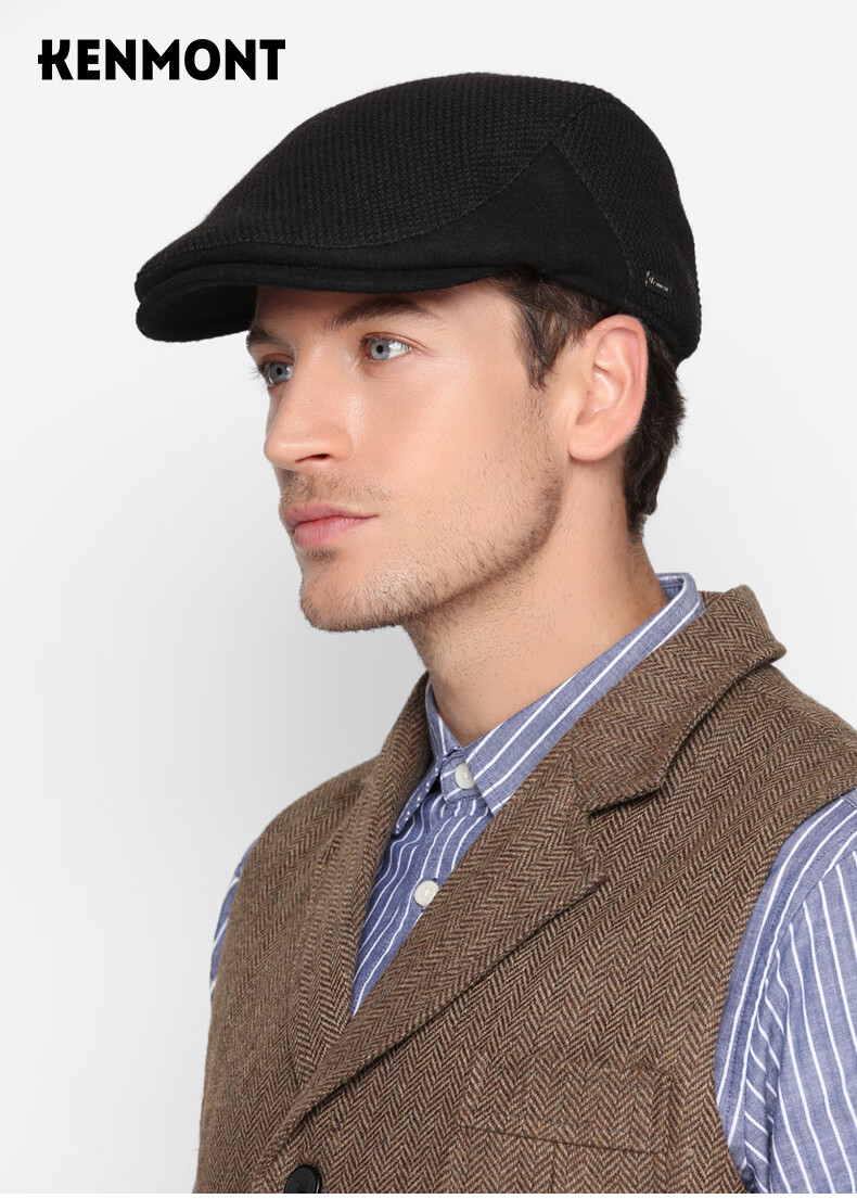 Kenmont comfortable thickened warm retro forward peaked cap men's autumn and winter color plaid woolen beret black M 59c (adjustable)