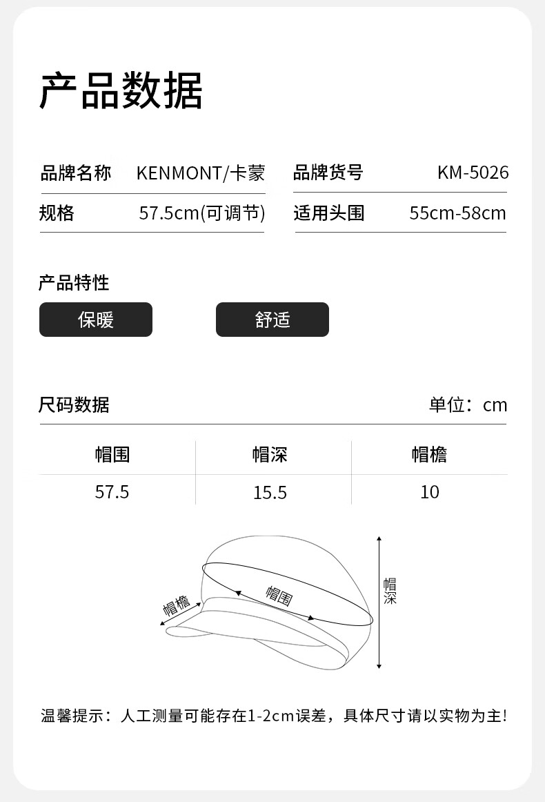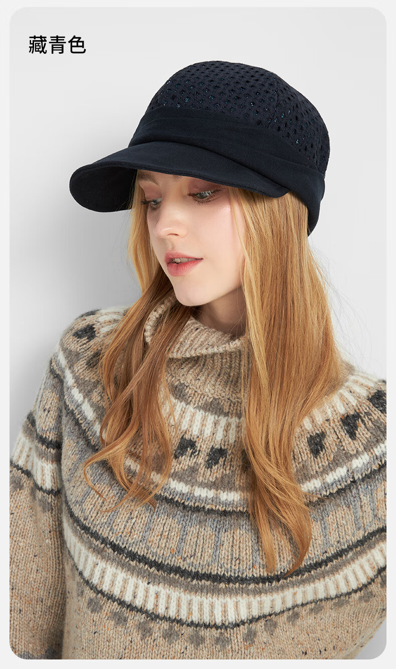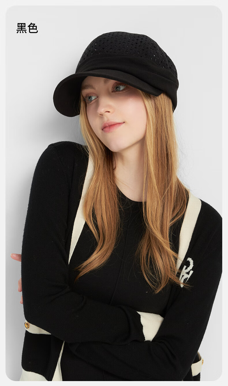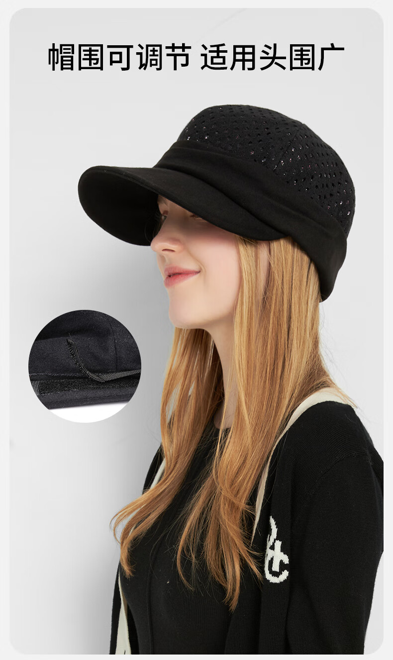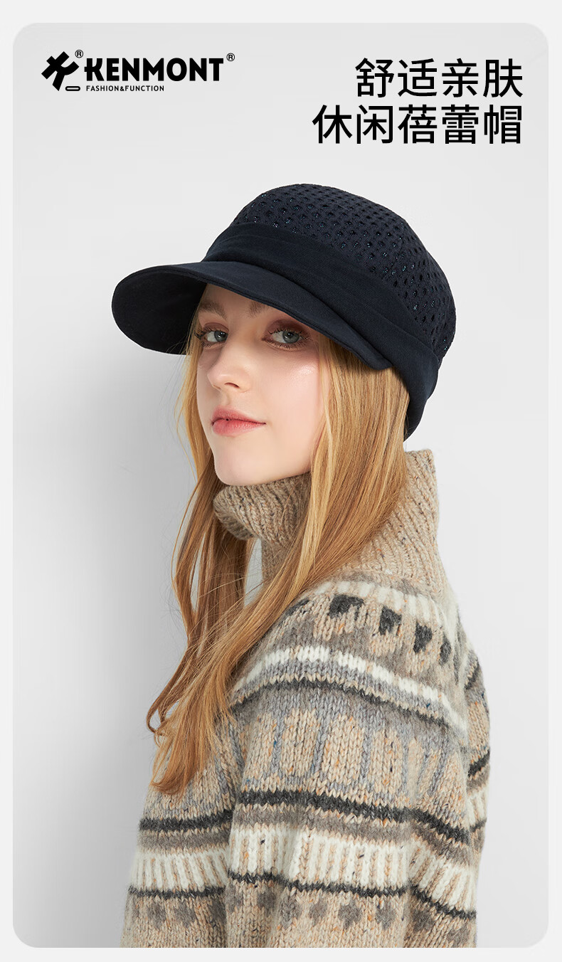 Kenmont autumn and winter lace hollow double-layer cotton upgraded duck beret female British fashion new painter hat black M suitable for head circumference_55c-58cm (adjustable)