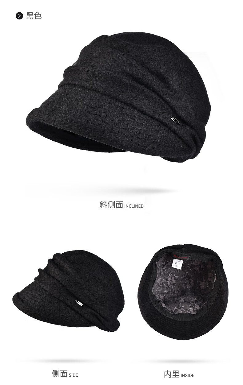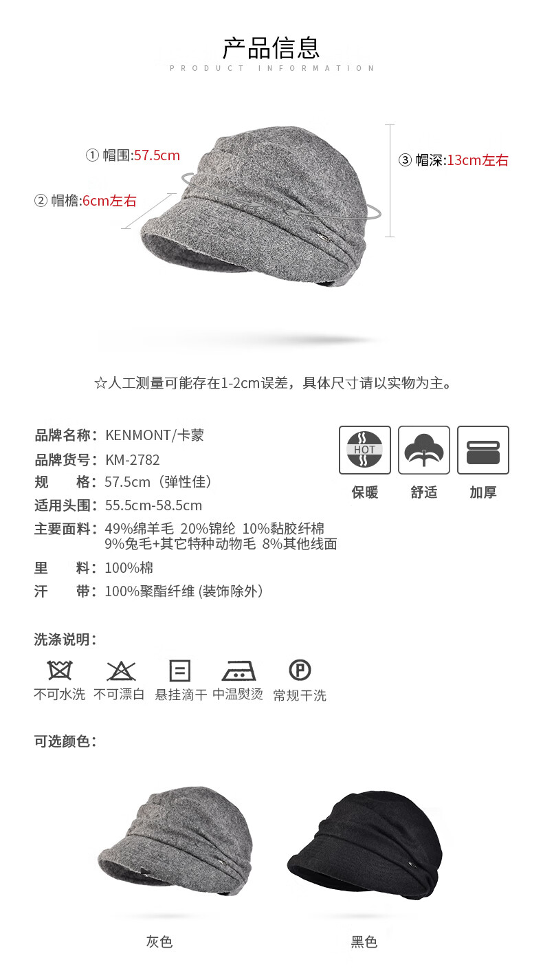 Kenmont Autumn and Winter British Retro Woolen Beret Women's Warm Wool Hat Korean Style Trendy Color Versatile Baotou Hat Black M 57.5c (Adjustable)