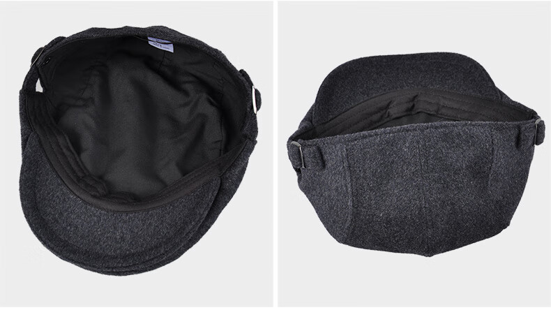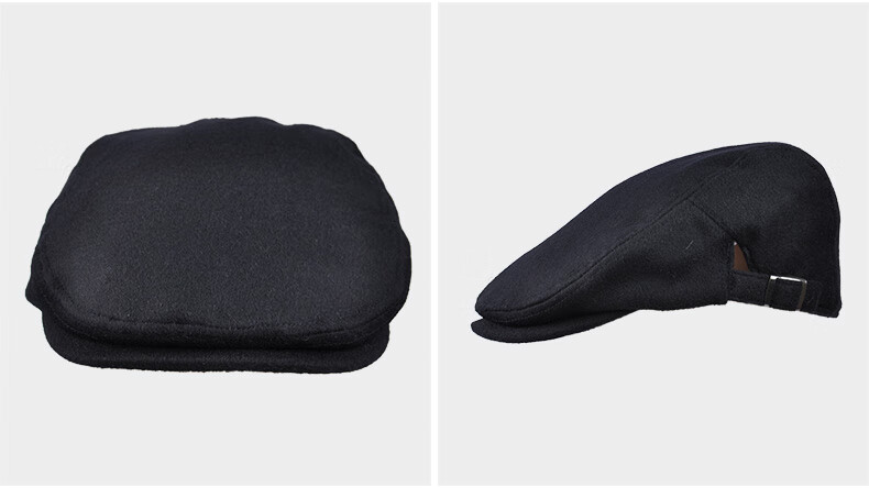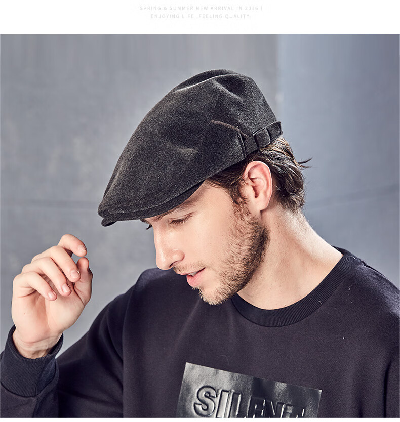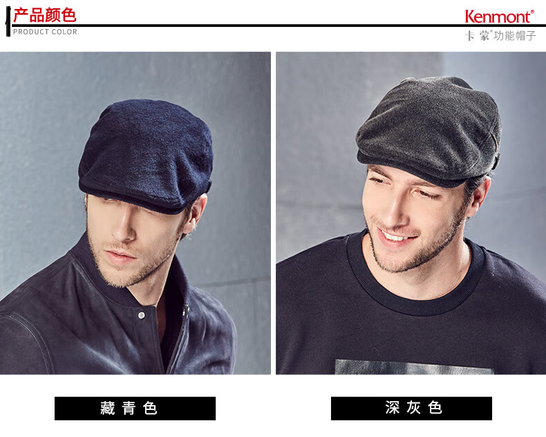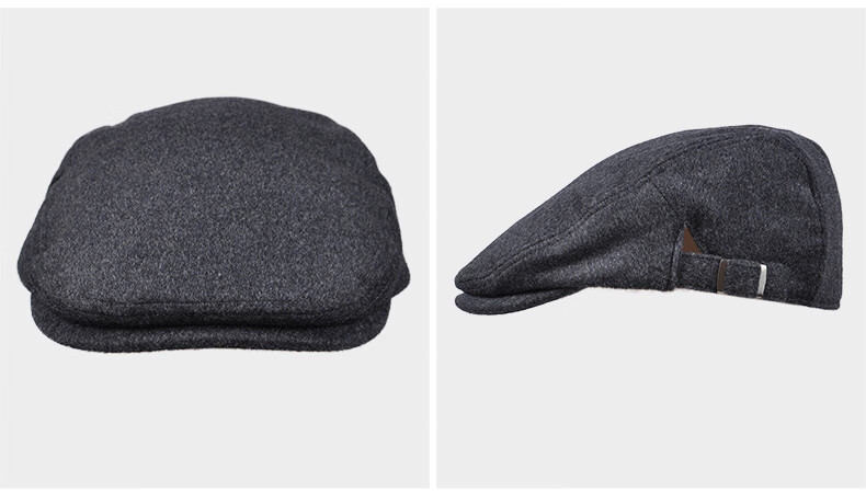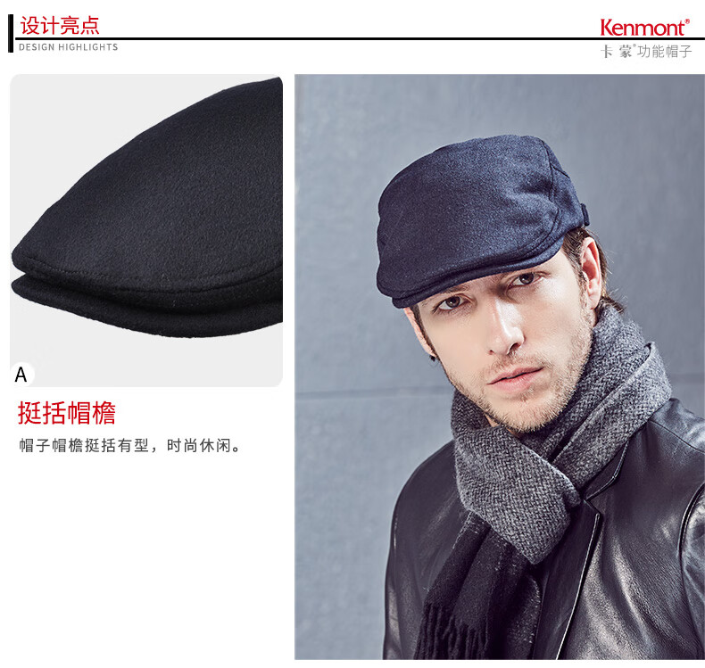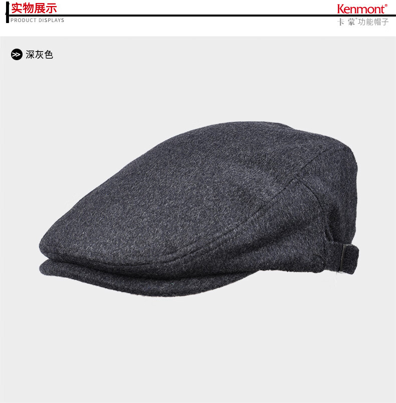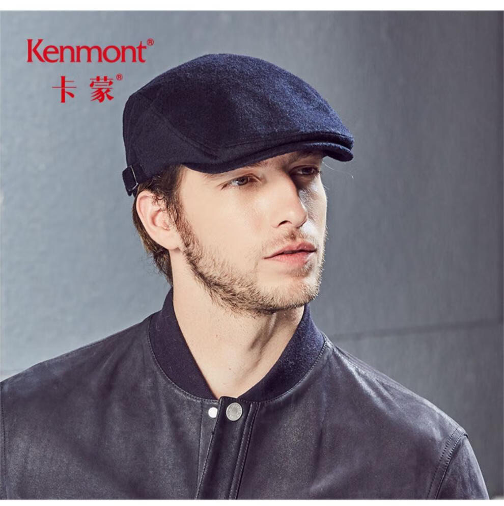 Kenmont hat men's winter peaked cap woolen British fashion trend warm autumn and winter classic retro beret black gray M adjustable (58.5c)
