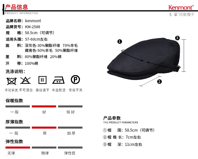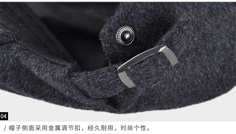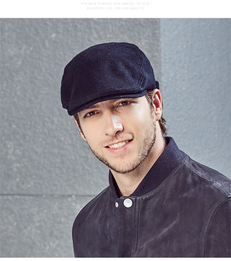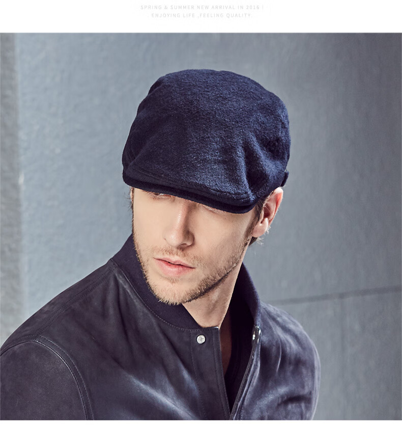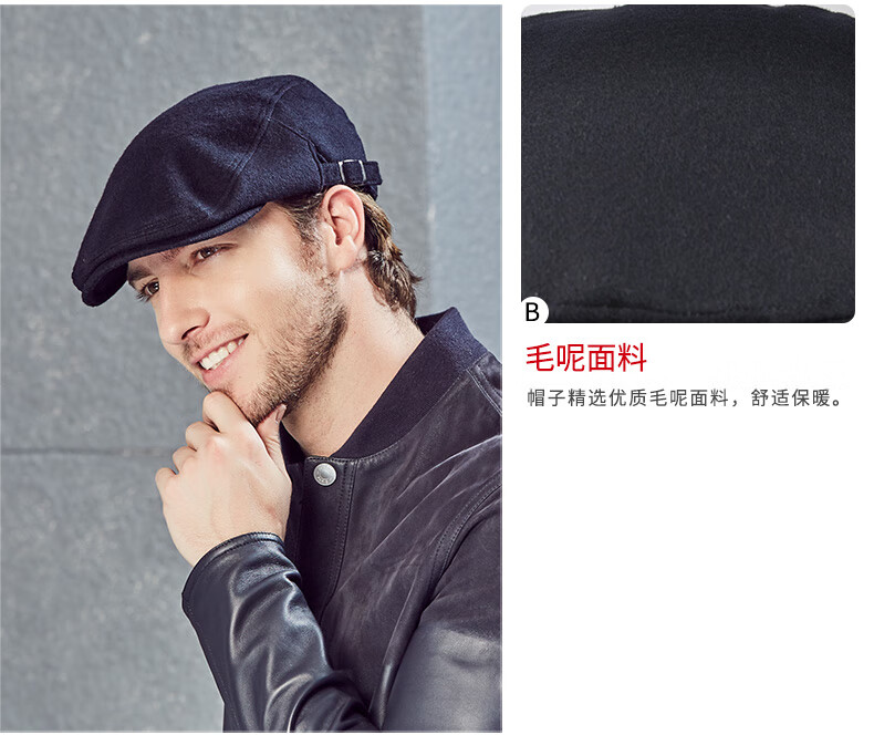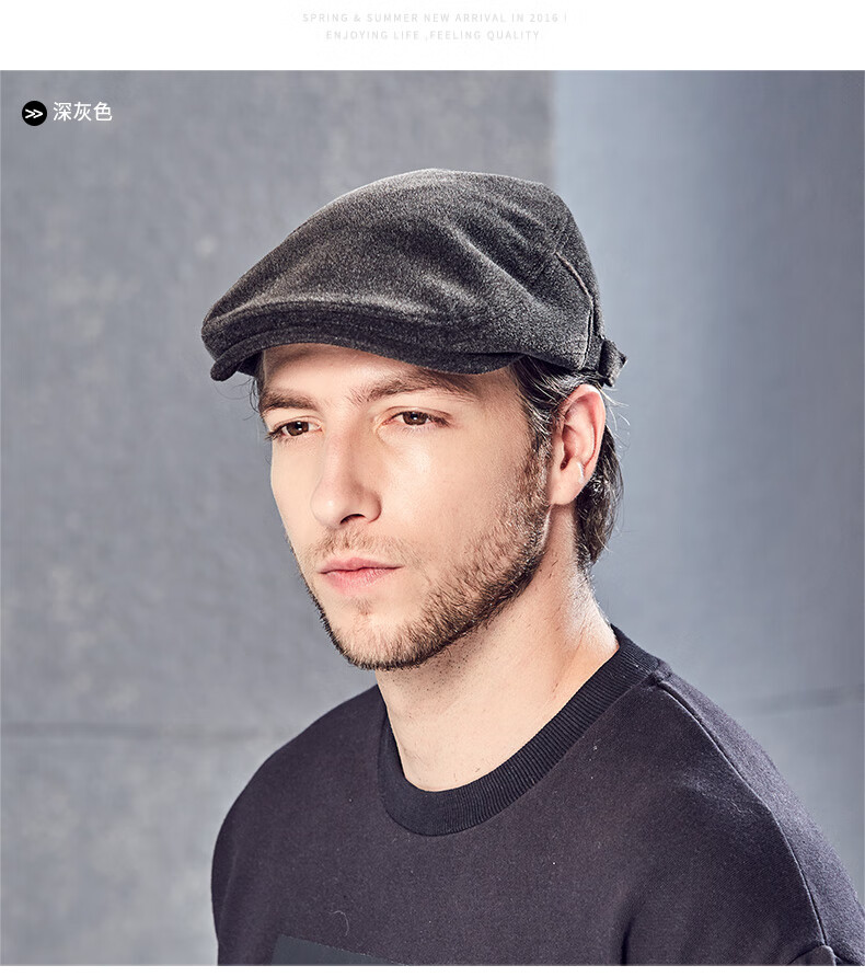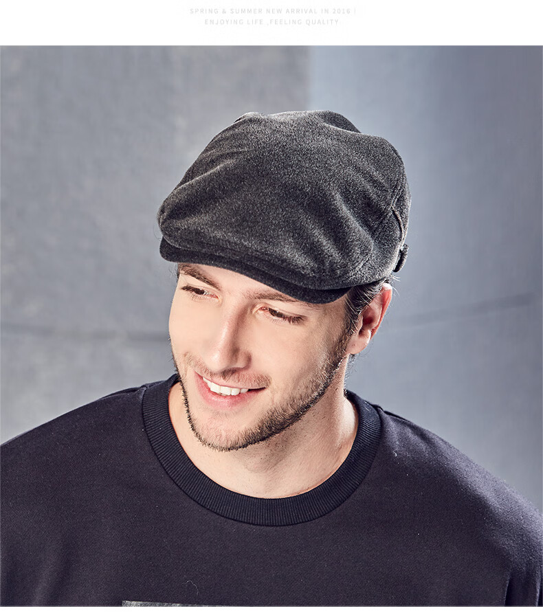 Kenmont hat men's winter peaked cap woolen British fashion trend warm autumn and winter classic retro beret black gray M adjustable (58.5c)
