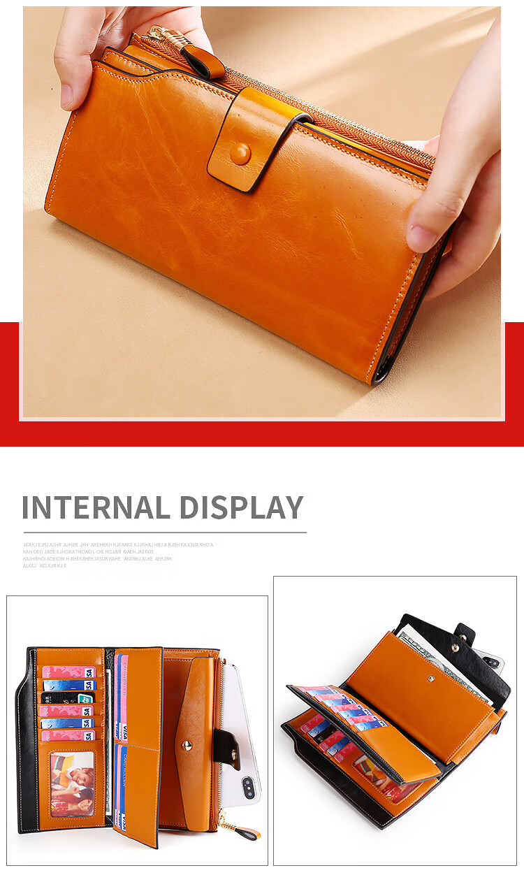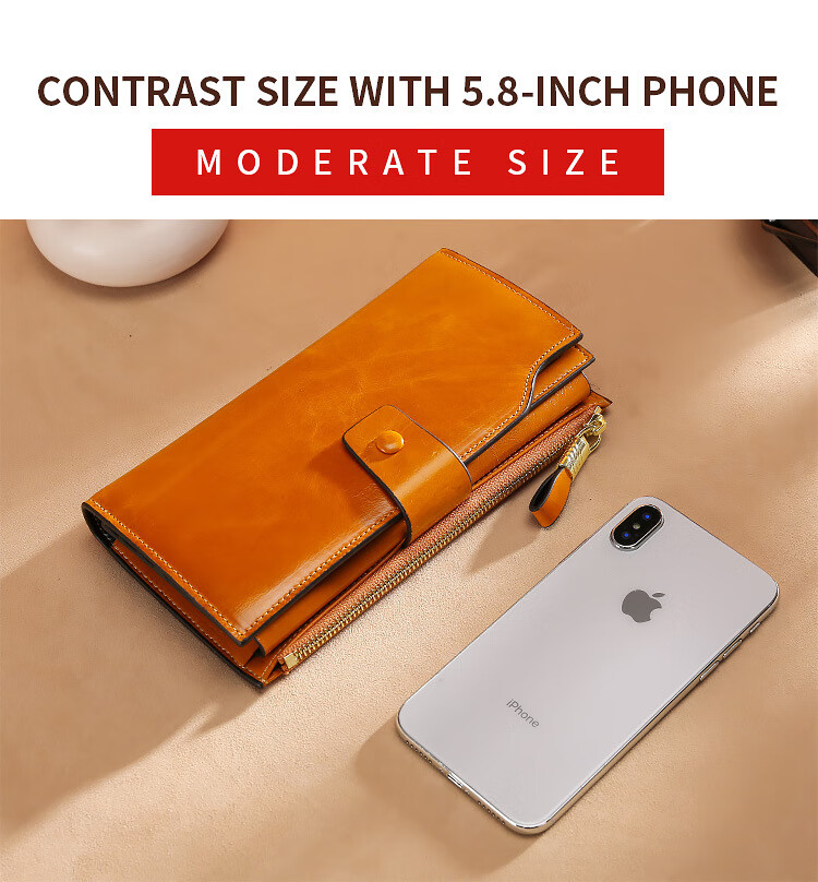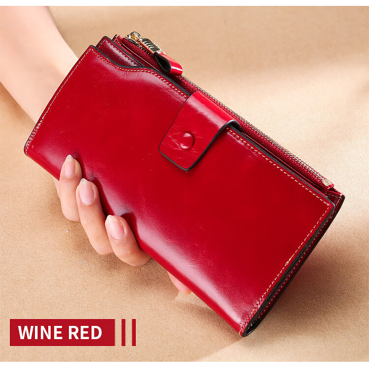 Scarecrow Light Luxury Leather Wallet Women's Long Wallet RFID Anti-theft Brushed Oil Wax Leather Multifunctional Wallet Clutch Girlfriend Wife Mom Mother Gift Wine Red