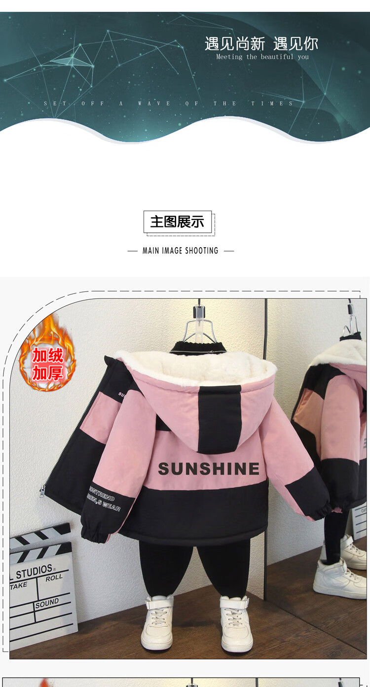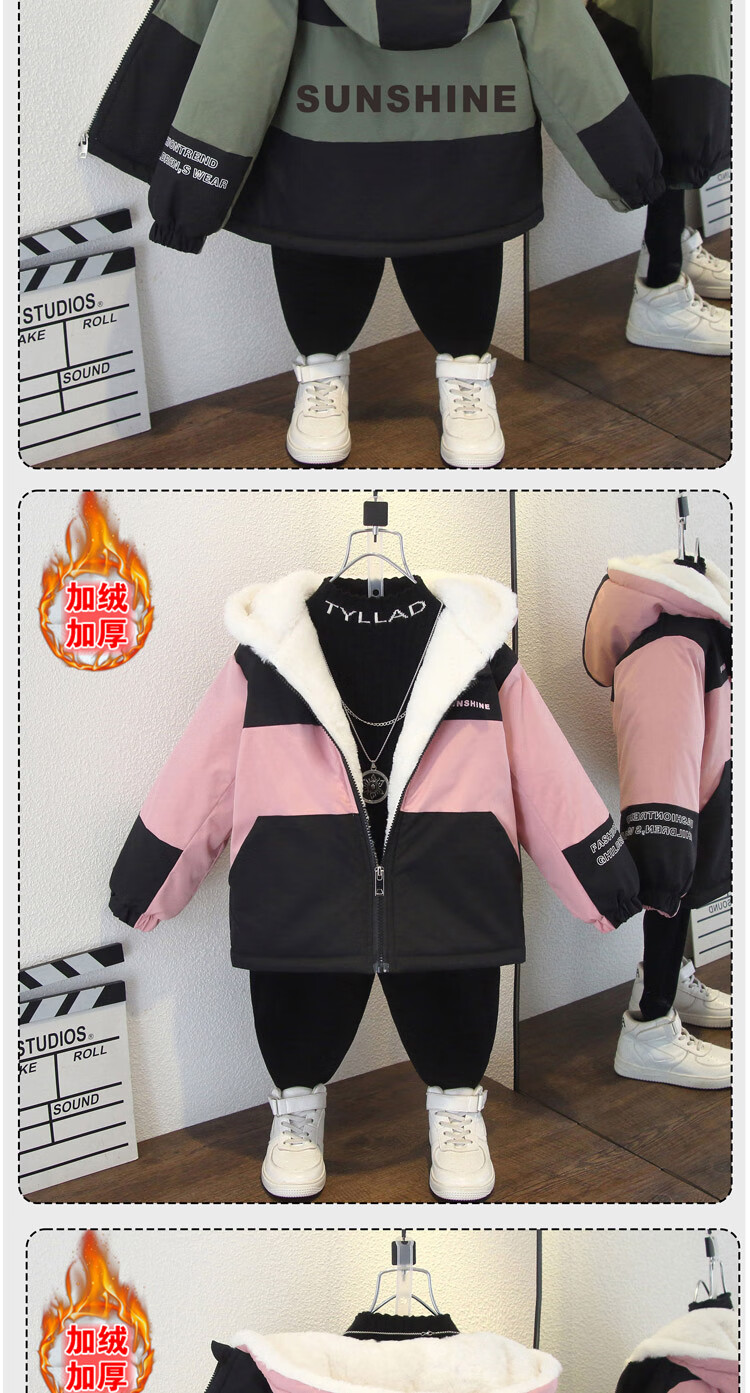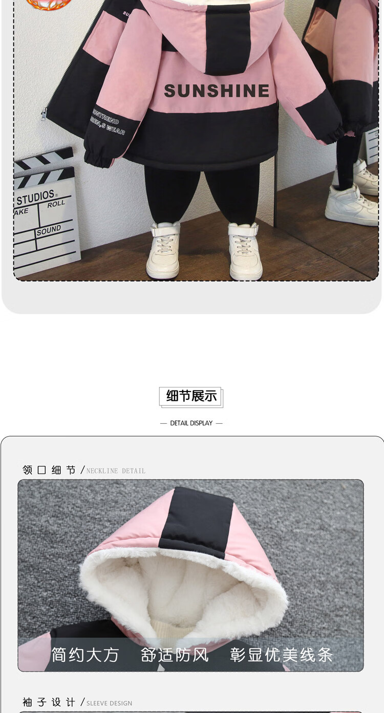 G.DUCKKIDS boys winter coat warm velvet hooded jacket girls autumn and winter Korean letter print thickened loose cotton coat back diagonal zipper velvet jacket black 100 cm suitable for 90-100cm age 3-4 years old