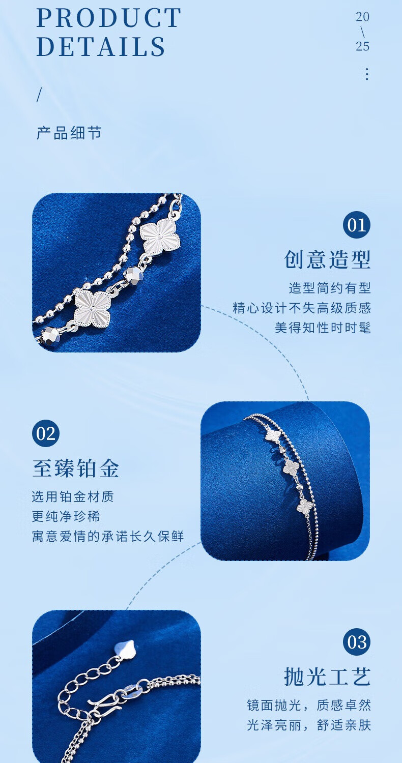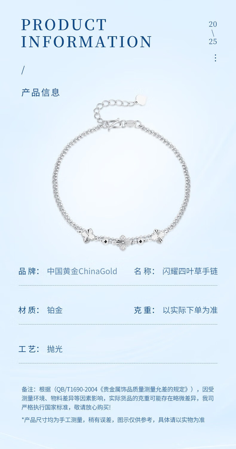 China Gold (CHINA GOLD) PT950 Platinum Four-leaf Clover Bracelet Women's Platinum Sparkling Hand Valentine's Day Birthday Gift for Girlfriend and Wife Platinum Four-leaf Clover Bracelet About 3.8g Selection Gift Box