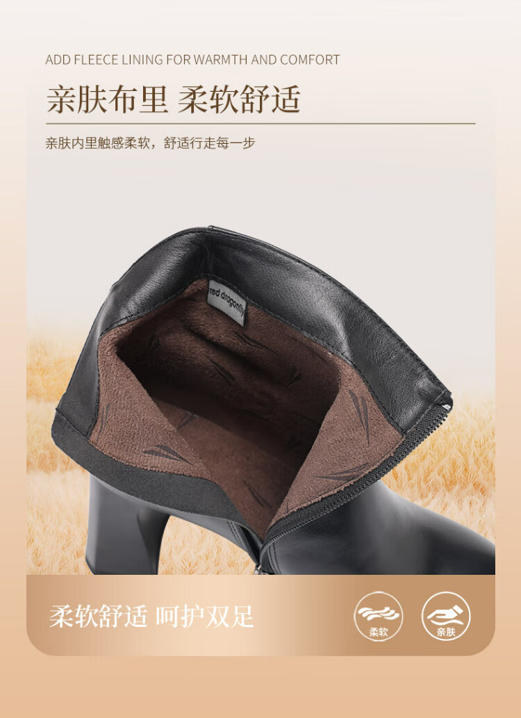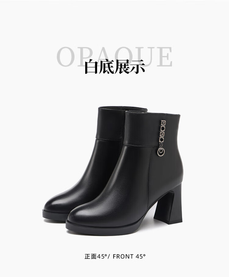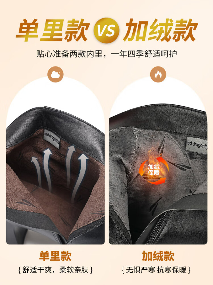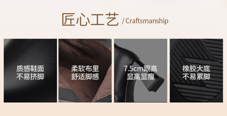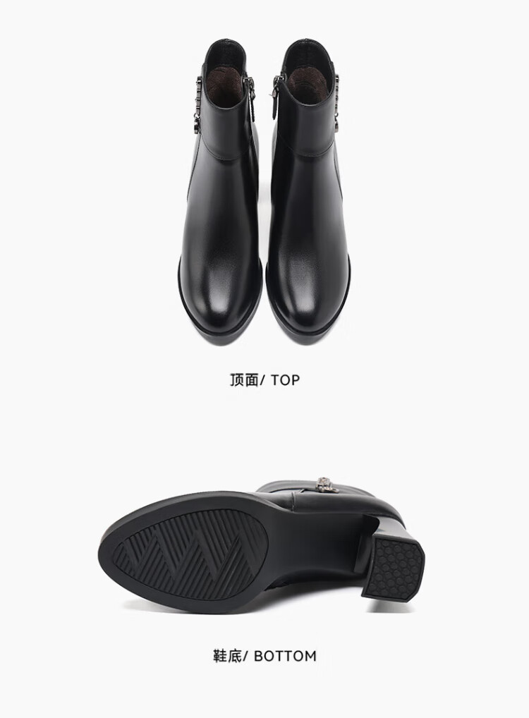 Red Dragonfly Genuine Leather Women's Boots Ankle Boots Short Boots Winter Velvet Warm French High Heel Boots Mother's Boots Slim Boots Short Boots Black Single Liner (Heel Height 7.5cm) 37