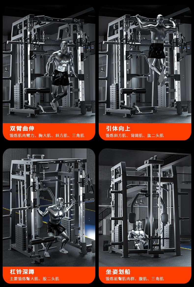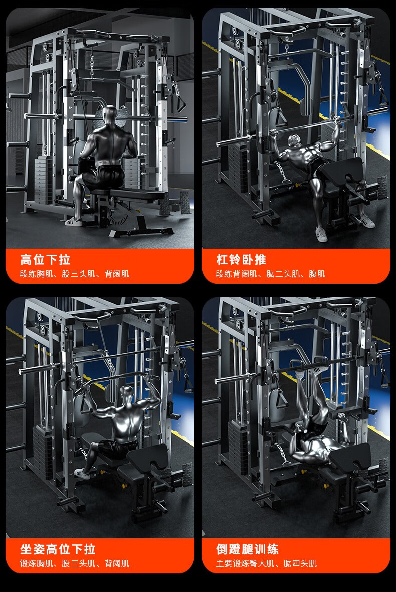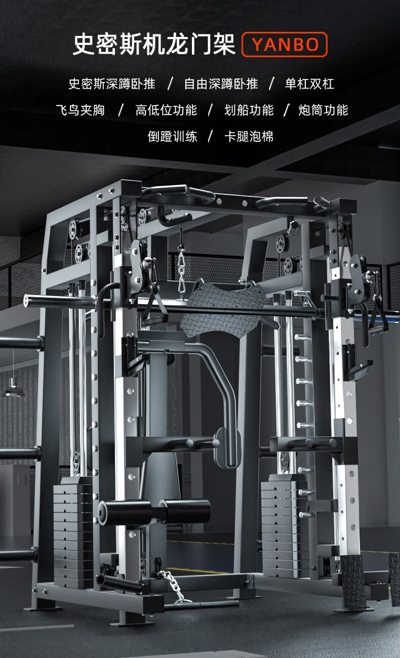 YANBO Smith Machine Commercial Comprehensive Trainer Bench Press Squat Rack Home Gantry Rack Multifunctional Fitness Equipment Bare Metal + 150KG Table + Stool Delivery Package Installation