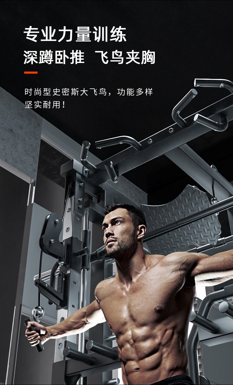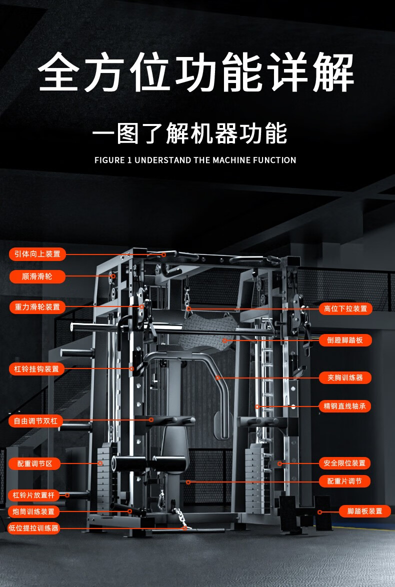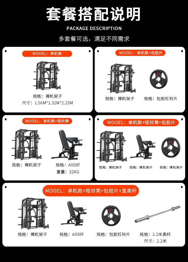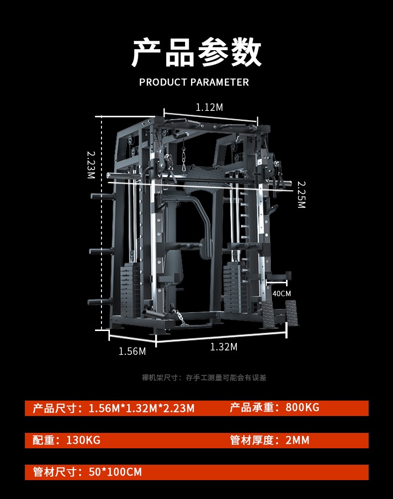 YANBO Smith Machine Commercial Comprehensive Trainer Bench Press Squat Rack Home Gantry Rack Multifunctional Fitness Equipment Bare Metal + 150KG Table + Stool Delivery Package Installation