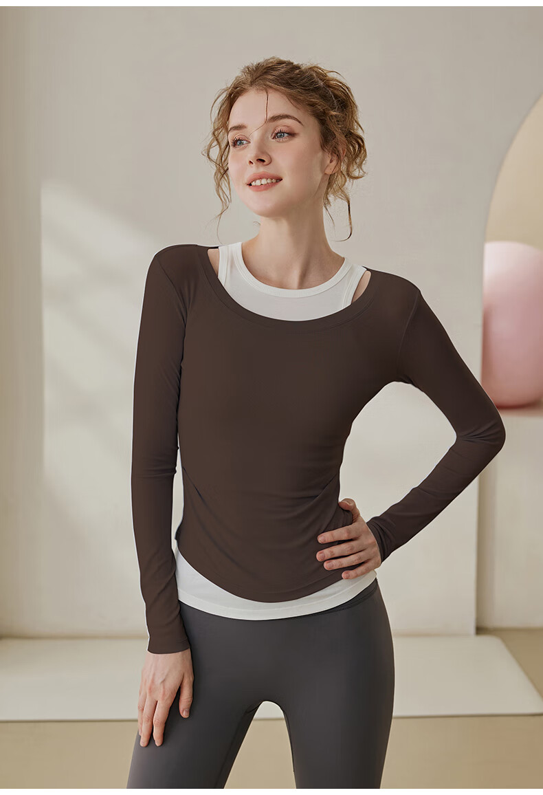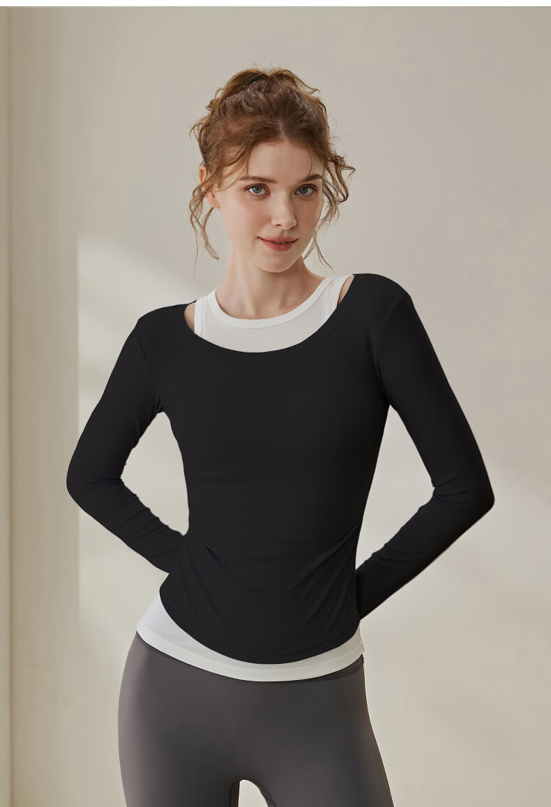 2025 Autumn New Breathable Wool Long Sleeve Yoga Wear Women's T-Shirt Pilates Training Sports Fitness Wear Top Black and White XL