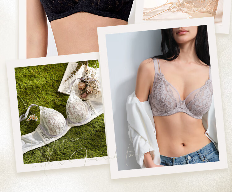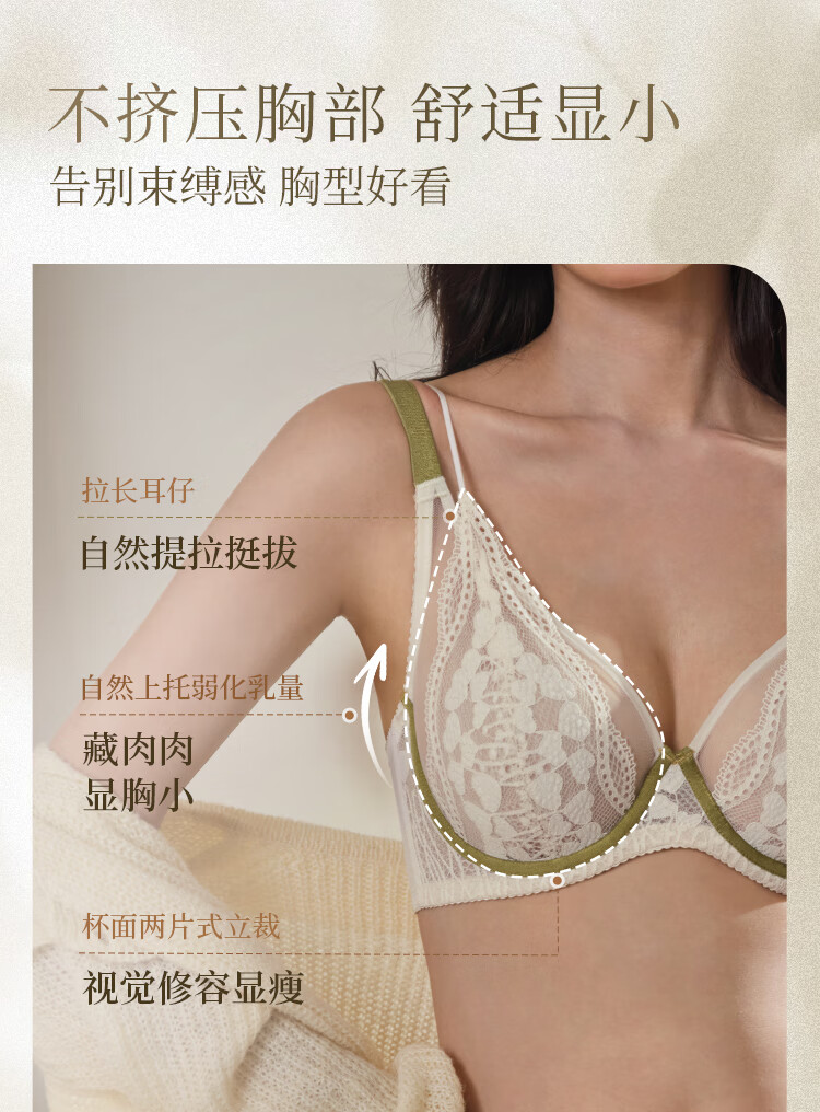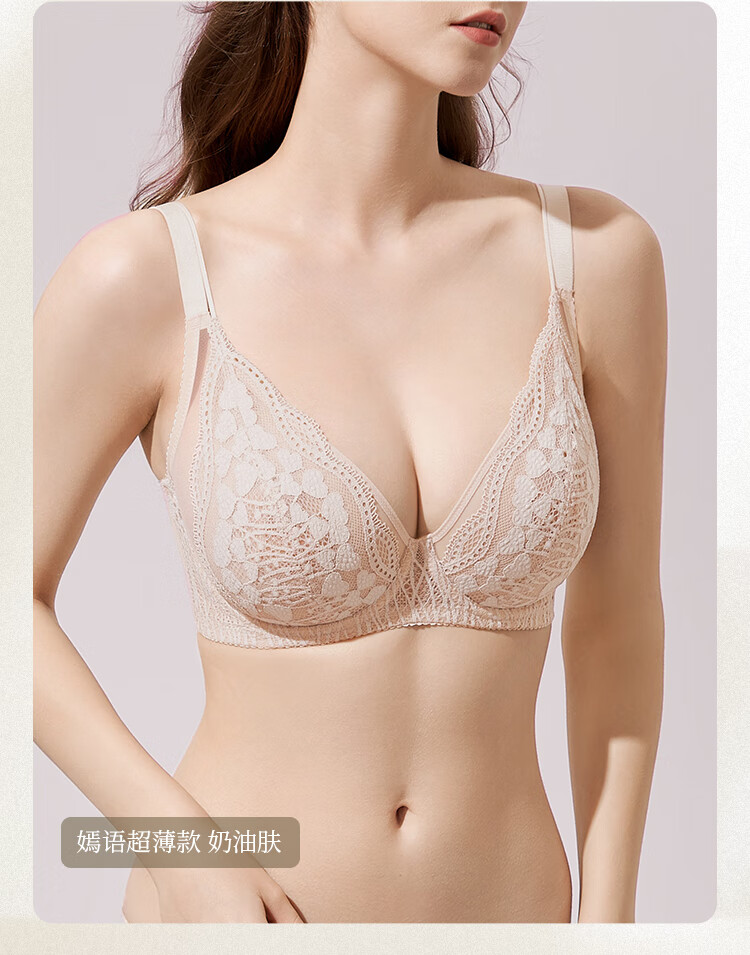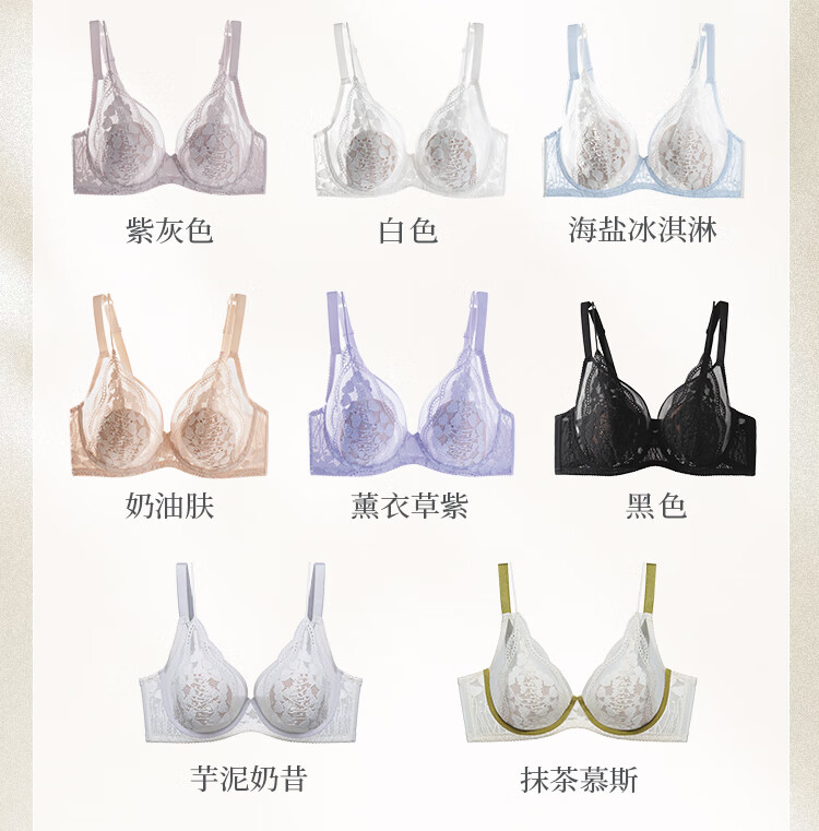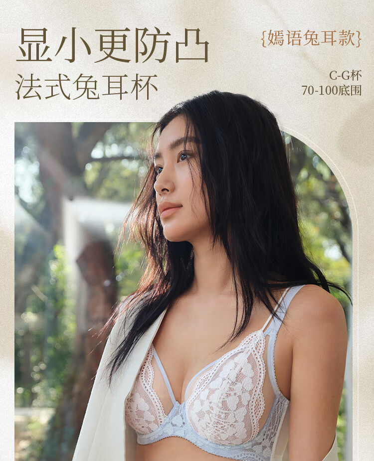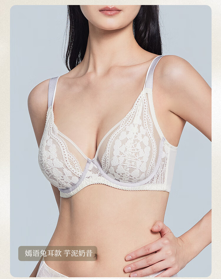 Toffee Pai Yanyu 2.0 French Lace Rabbit Ear Full Cup Big Breast Showing Small Underwear Anti-sagging and Anti-Bump Bra for Girlfriend Rabbit Ear Style - Taro Milkshake New Color for Autumn and Winter 90C