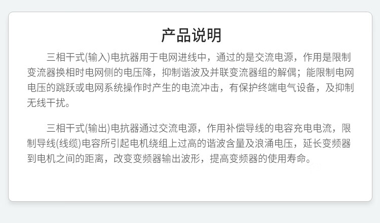 Frequency converter dedicated three-phase reactor ACL input OCL output filter AC DC 11KW~630KW customized 11Kw-30A copper output reactor