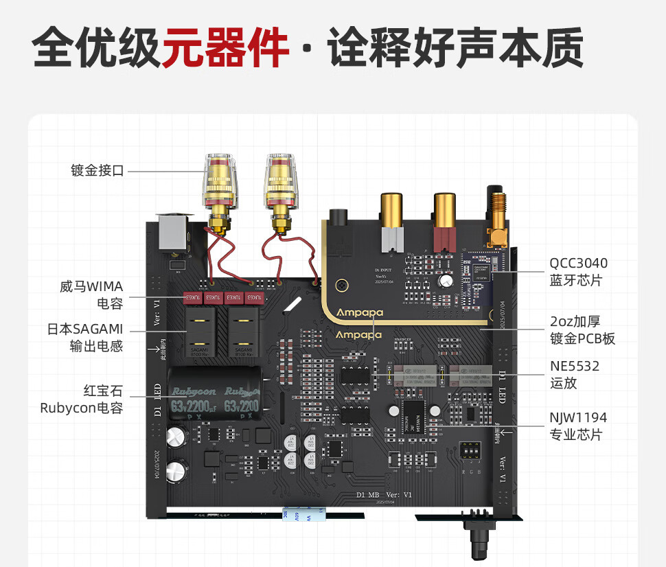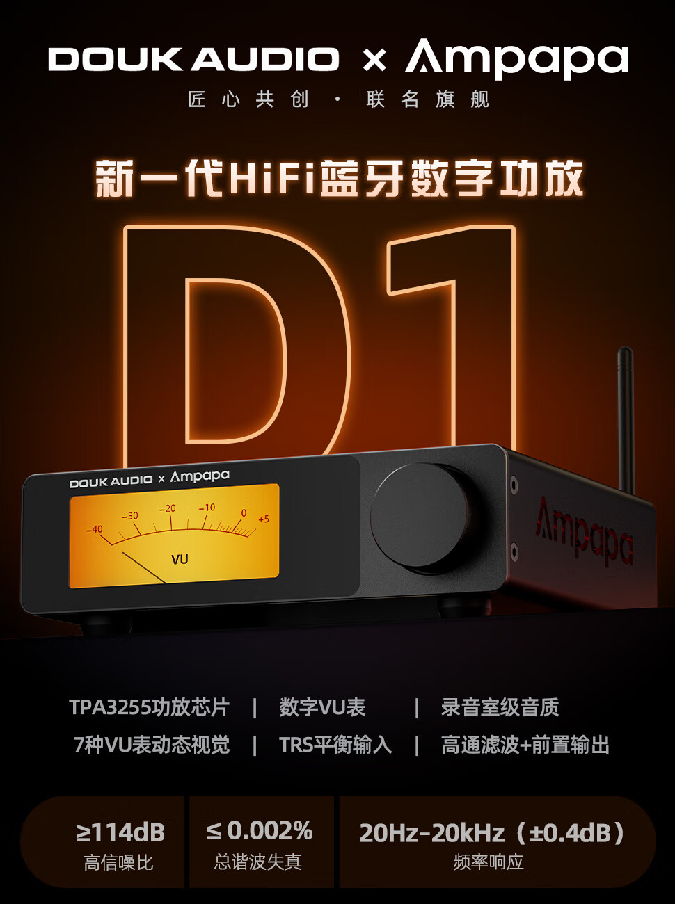 DOUK AUDIO D1 Bluetooth power amplifier digital screen VU meter with PFFB high-pass filter 300W power amplifier D1 power amplifier