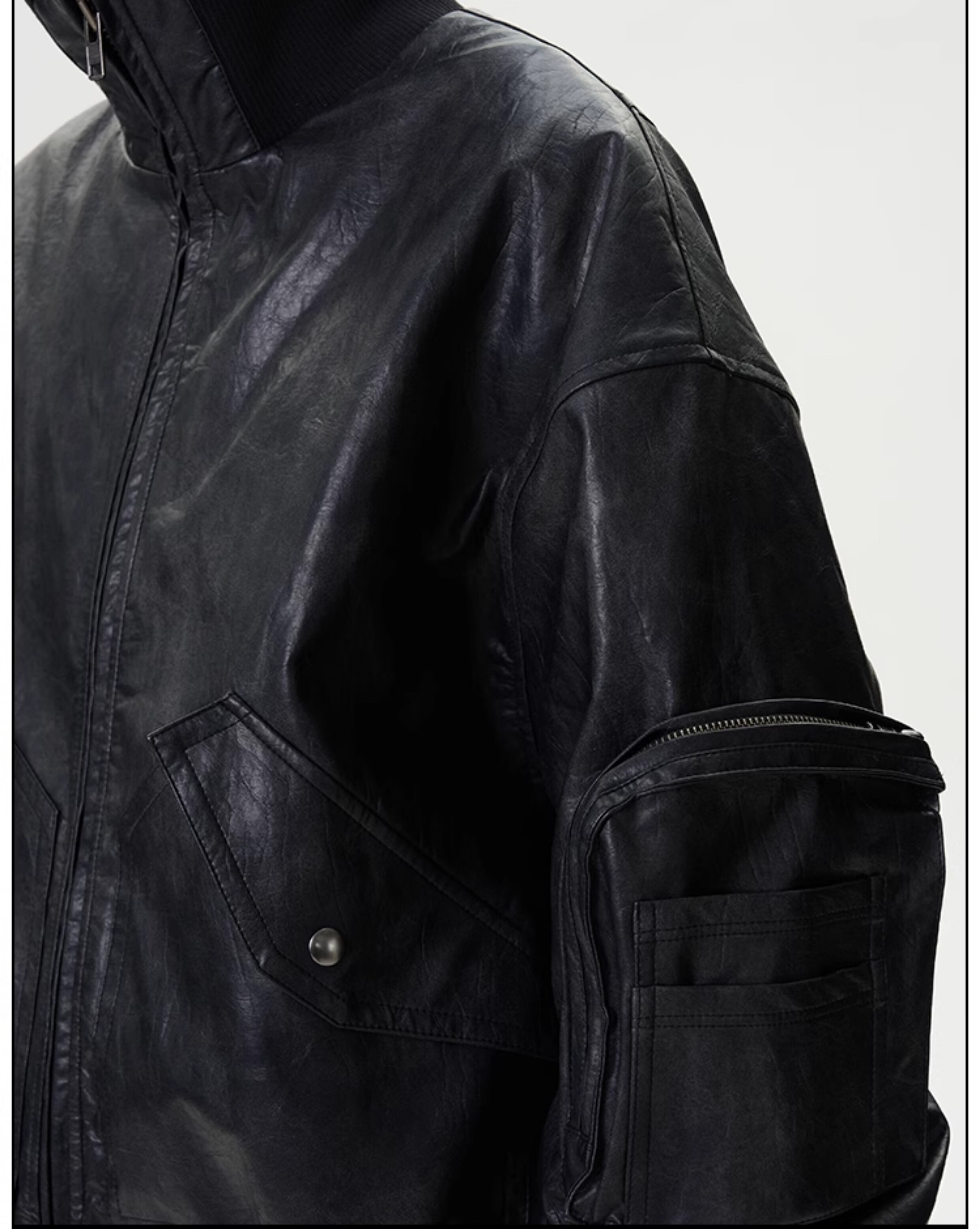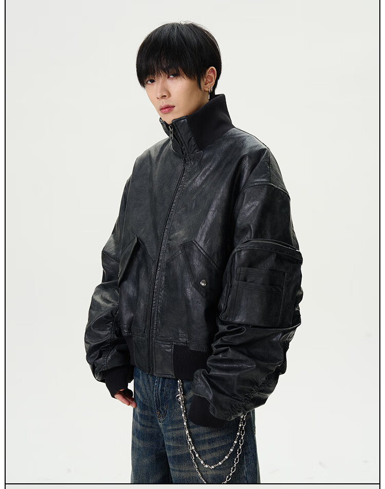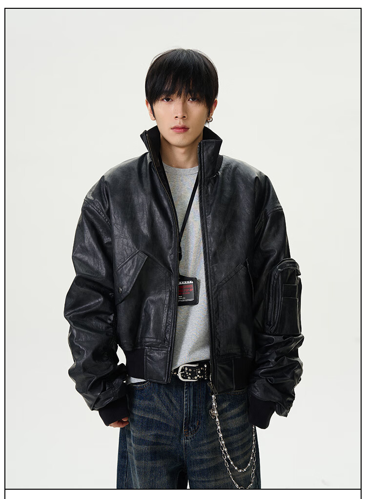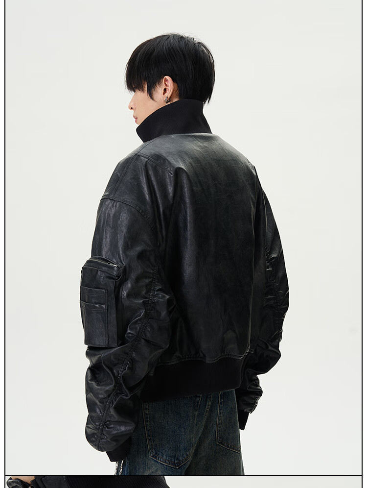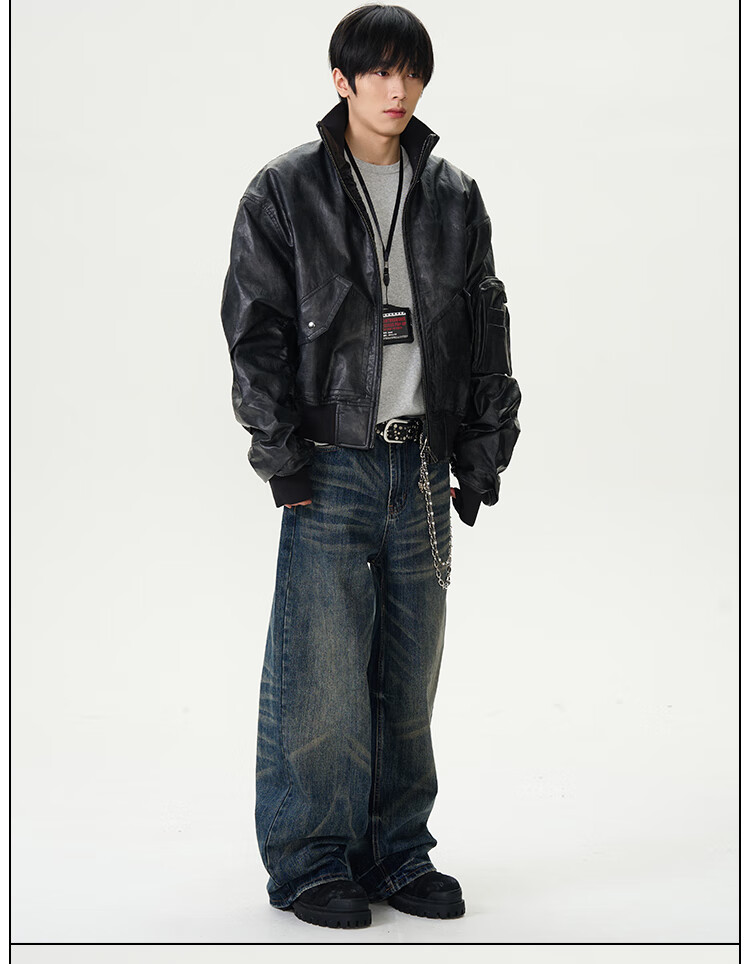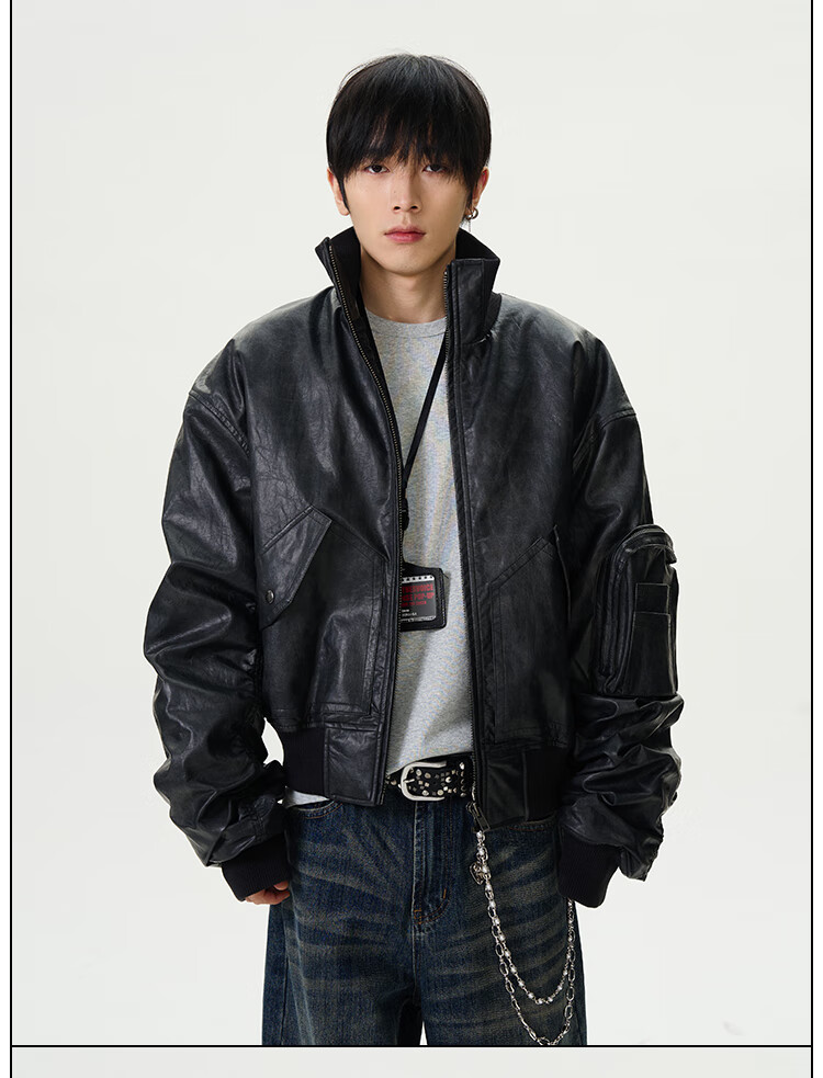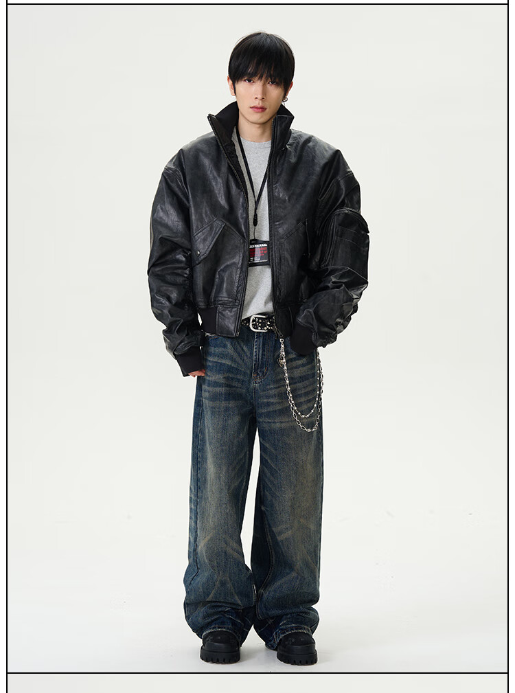 Weilang's shop winter American retro distressed aviator leather jacket cotton jacket men's handsome stand-up collar jacket coat couple New Year black L