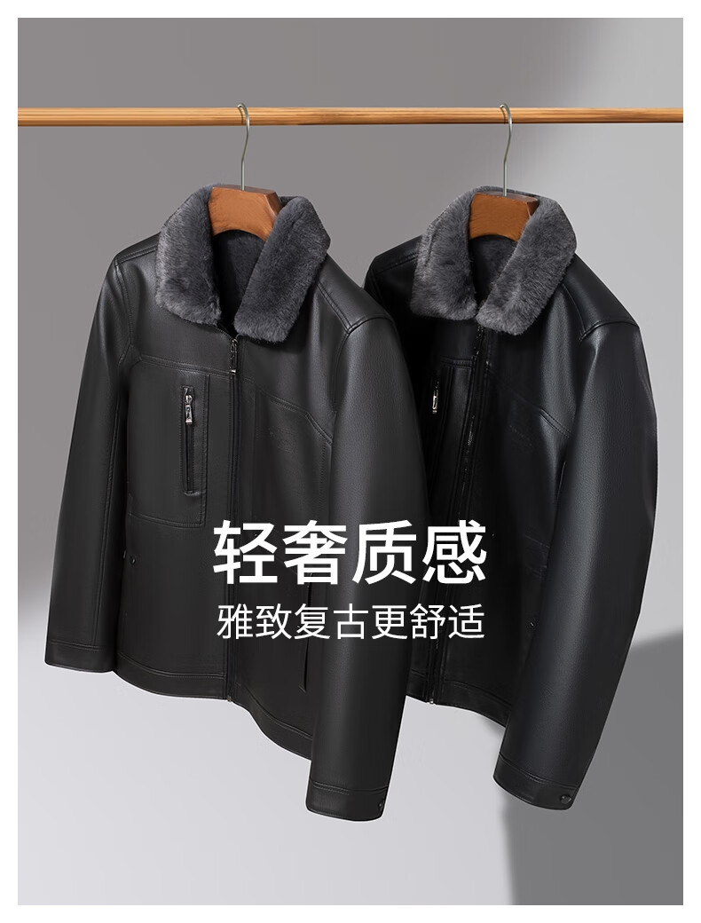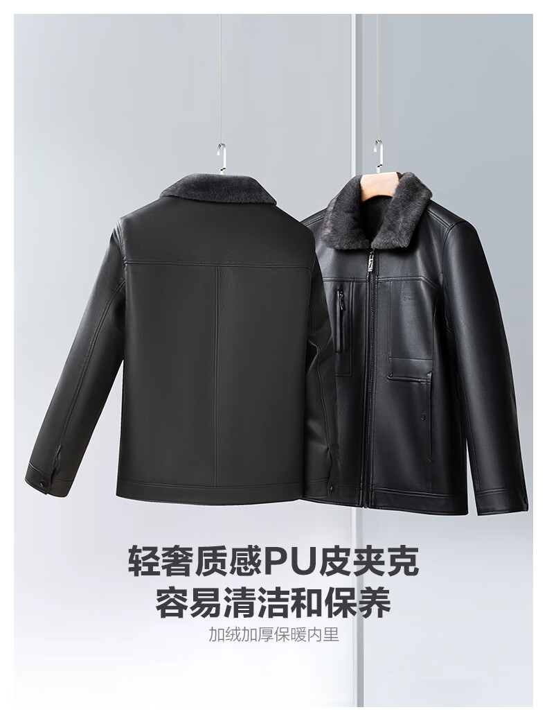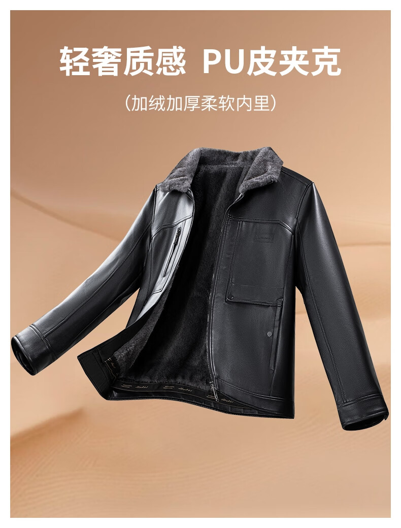 SHANSHAN杉杉皮衣男2025冬季新款加绒加厚保暖休闲百搭男士易打理通勤外套 黑色 XL /180